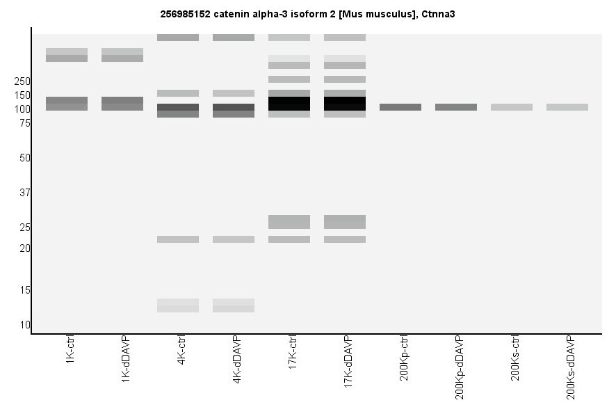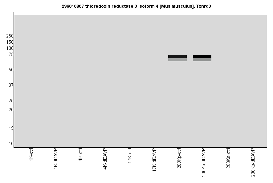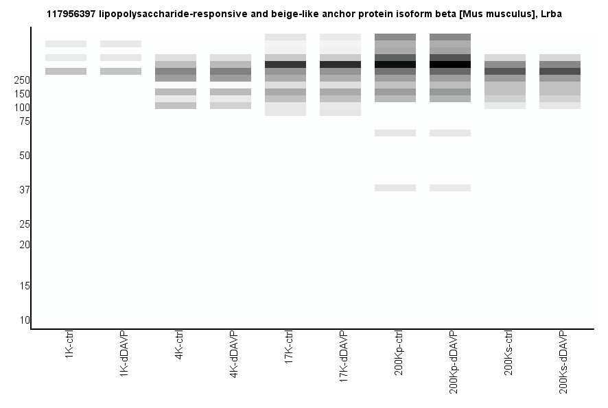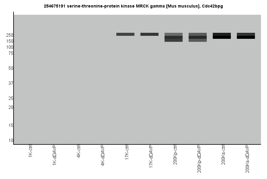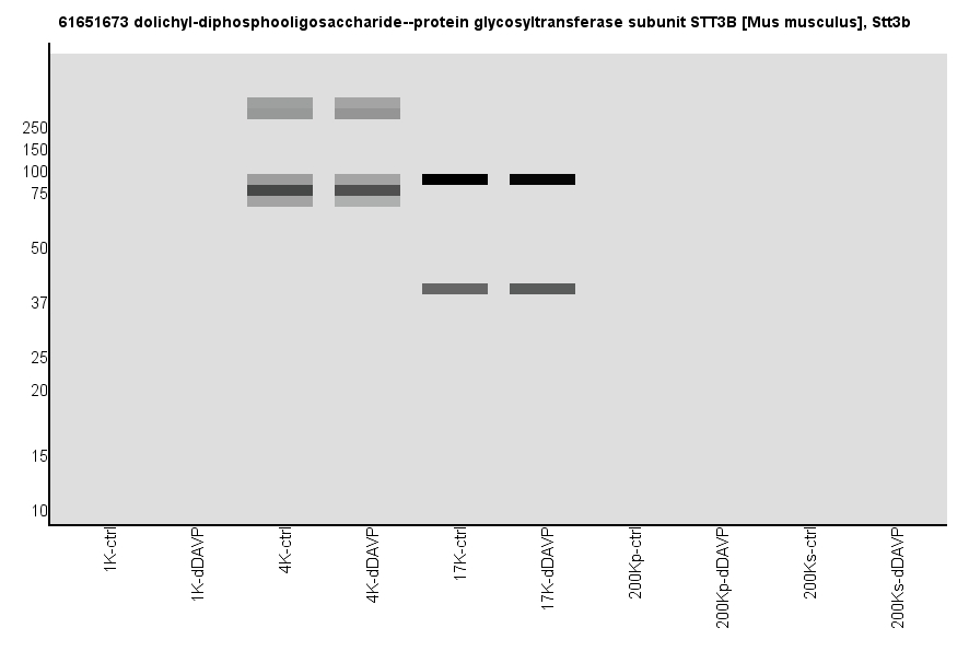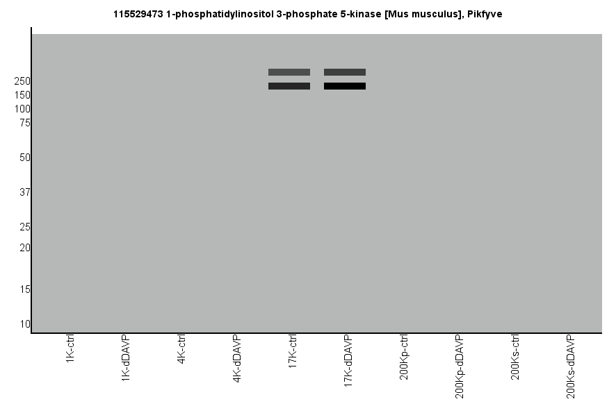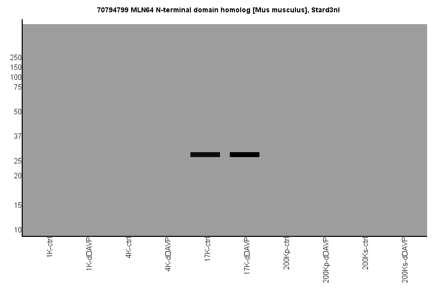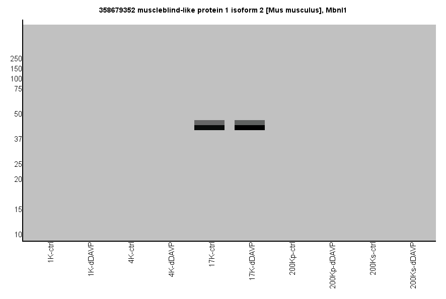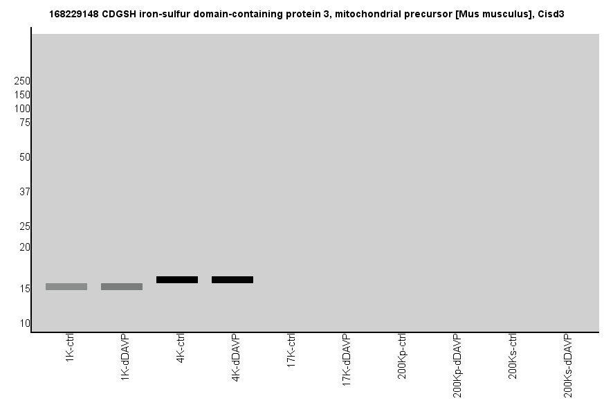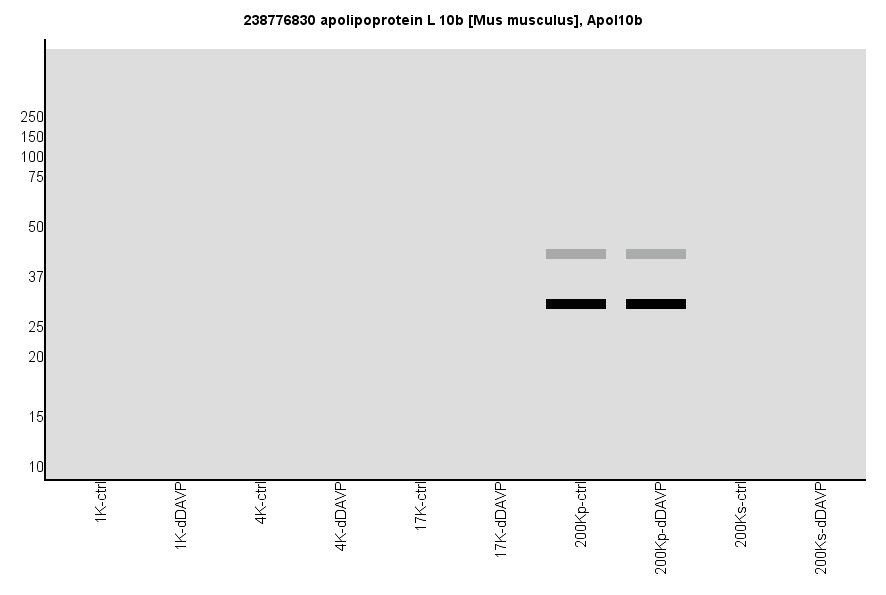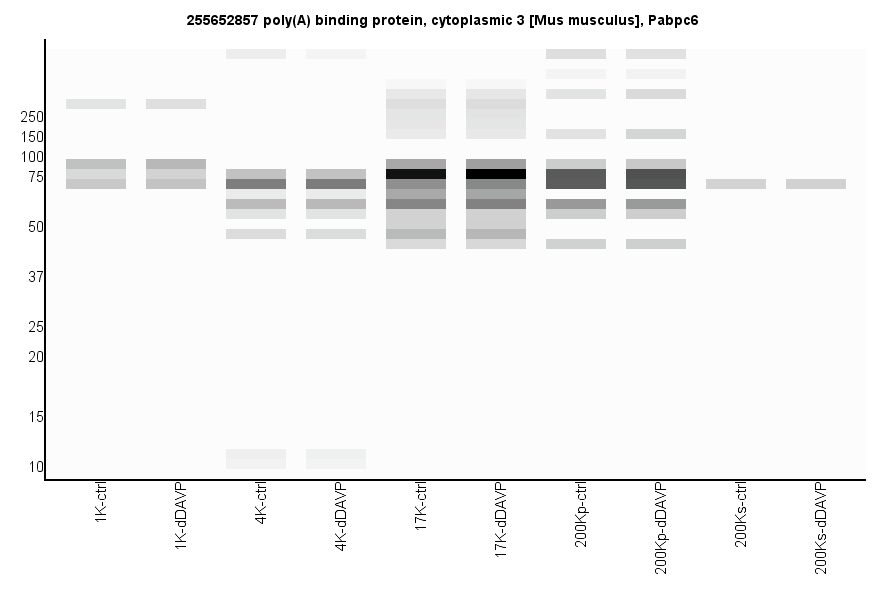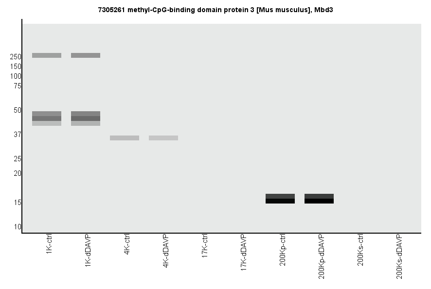The virtual western blot images show data normalized using a logarithmic conversion scale to map peptide intensities to gray-scale levels. Using this conversion method, low-abundance peptides are generally visible in the blot images. Switch back to the default linear conversion scale database page.