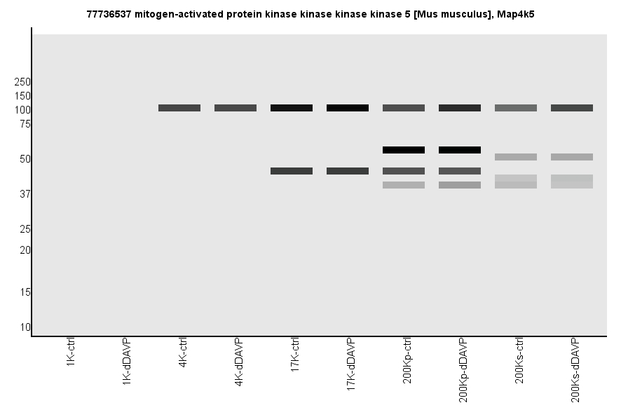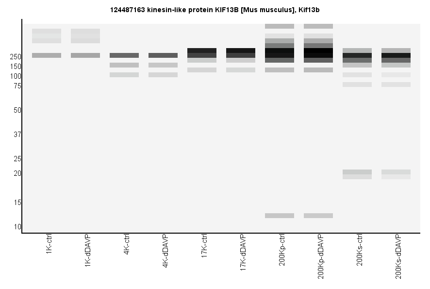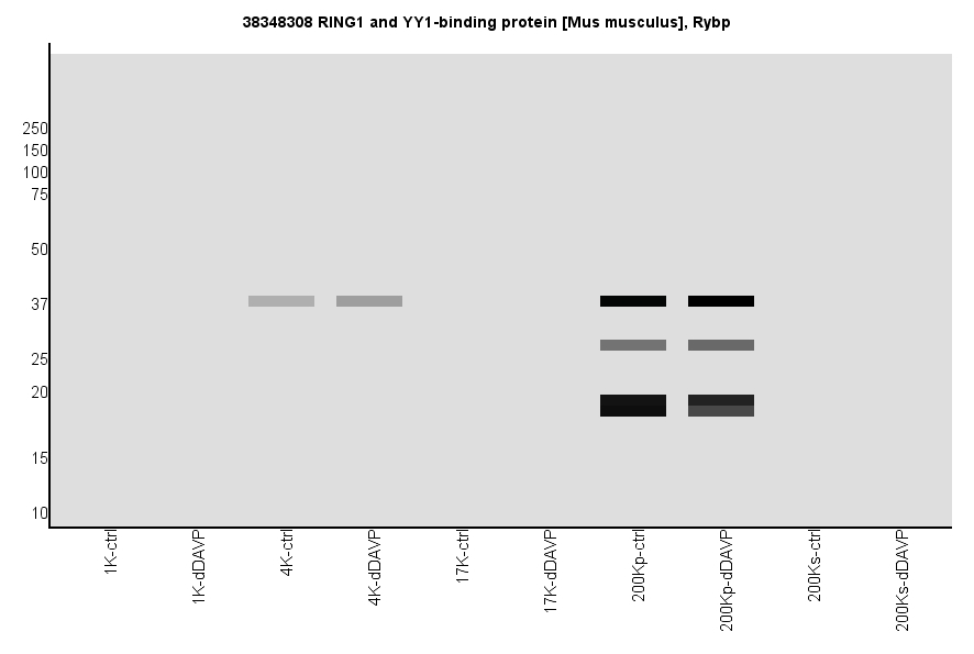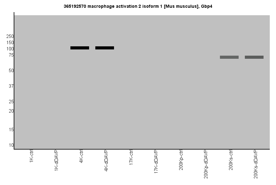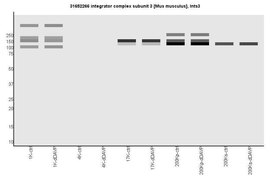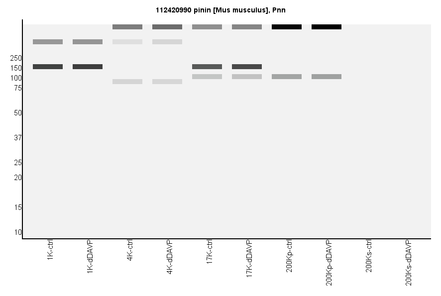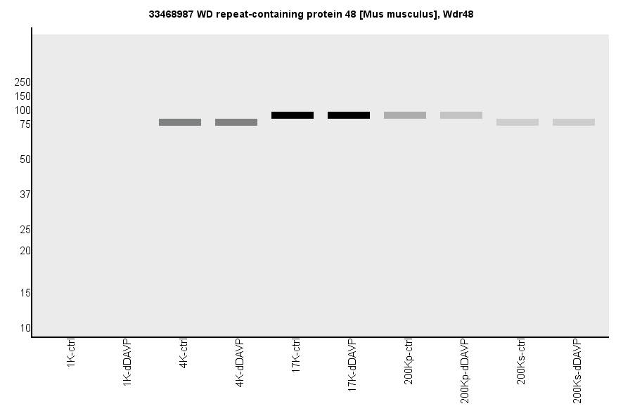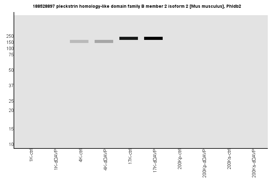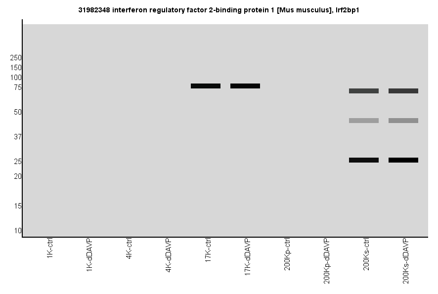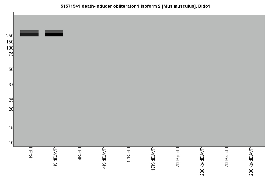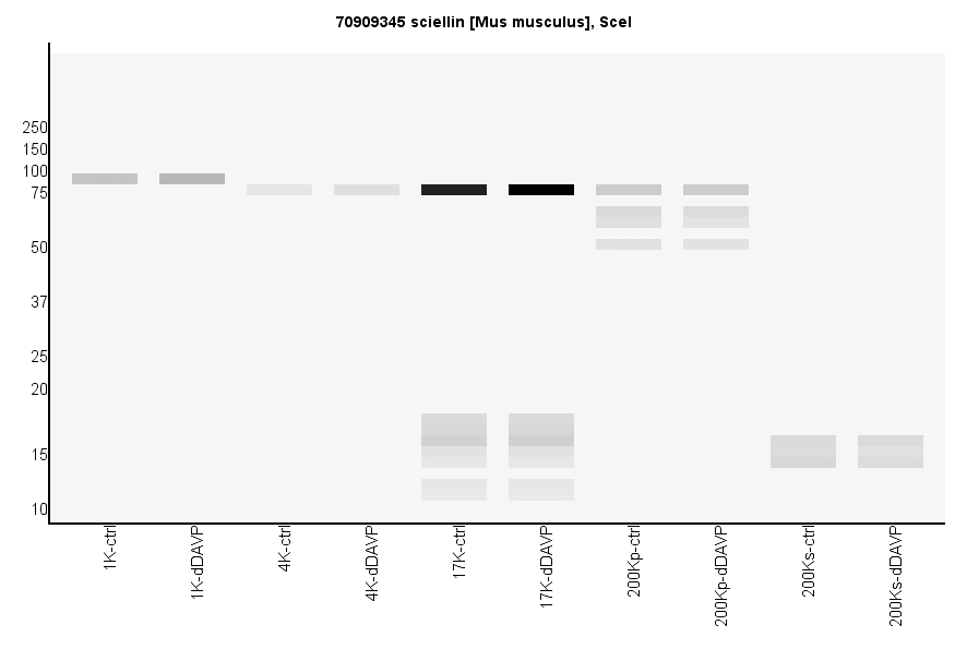 The virtual western blot images show data normalized using a logarithmic conversion scale to map peptide intensities to gray-scale levels. Using this conversion method, low-abundance peptides are generally visible in the blot images. Switch back to the default linear conversion scale database page.