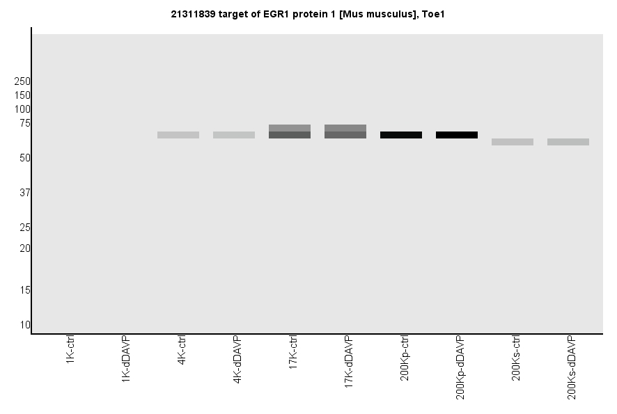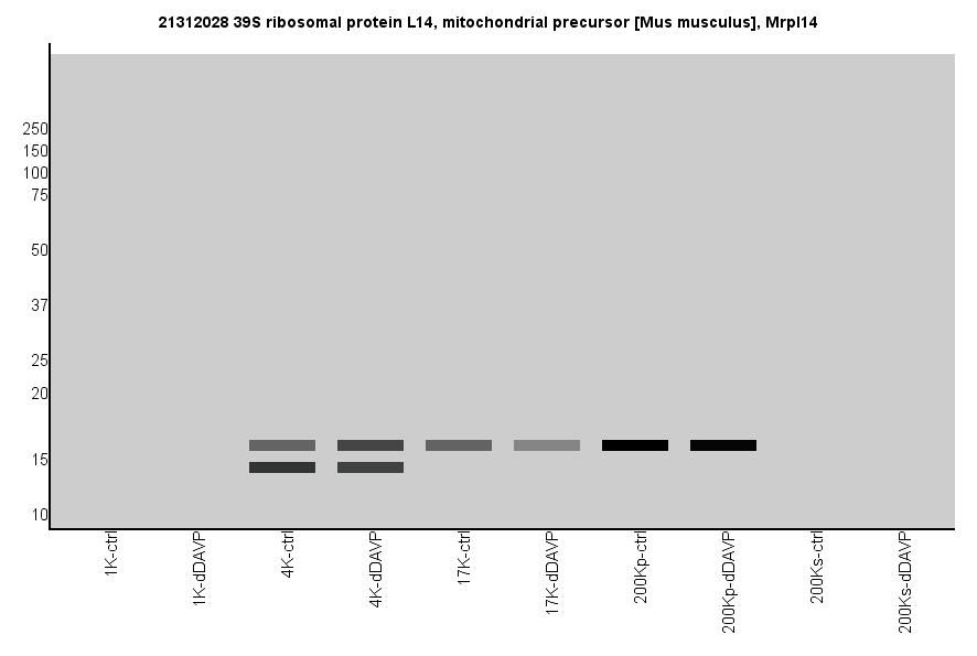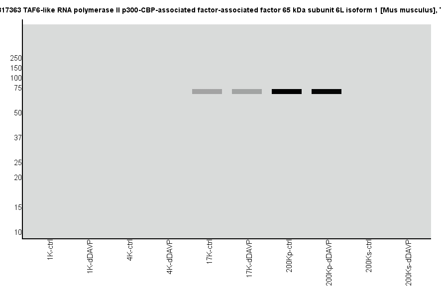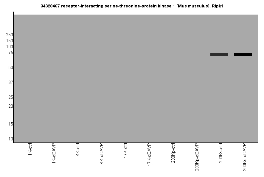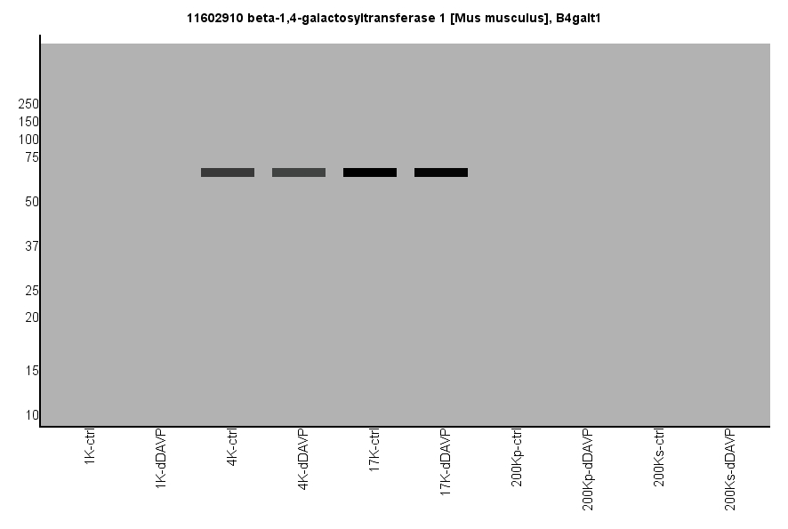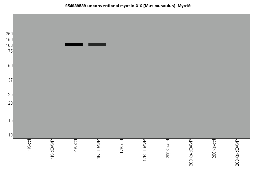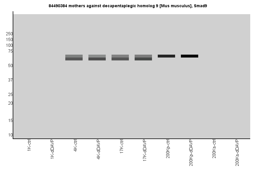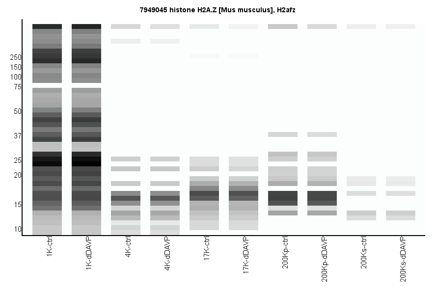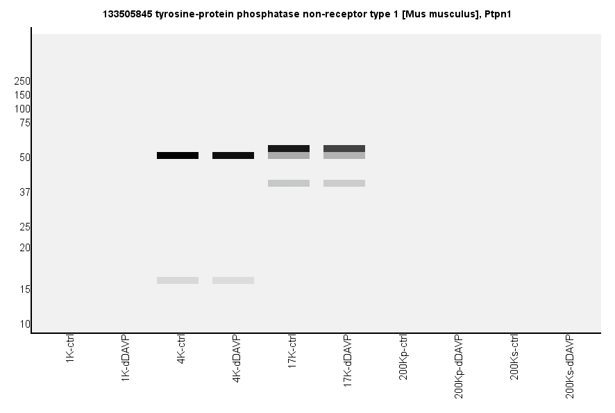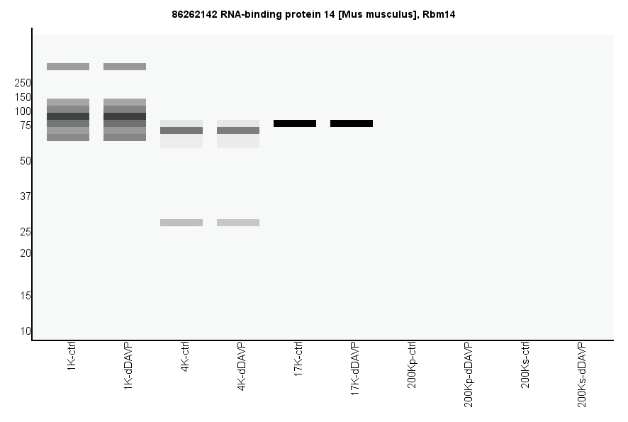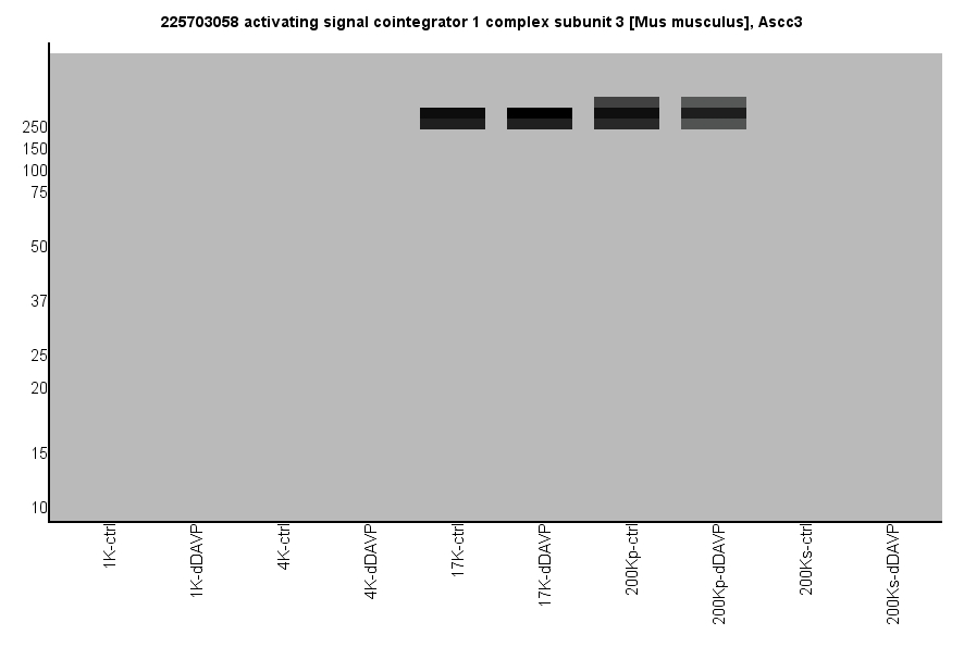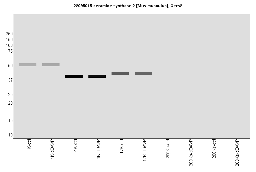 The virtual western blot images show data normalized using a logarithmic conversion scale to map peptide intensities to gray-scale levels. Using this conversion method, low-abundance peptides are generally visible in the blot images. Switch back to the default linear conversion scale database page.