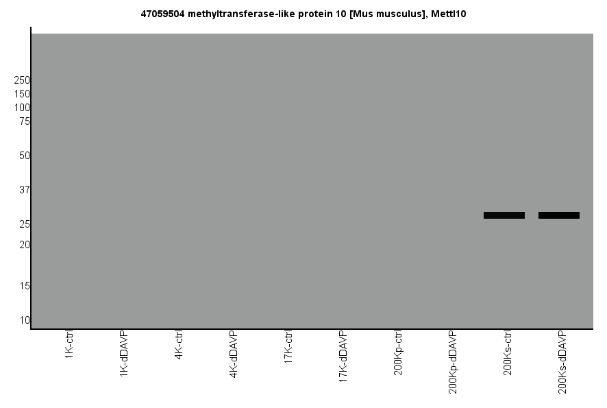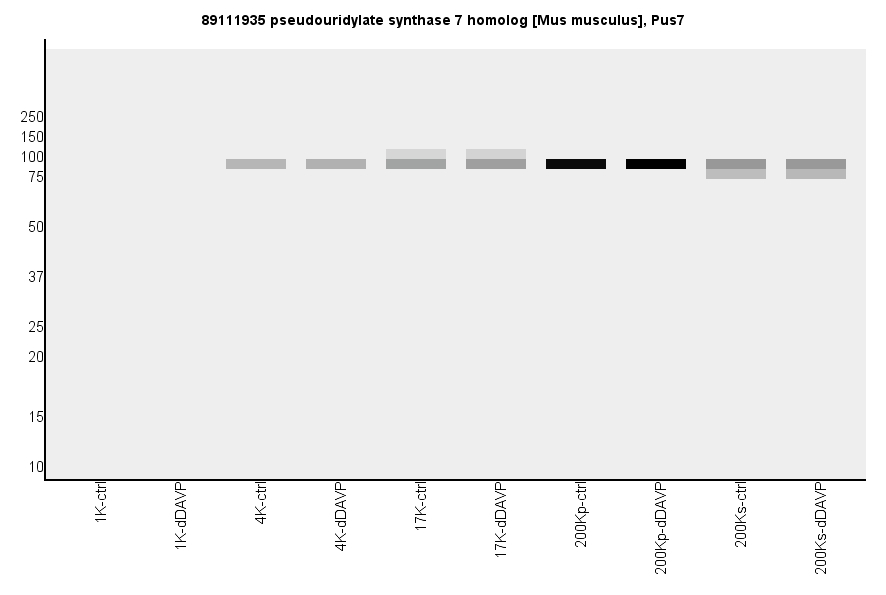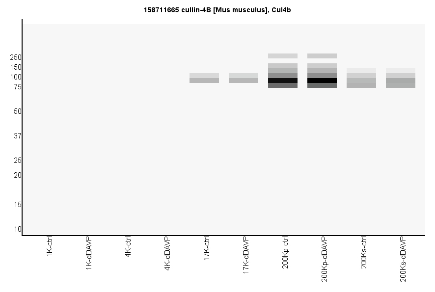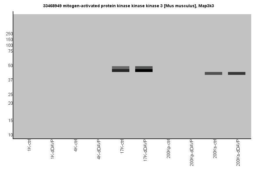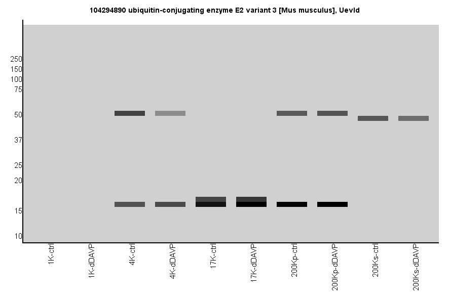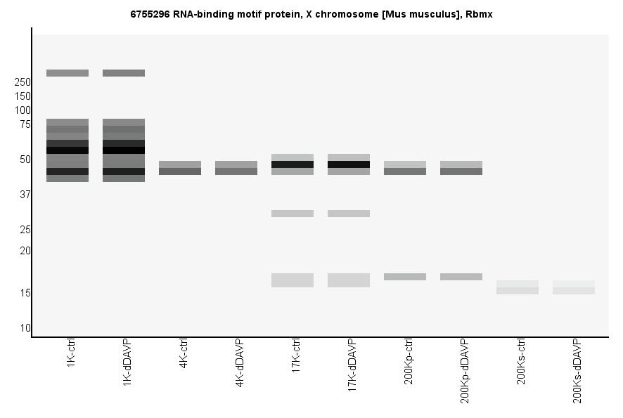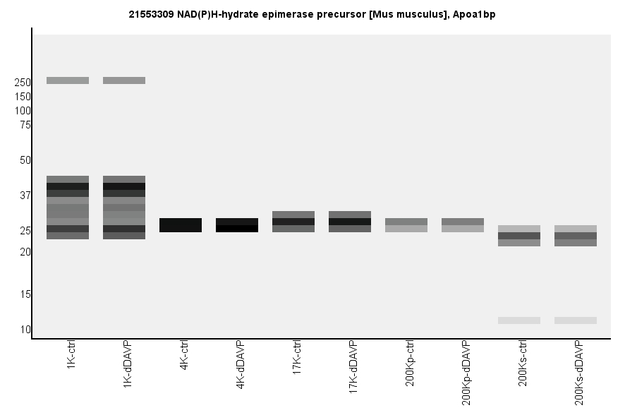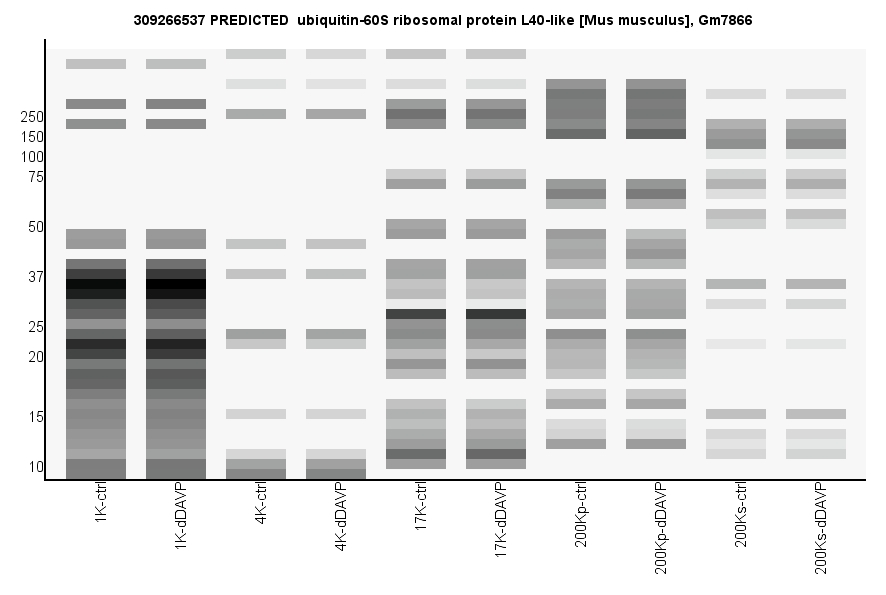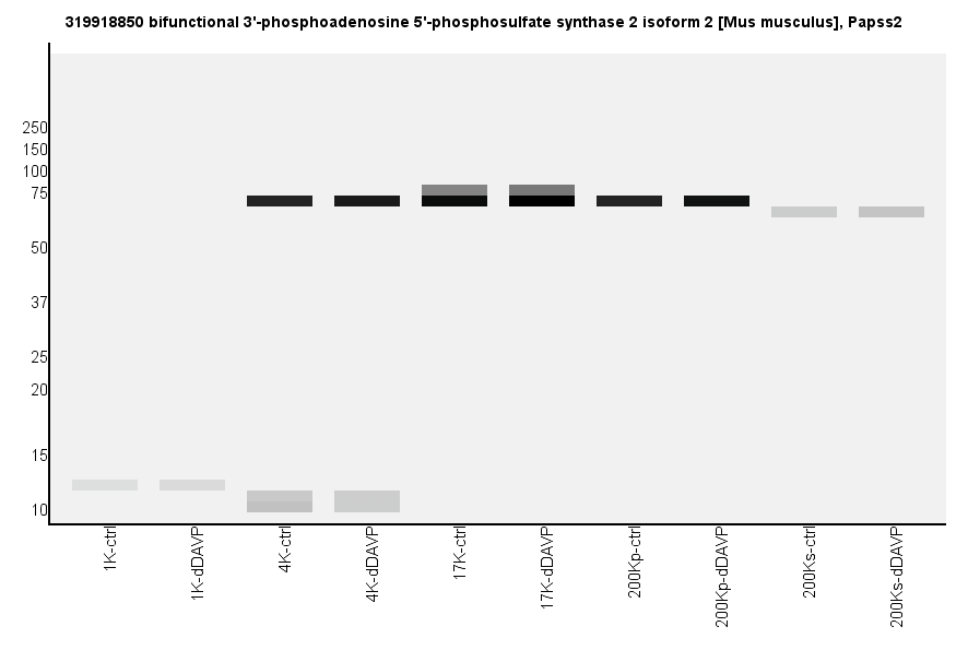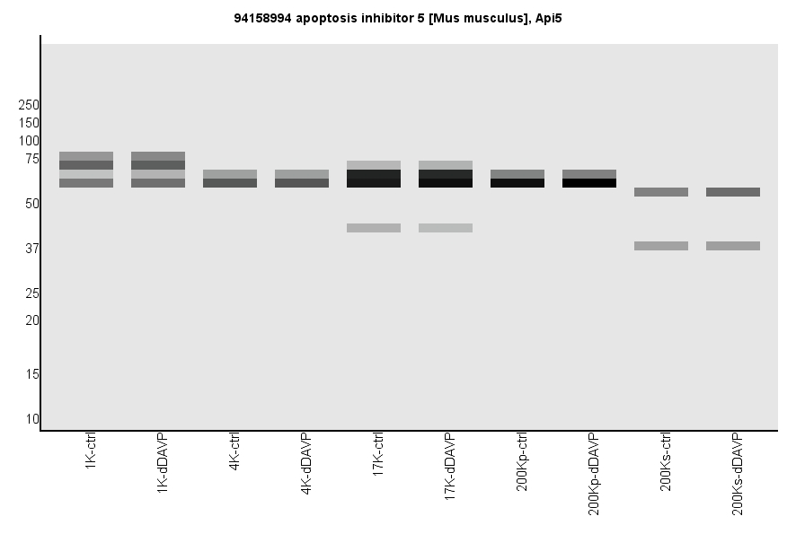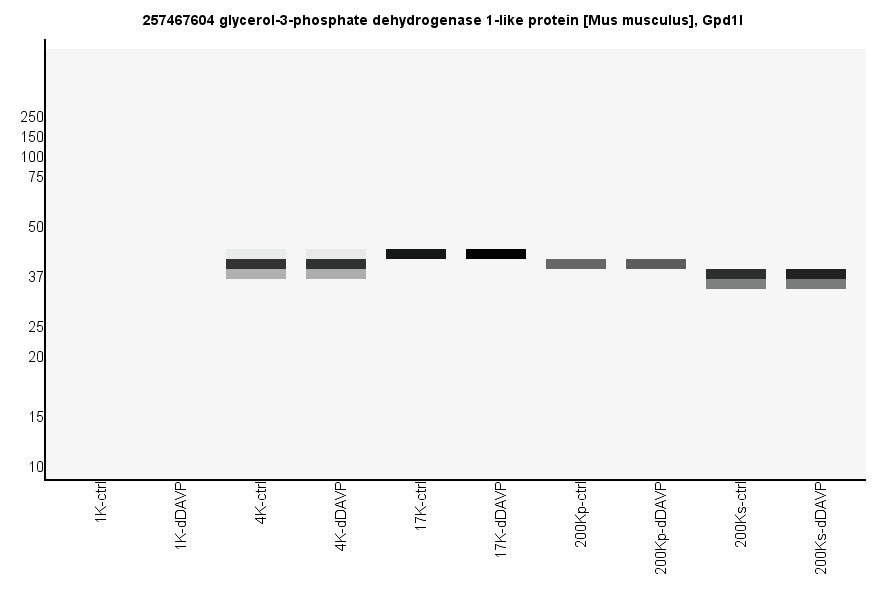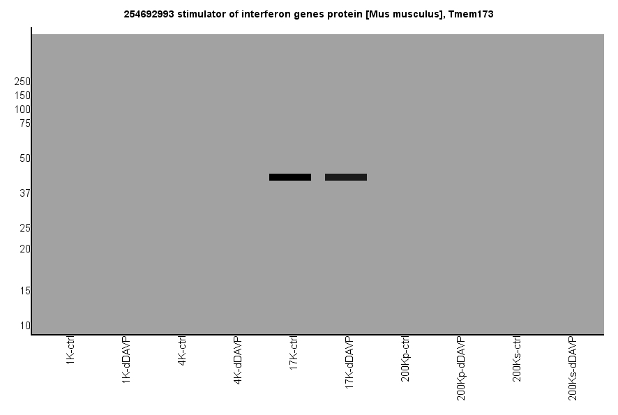 The virtual western blot images show data normalized using a logarithmic conversion scale to map peptide intensities to gray-scale levels. Using this conversion method, low-abundance peptides are generally visible in the blot images. Switch back to the default linear conversion scale database page.