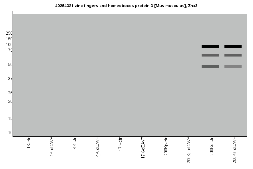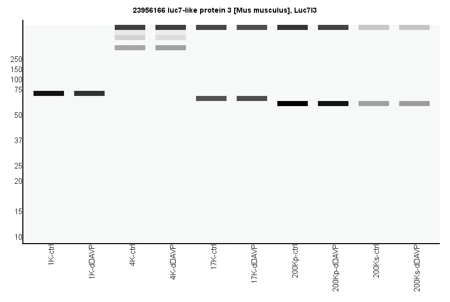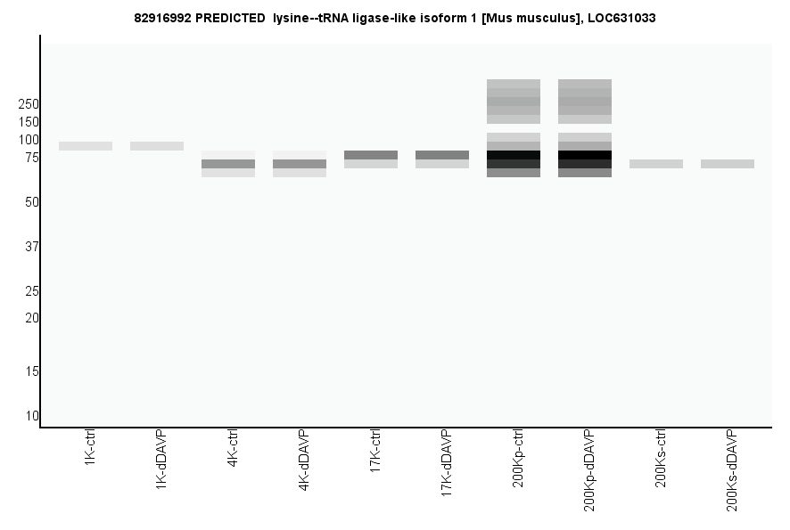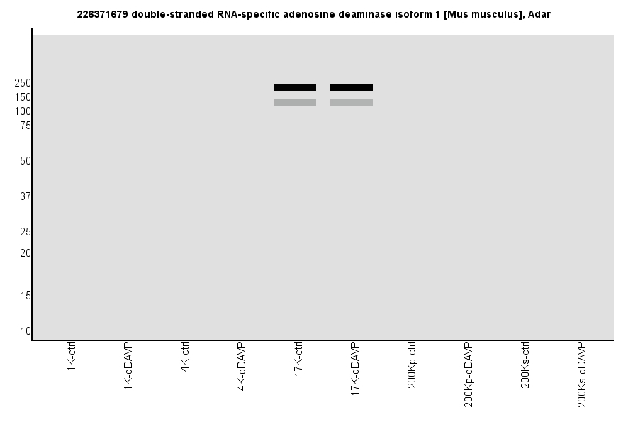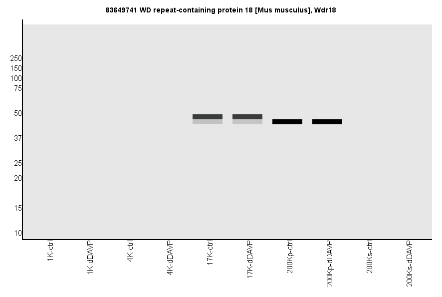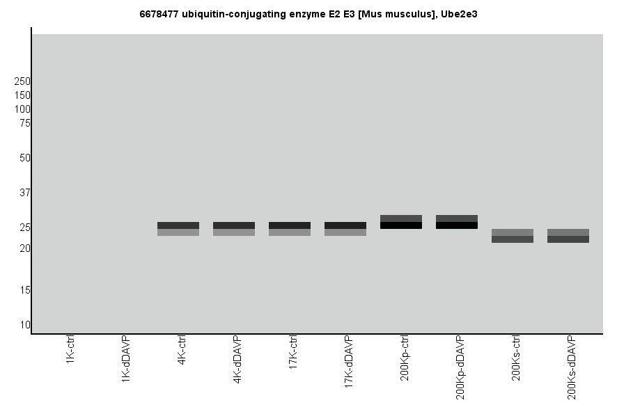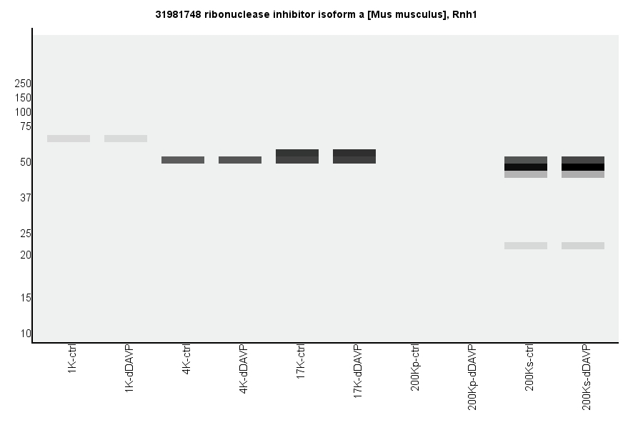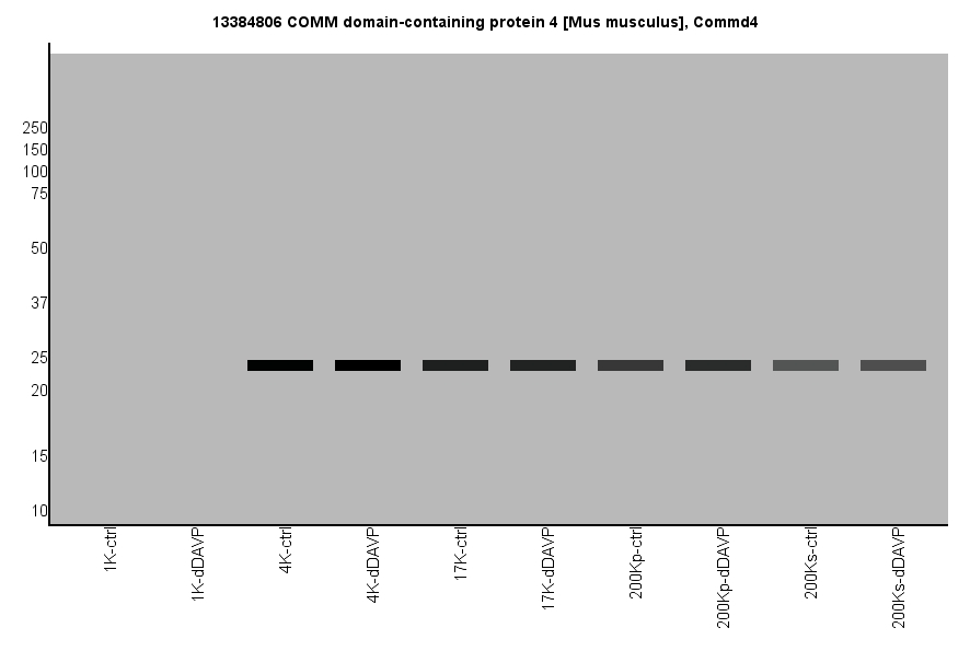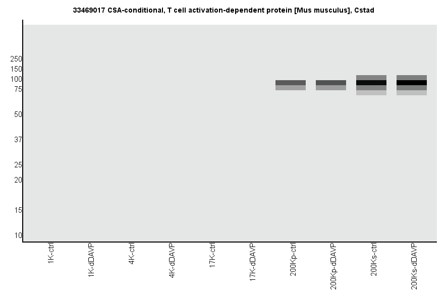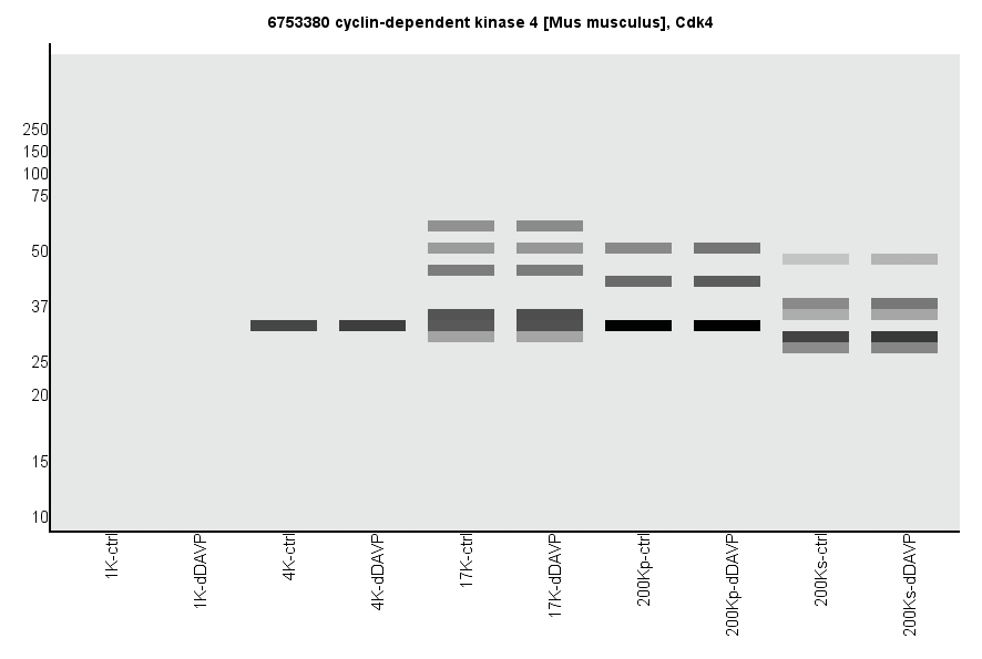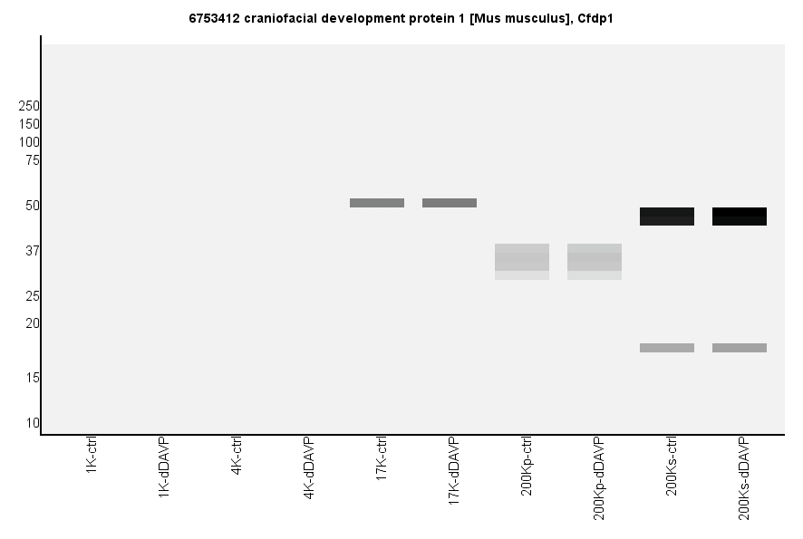 The virtual western blot images show data normalized using a logarithmic conversion scale to map peptide intensities to gray-scale levels. Using this conversion method, low-abundance peptides are generally visible in the blot images. Switch back to the default linear conversion scale database page.