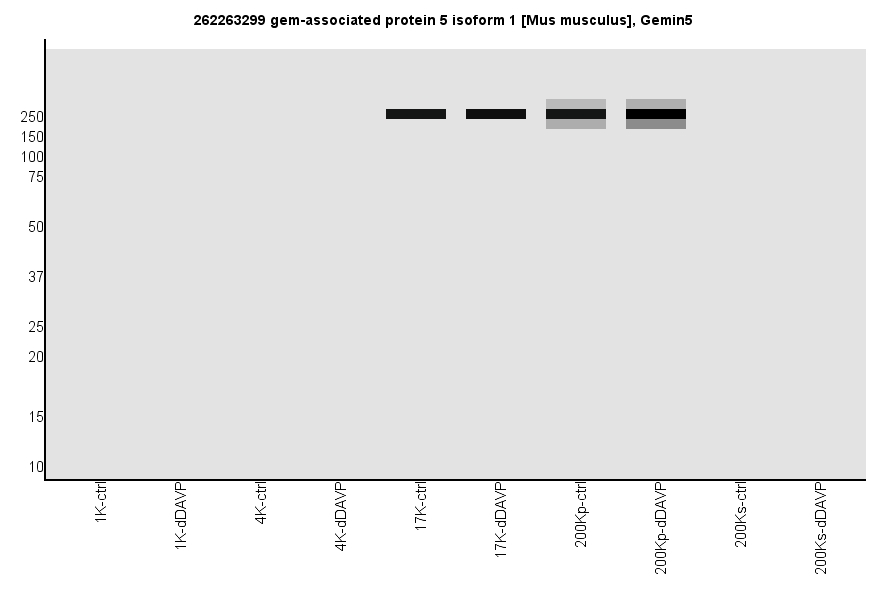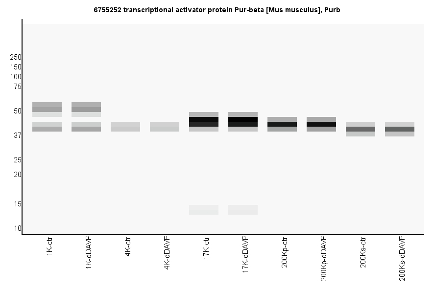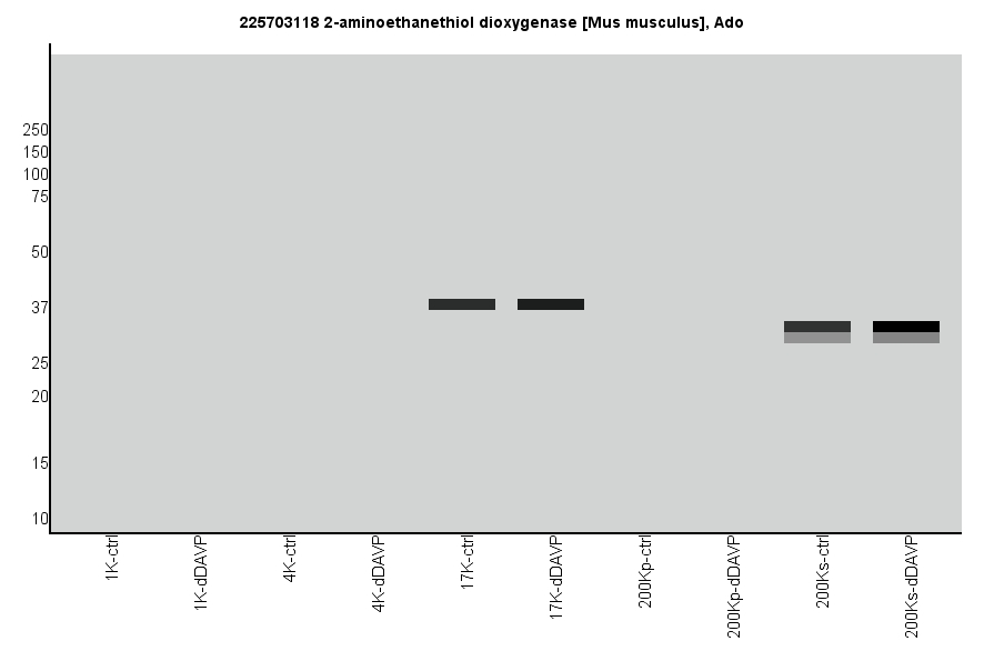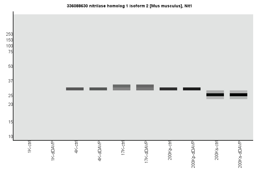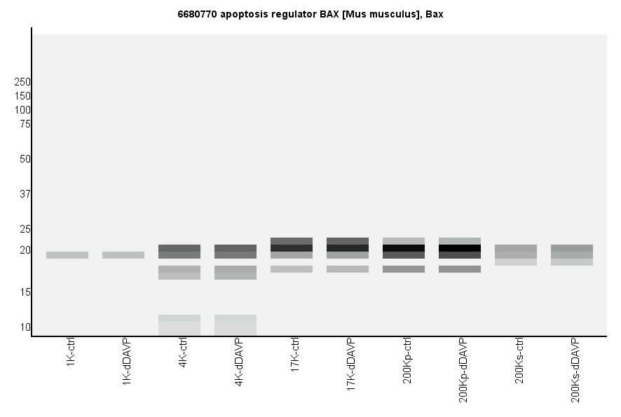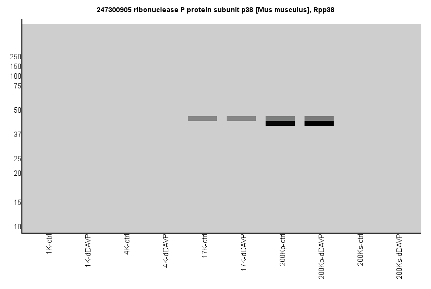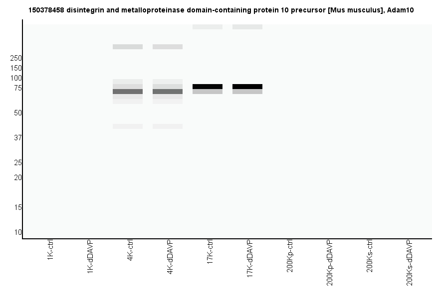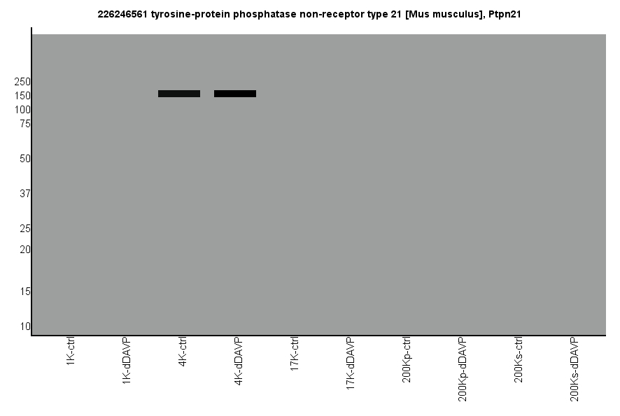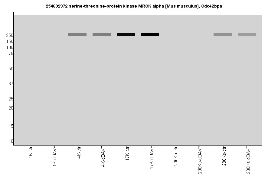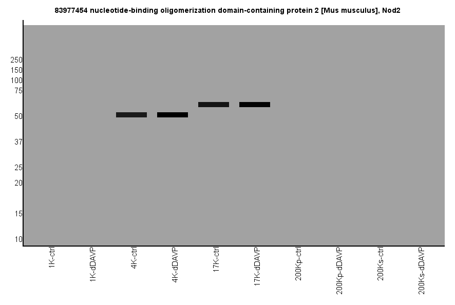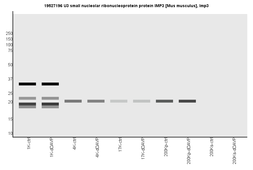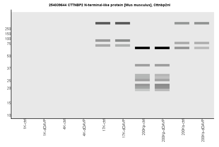 The virtual western blot images show data normalized using a logarithmic conversion scale to map peptide intensities to gray-scale levels. Using this conversion method, low-abundance peptides are generally visible in the blot images. Switch back to the default linear conversion scale database page.