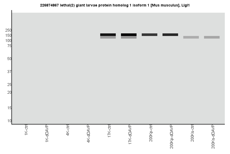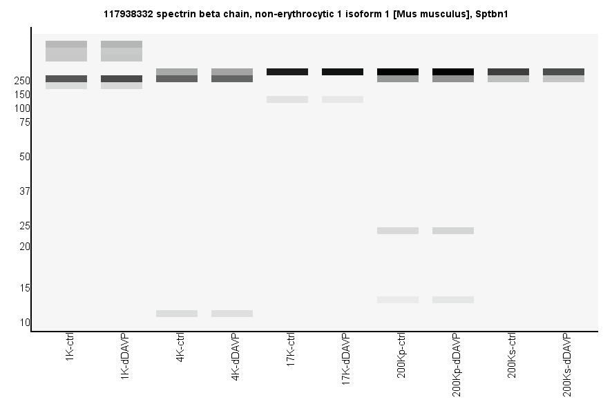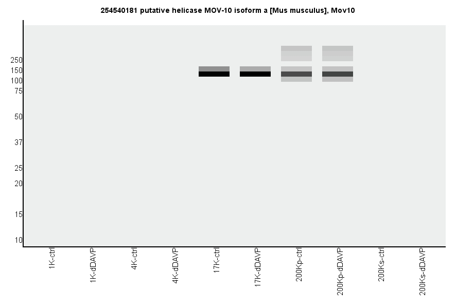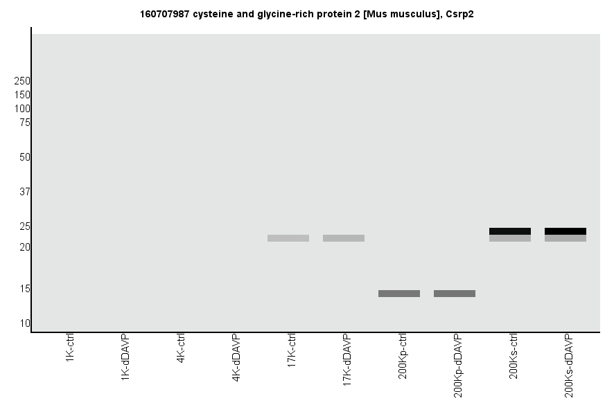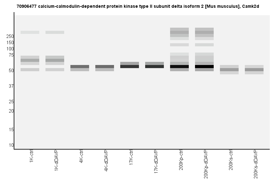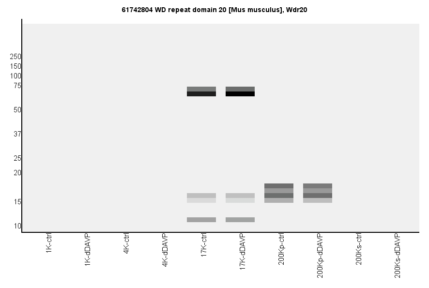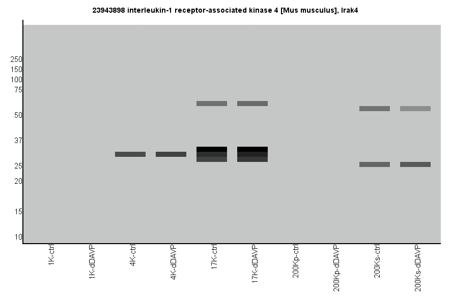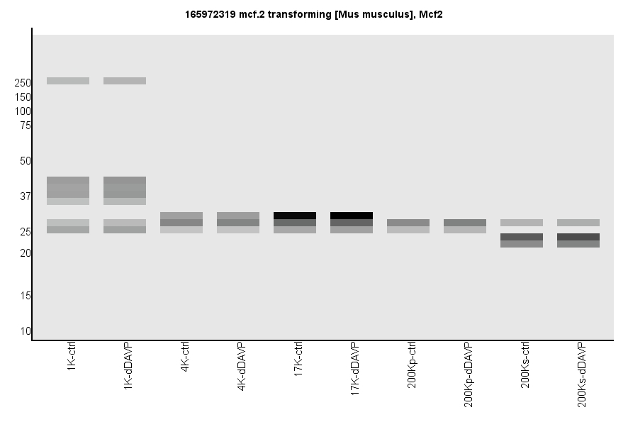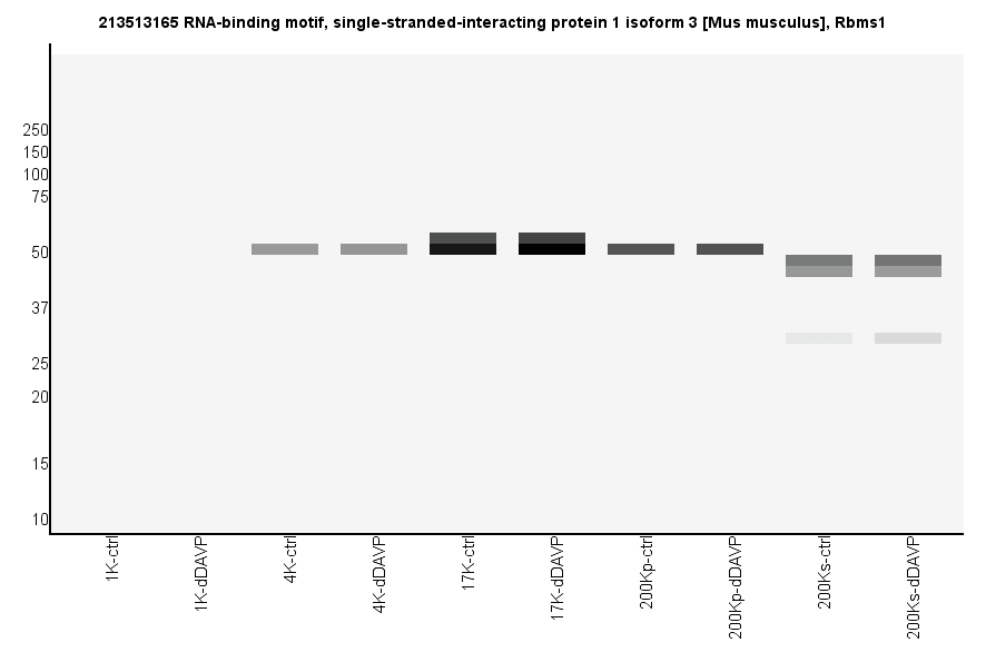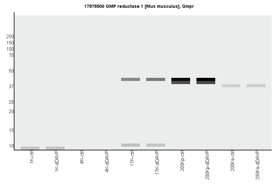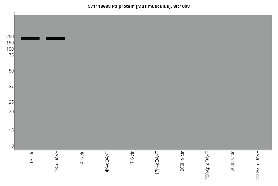 The virtual western blot images show data normalized using a logarithmic conversion scale to map peptide intensities to gray-scale levels. Using this conversion method, low-abundance peptides are generally visible in the blot images. Switch back to the default linear conversion scale database page.