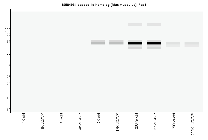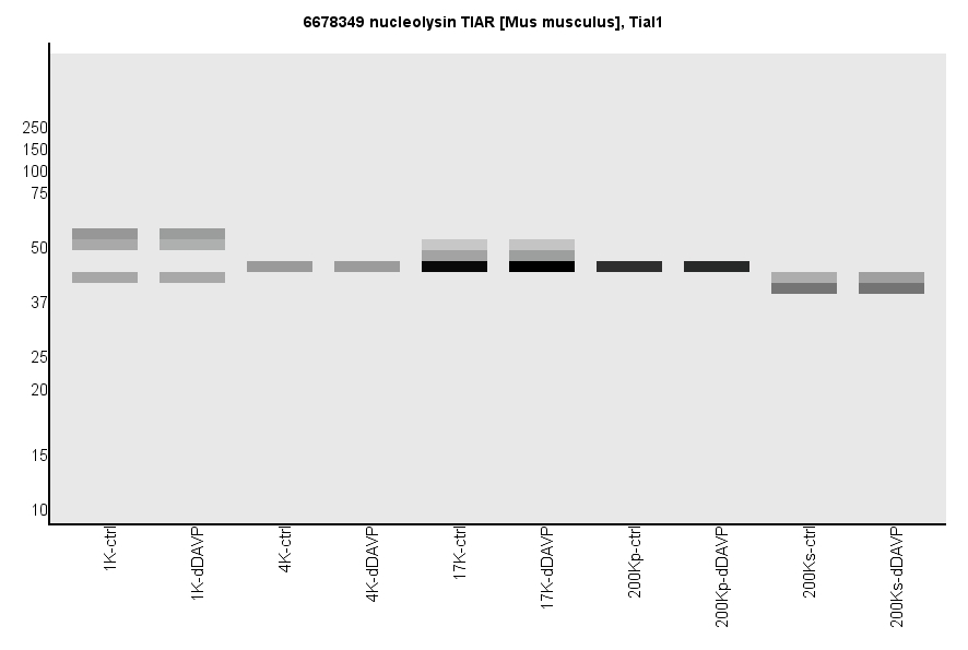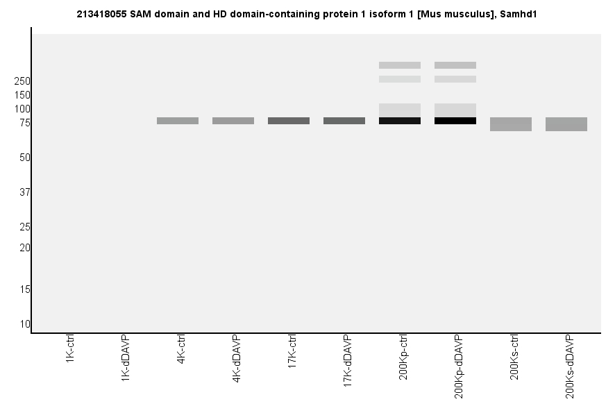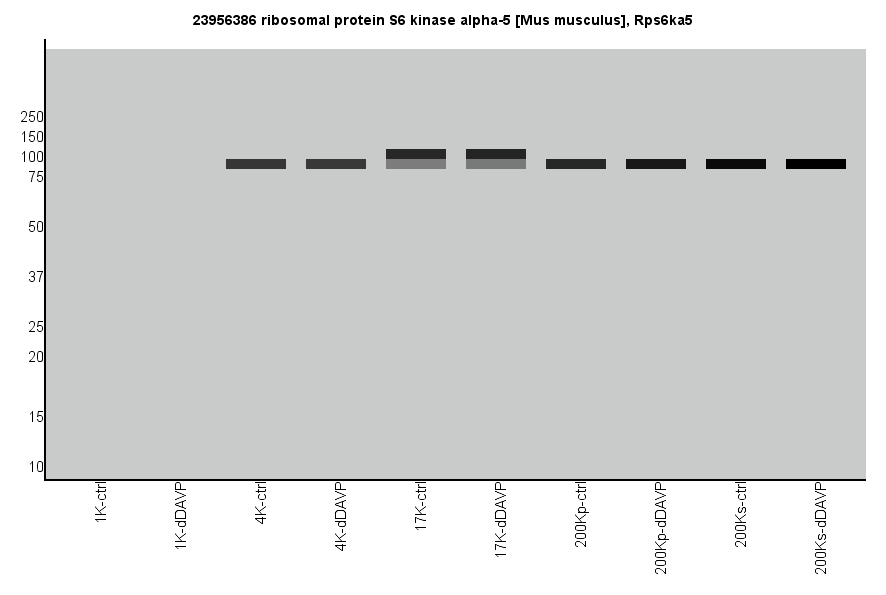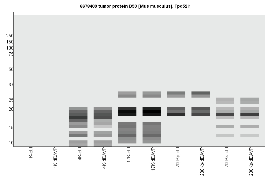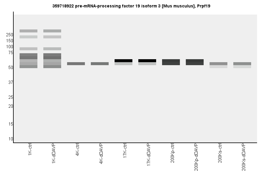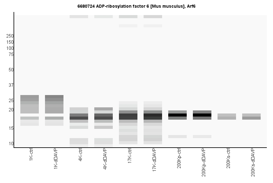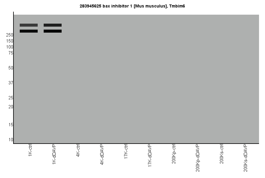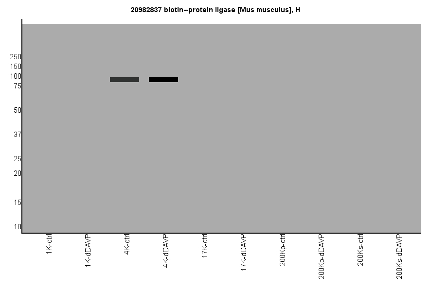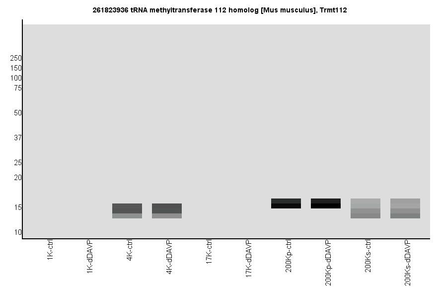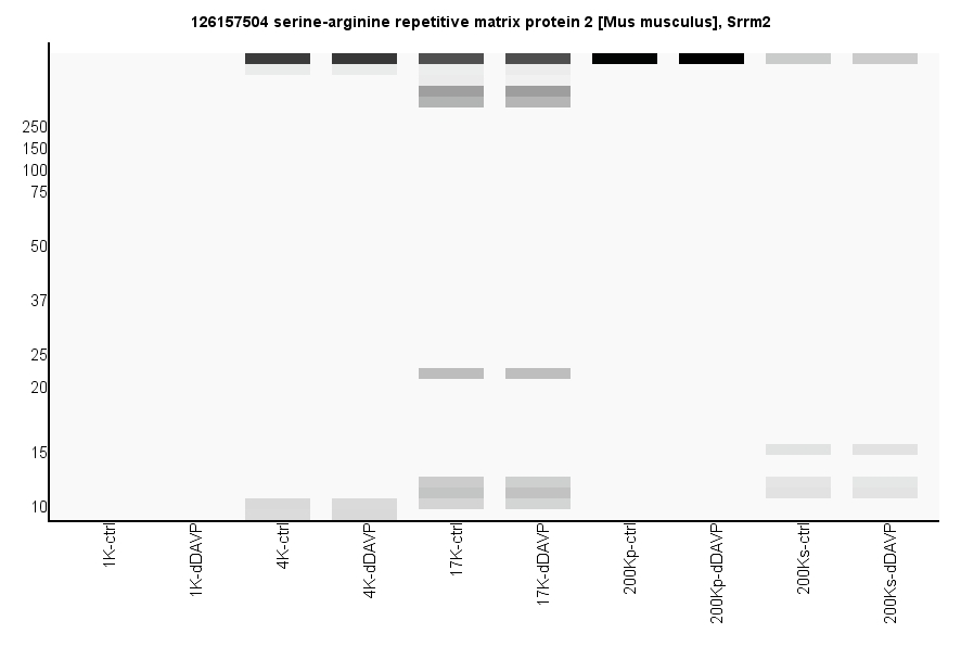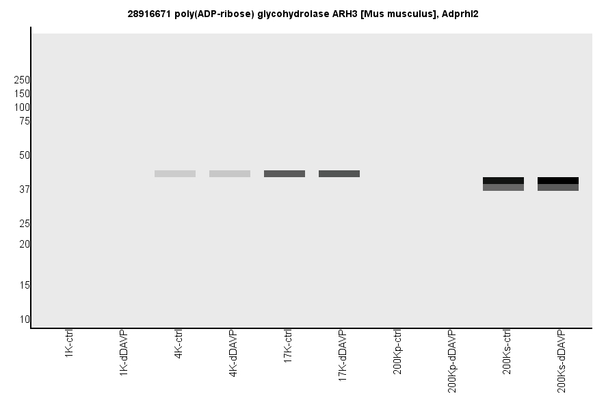 The virtual western blot images show data normalized using a logarithmic conversion scale to map peptide intensities to gray-scale levels. Using this conversion method, low-abundance peptides are generally visible in the blot images. Switch back to the default linear conversion scale database page.