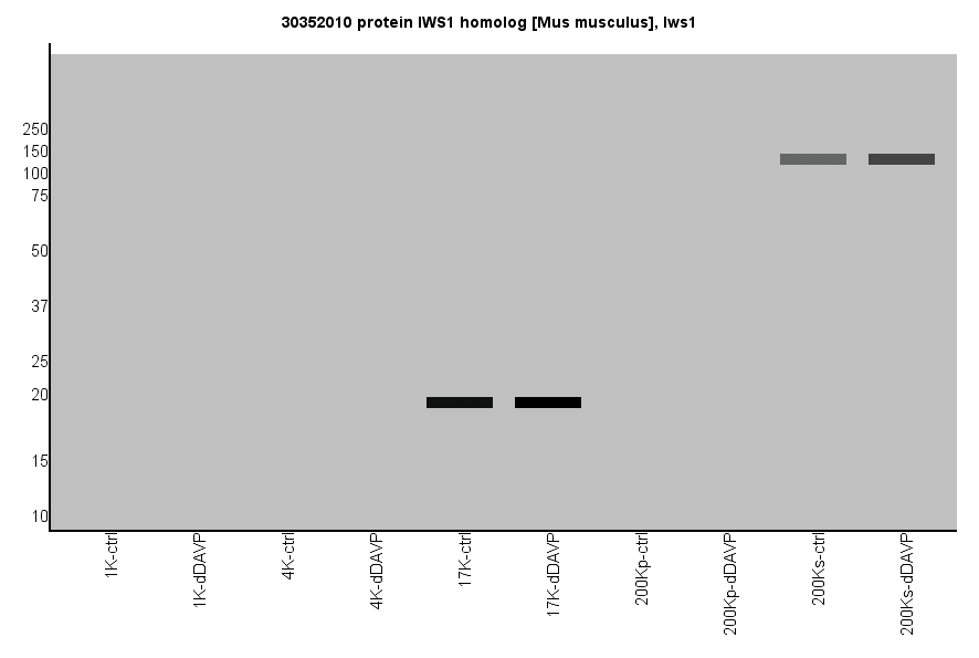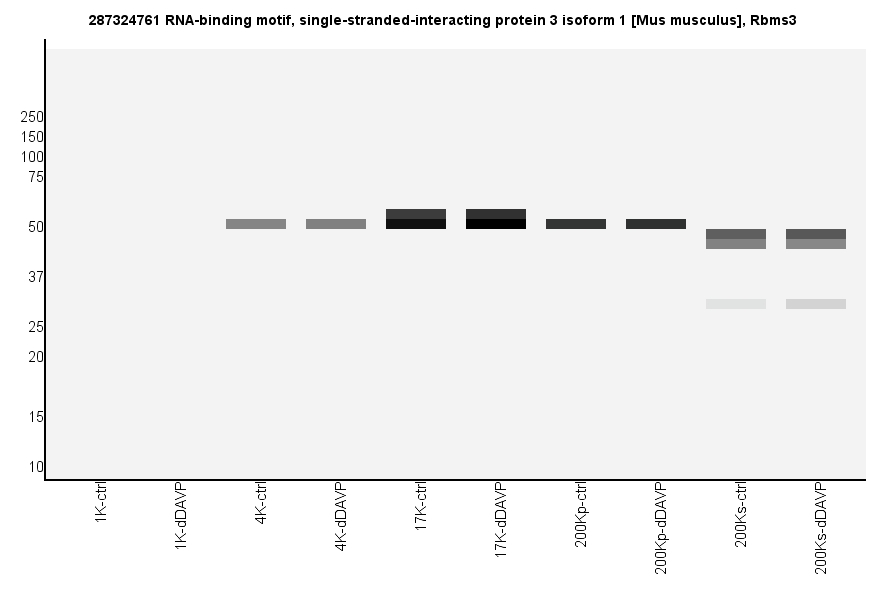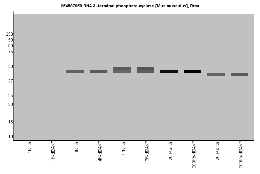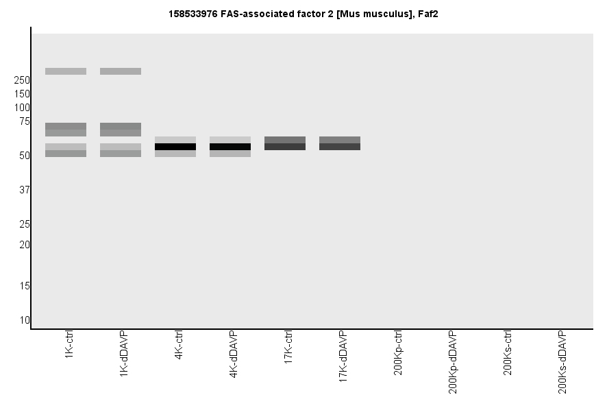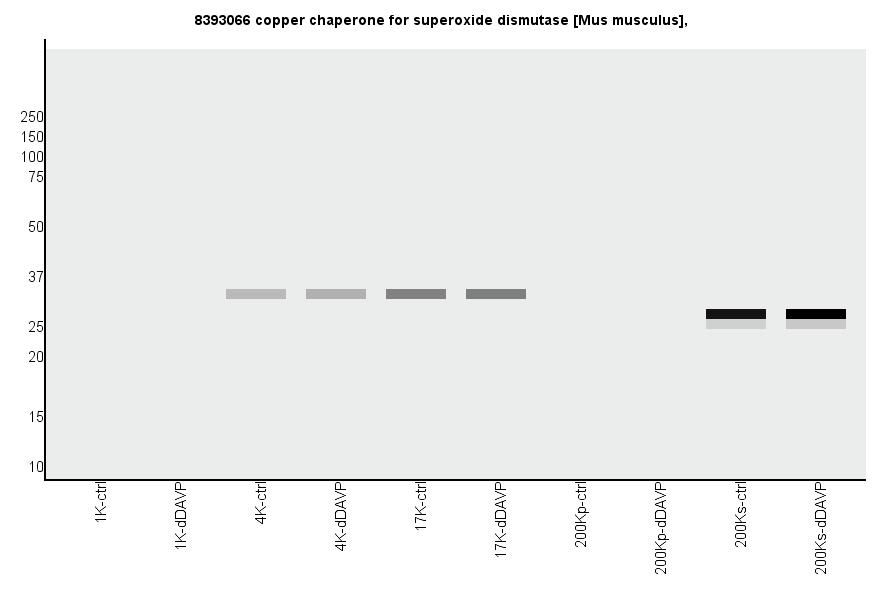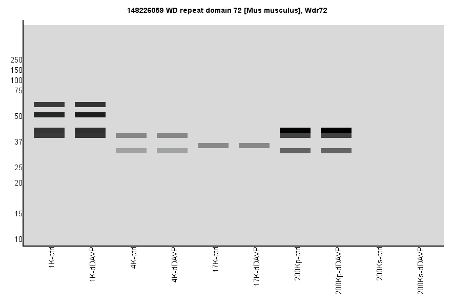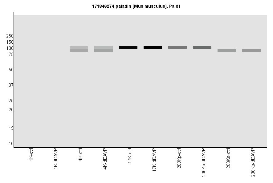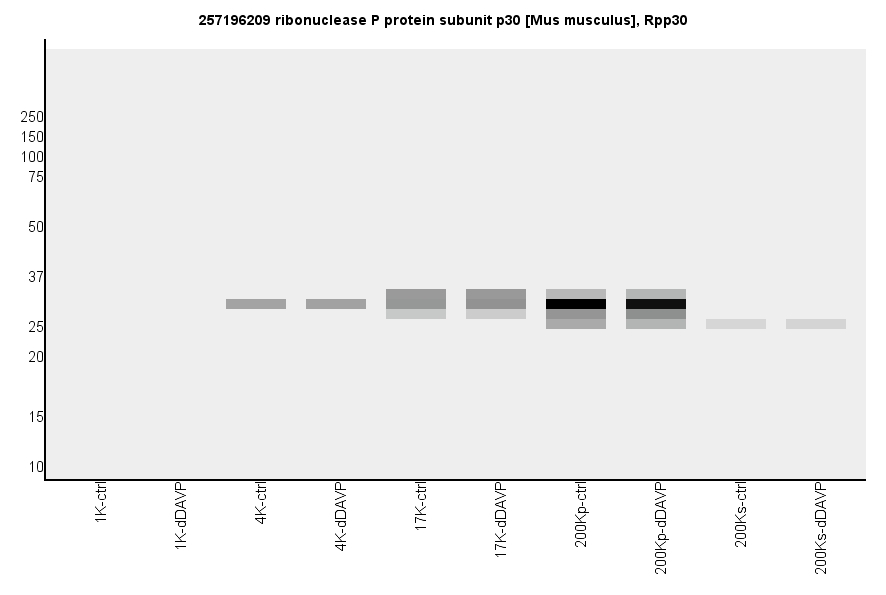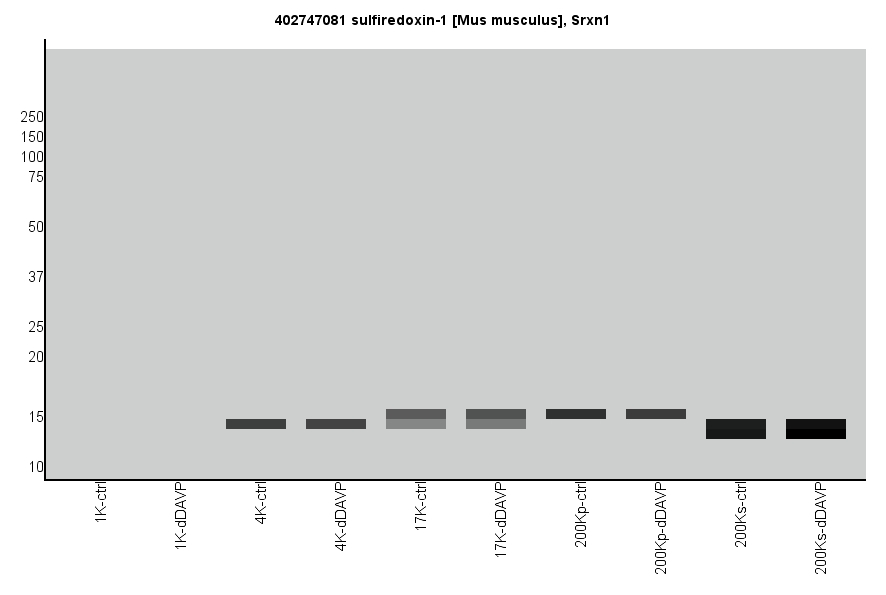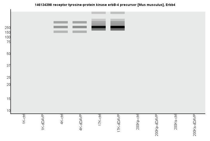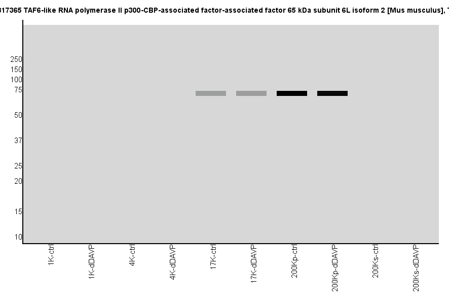 The virtual western blot images show data normalized using a logarithmic conversion scale to map peptide intensities to gray-scale levels. Using this conversion method, low-abundance peptides are generally visible in the blot images. Switch back to the default linear conversion scale database page.