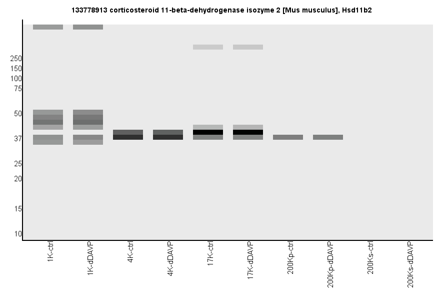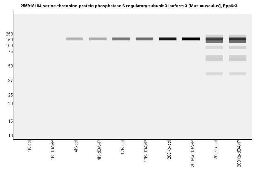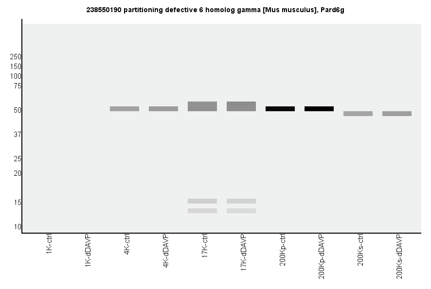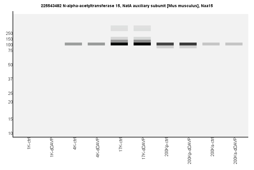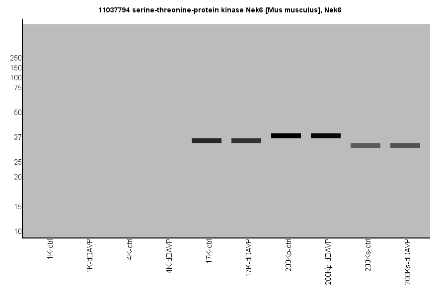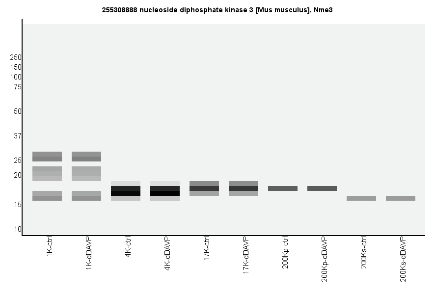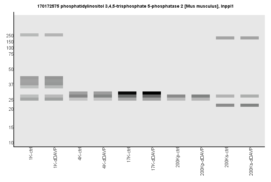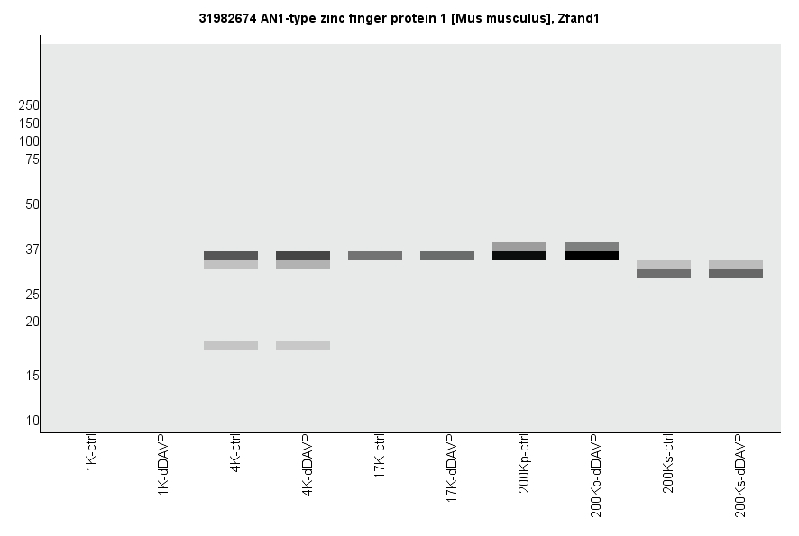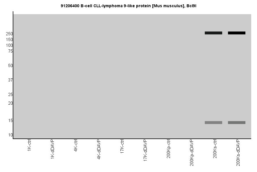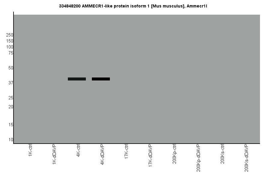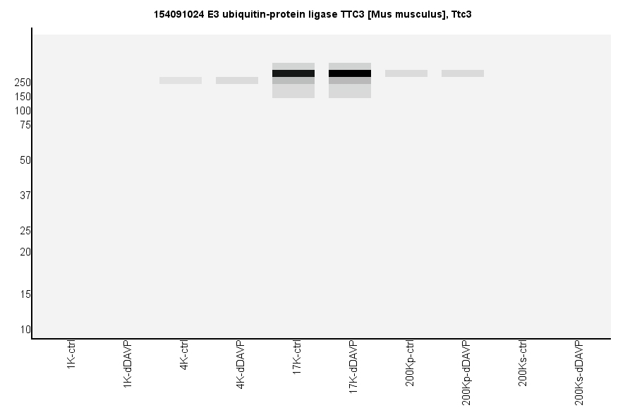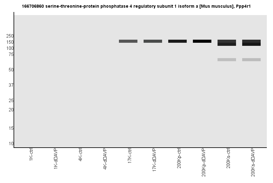 The virtual western blot images show data normalized using a logarithmic conversion scale to map peptide intensities to gray-scale levels. Using this conversion method, low-abundance peptides are generally visible in the blot images. Switch back to the default linear conversion scale database page.