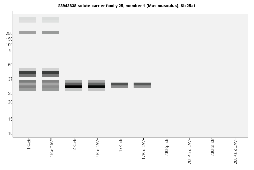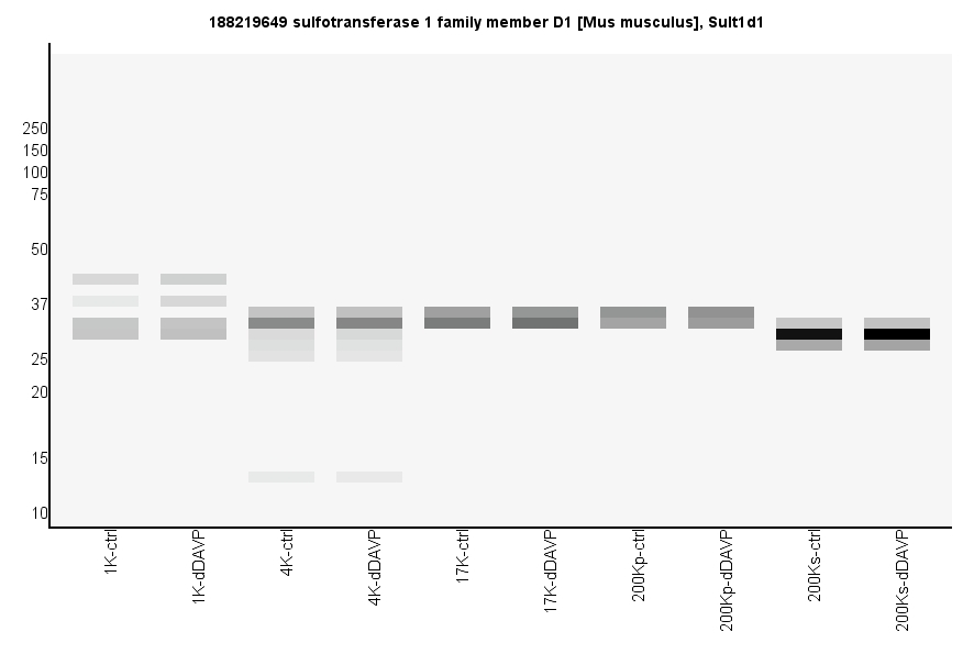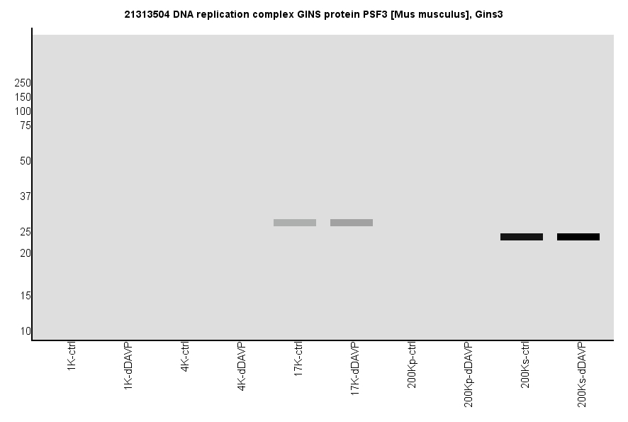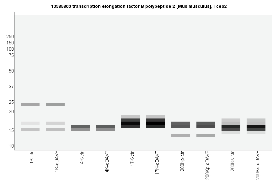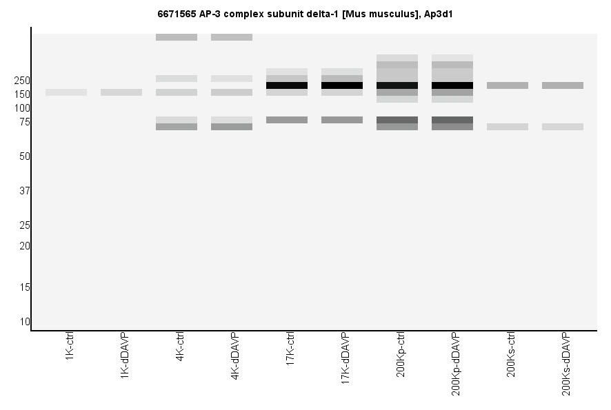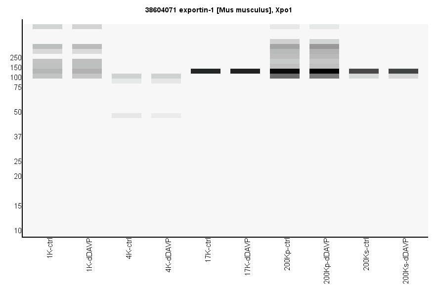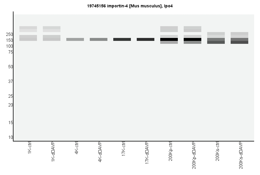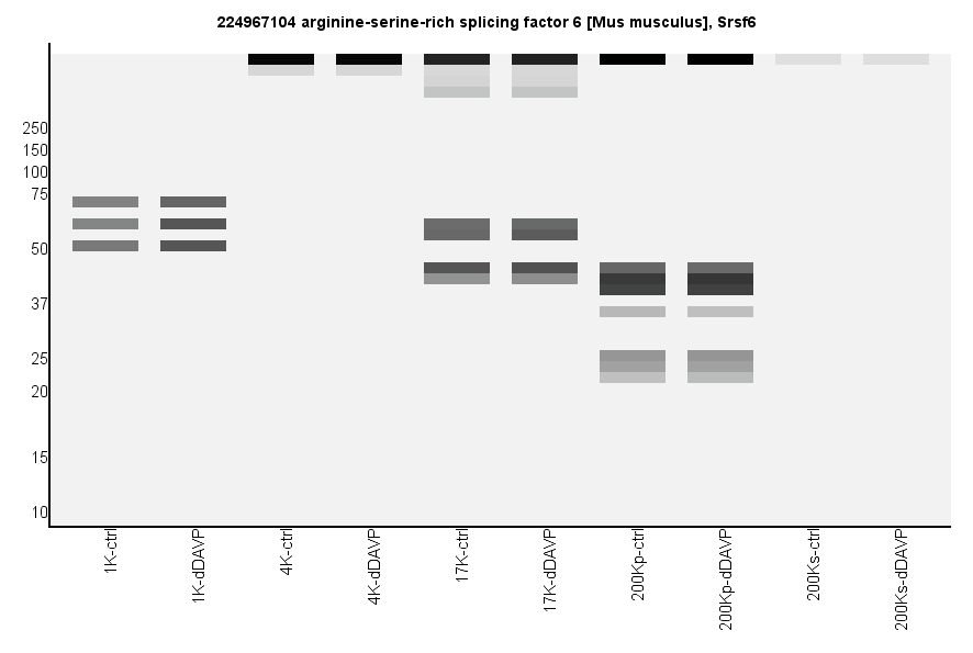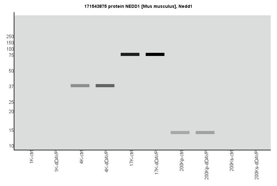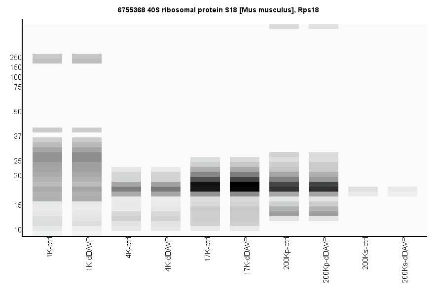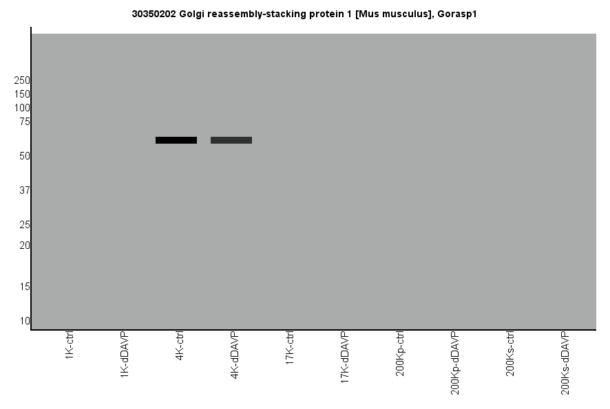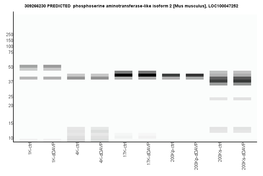 The virtual western blot images show data normalized using a logarithmic conversion scale to map peptide intensities to gray-scale levels. Using this conversion method, low-abundance peptides are generally visible in the blot images. Switch back to the default linear conversion scale database page.