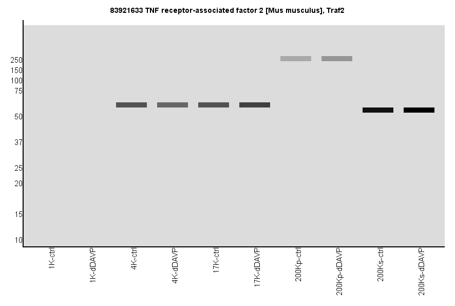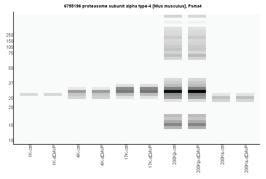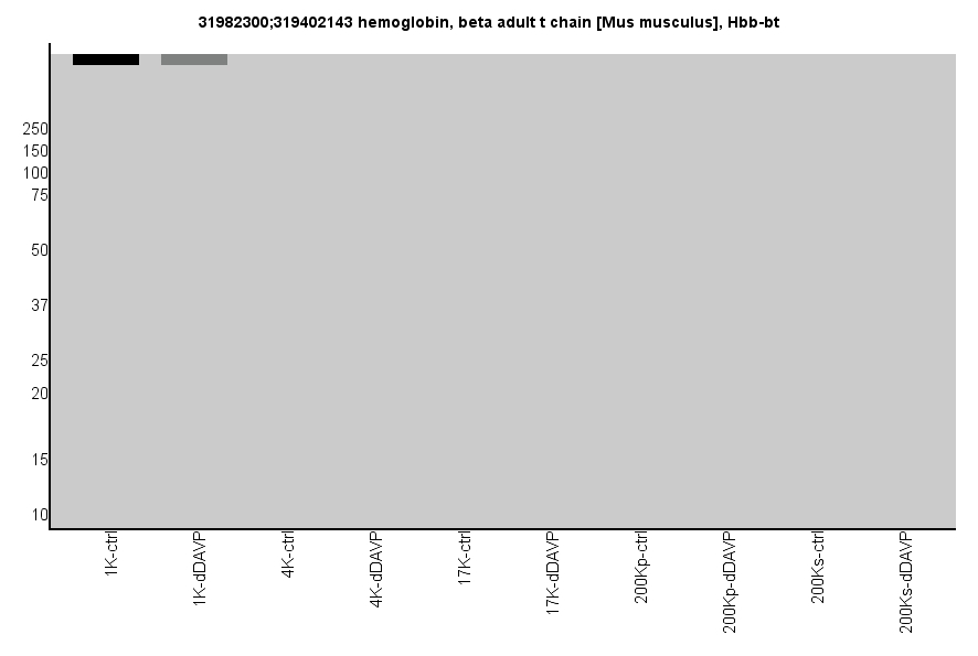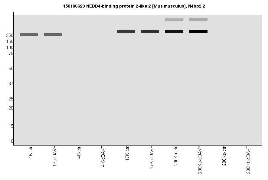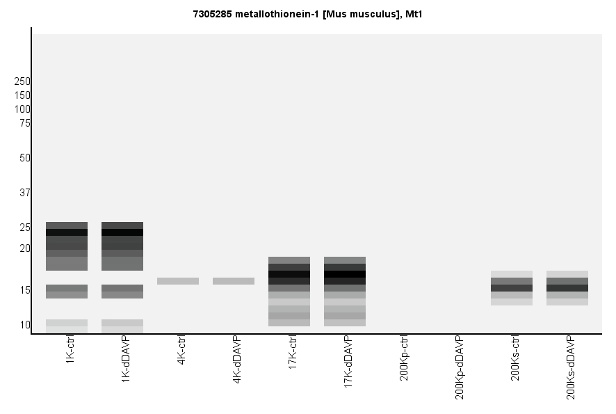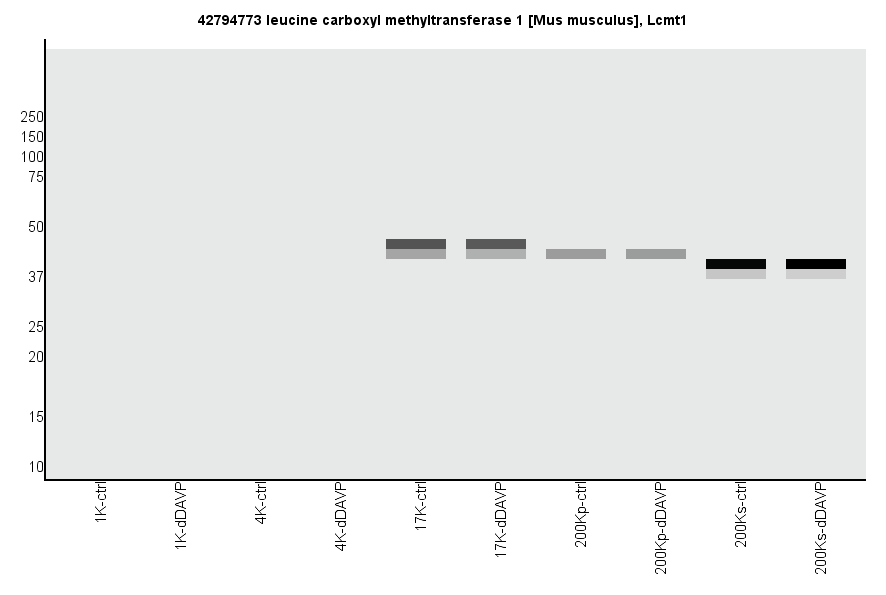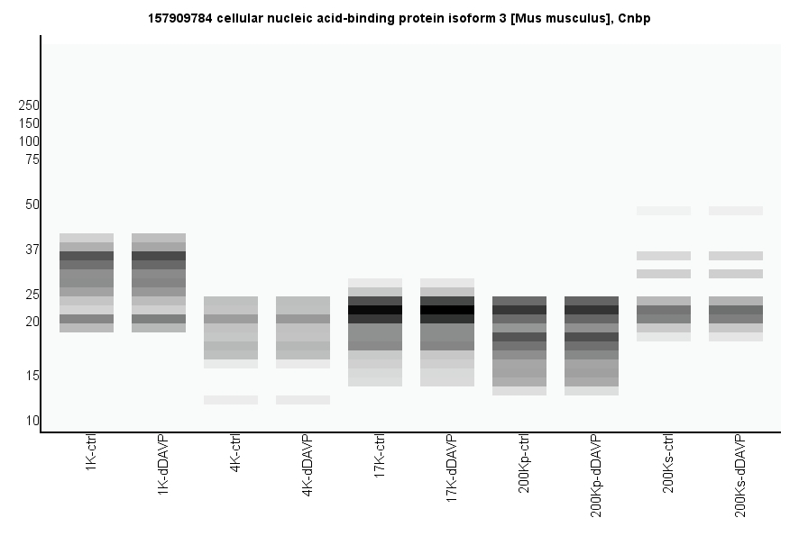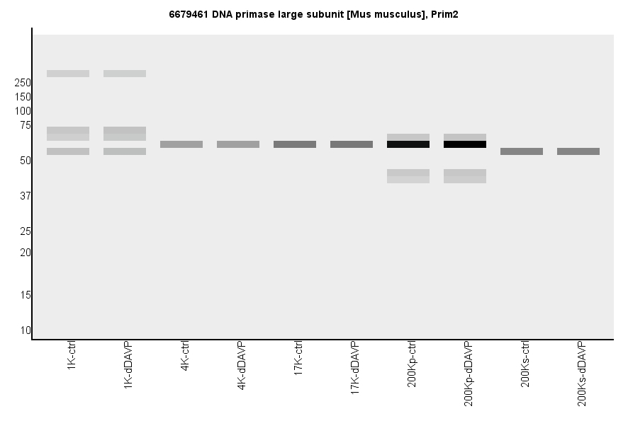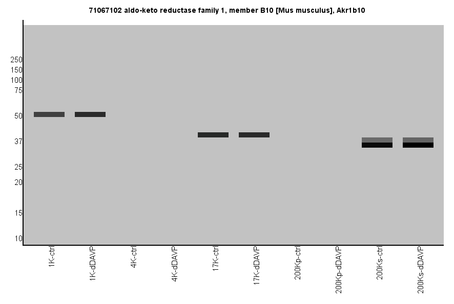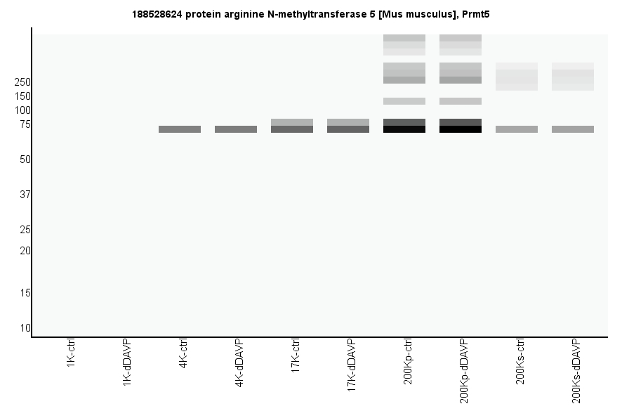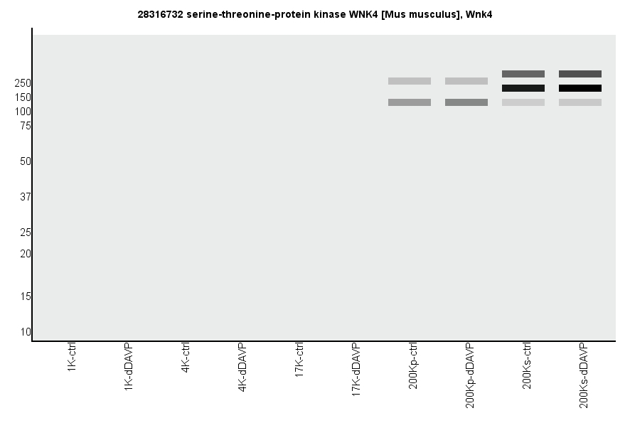 The virtual western blot images show data normalized using a logarithmic conversion scale to map peptide intensities to gray-scale levels. Using this conversion method, low-abundance peptides are generally visible in the blot images. Switch back to the default linear conversion scale database page.