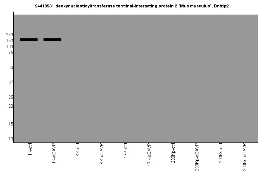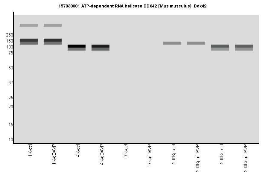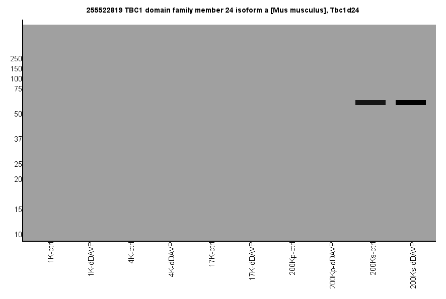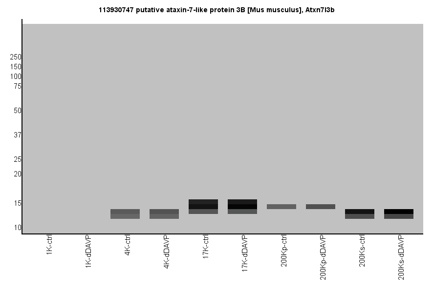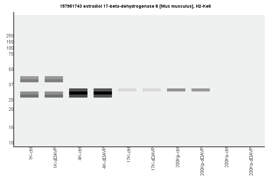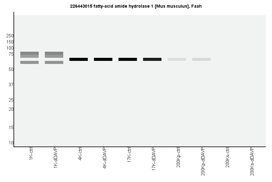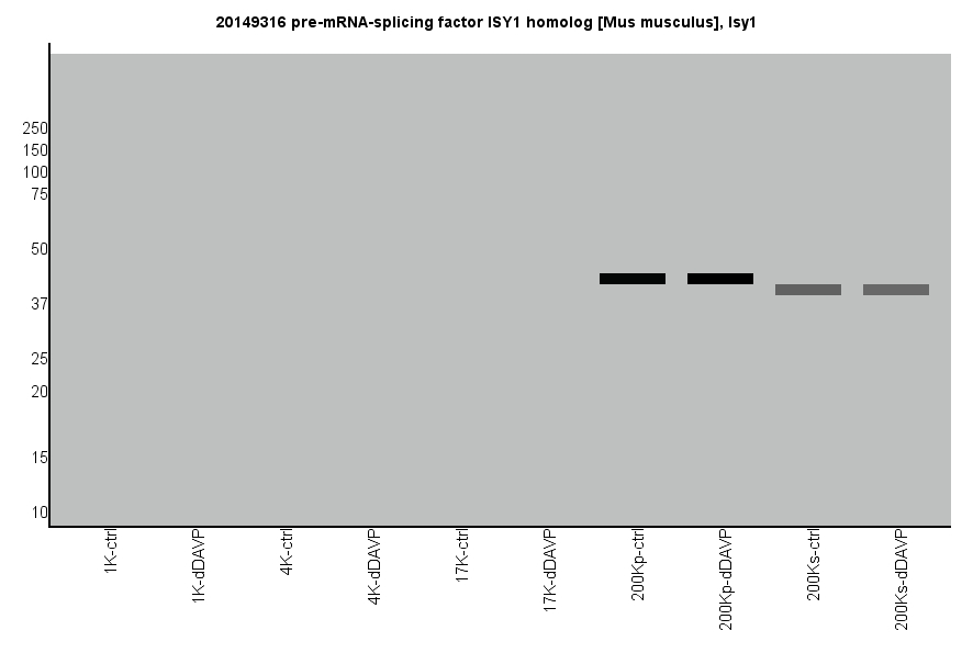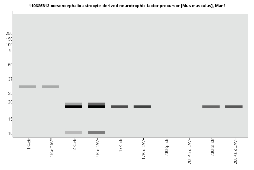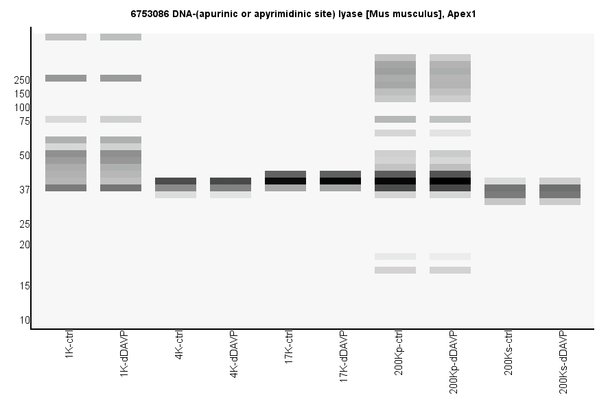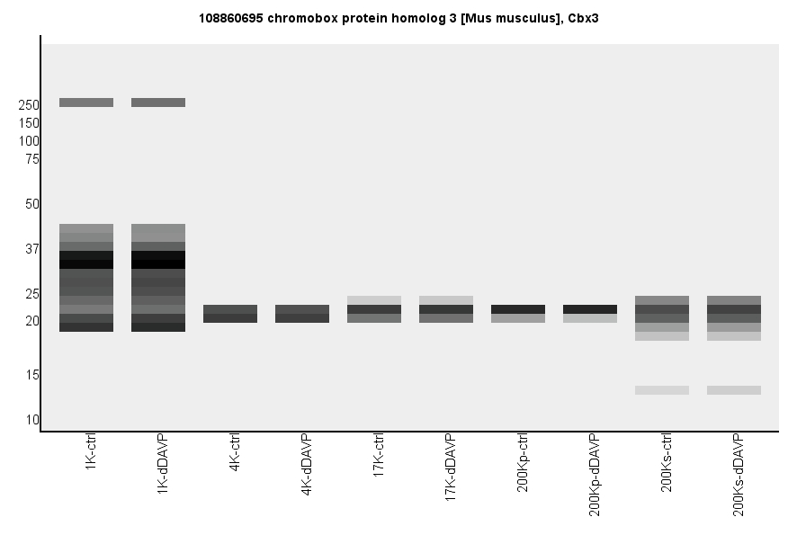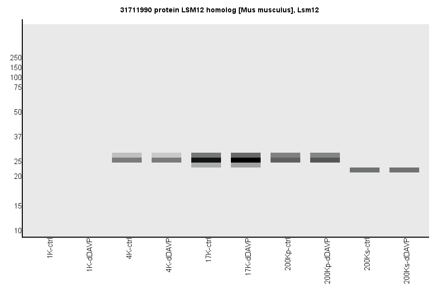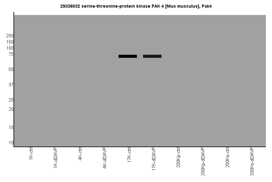 The virtual western blot images show data normalized using a logarithmic conversion scale to map peptide intensities to gray-scale levels. Using this conversion method, low-abundance peptides are generally visible in the blot images. Switch back to the default linear conversion scale database page.