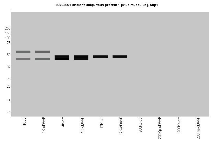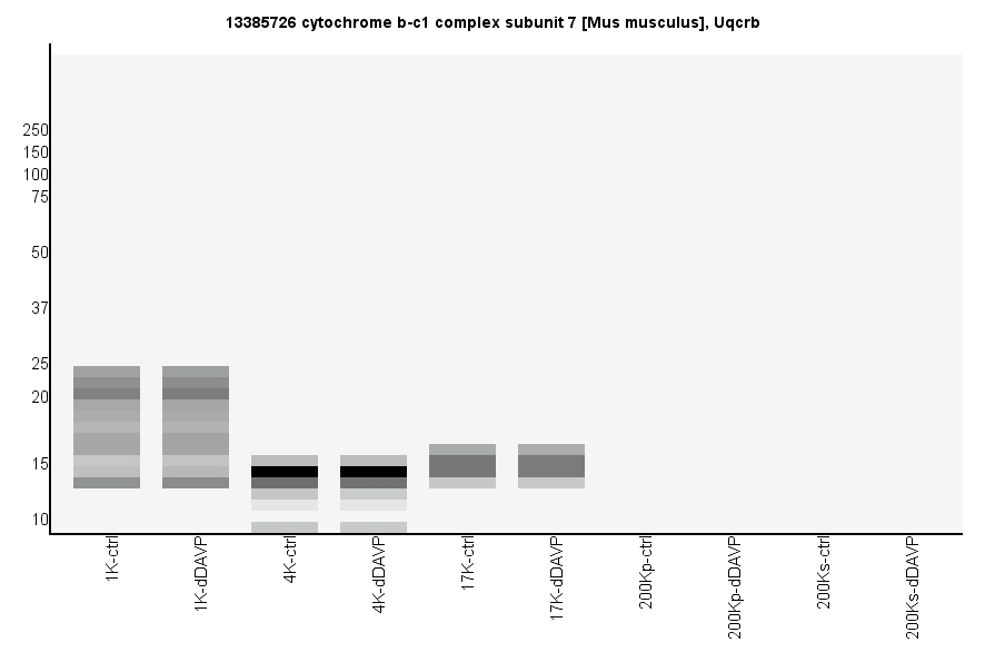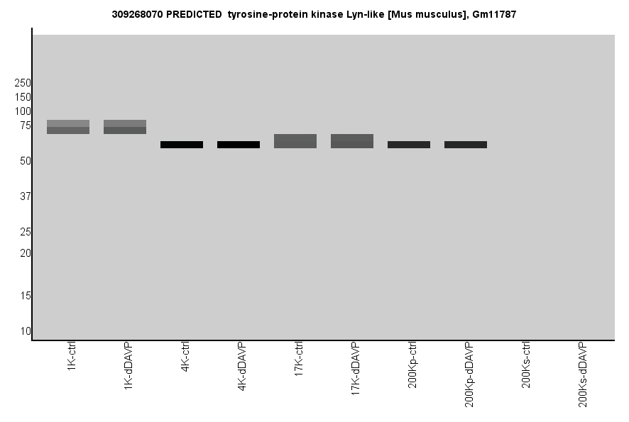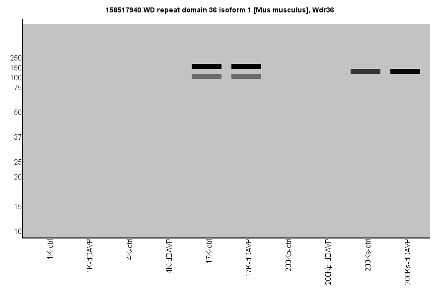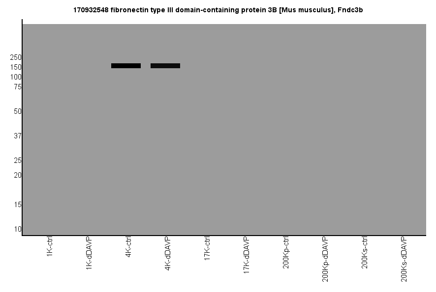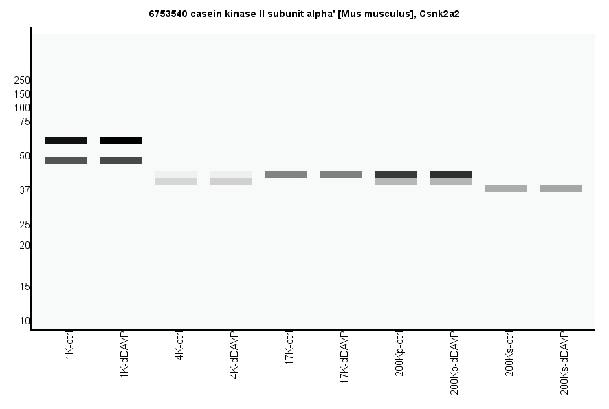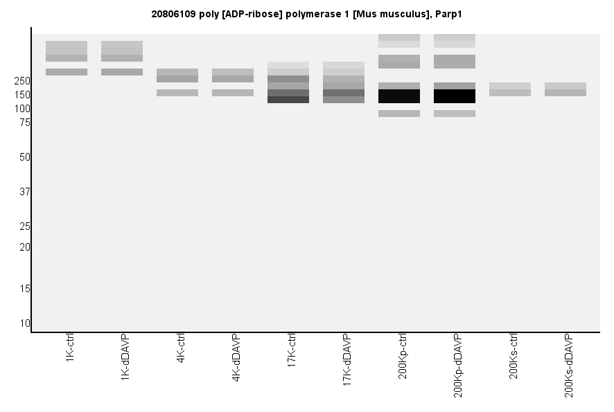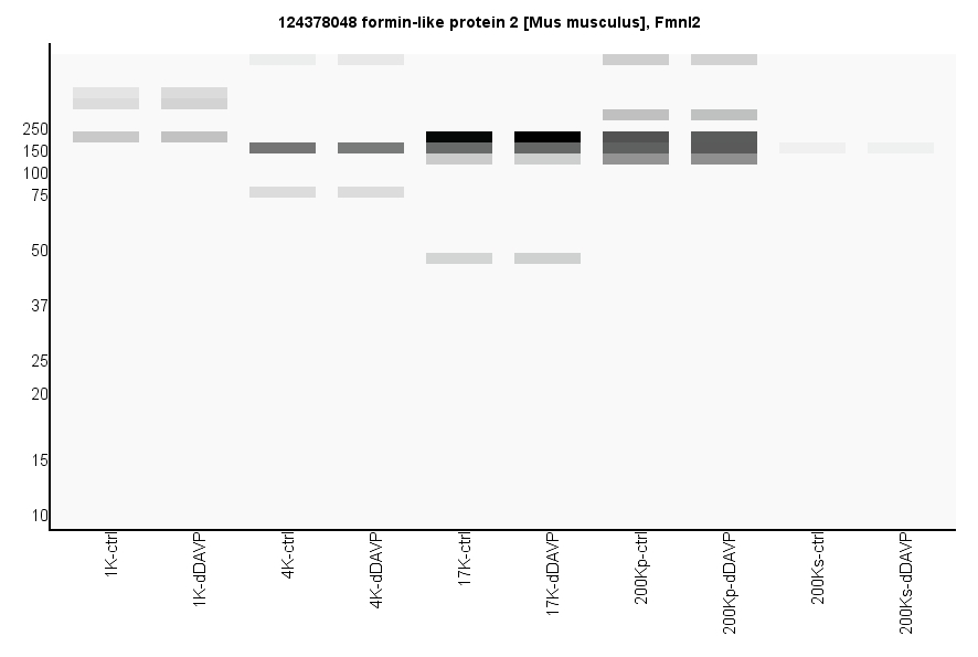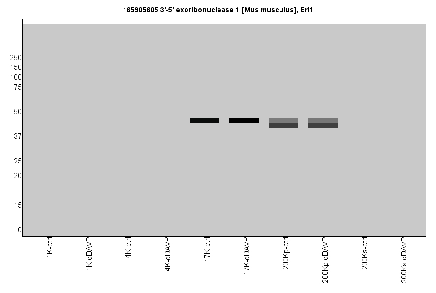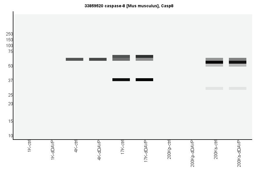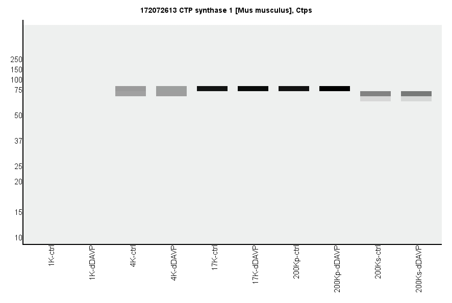 The virtual western blot images show data normalized using a logarithmic conversion scale to map peptide intensities to gray-scale levels. Using this conversion method, low-abundance peptides are generally visible in the blot images. Switch back to the default linear conversion scale database page.