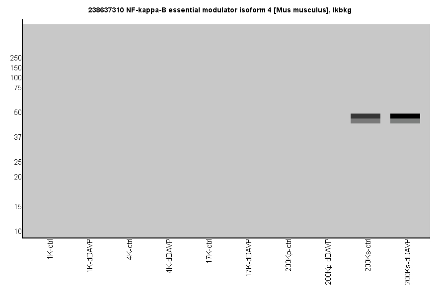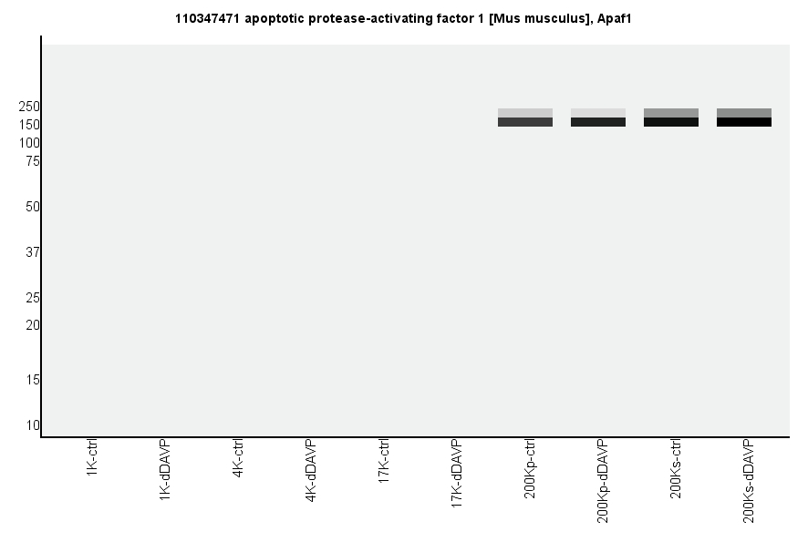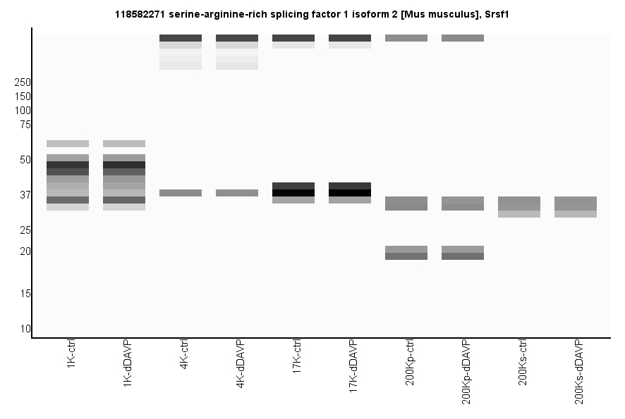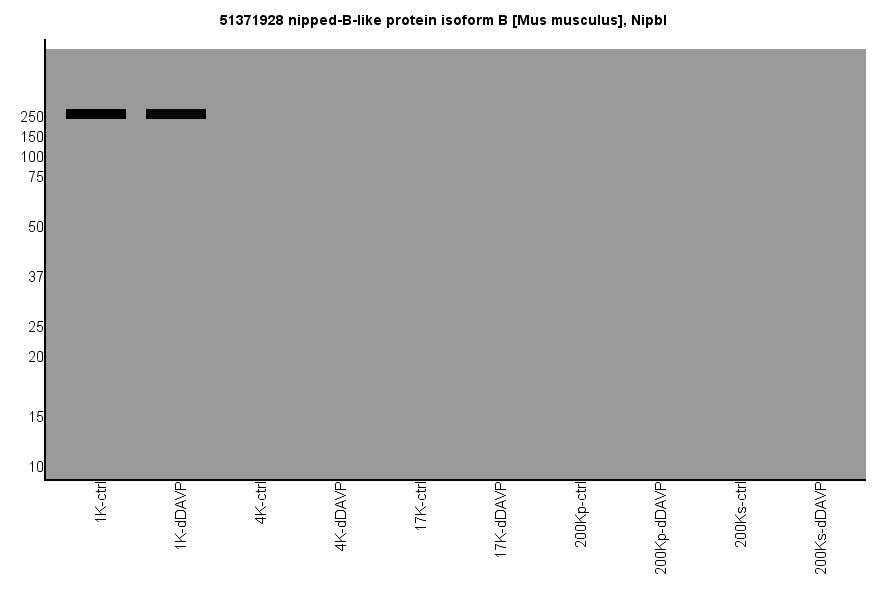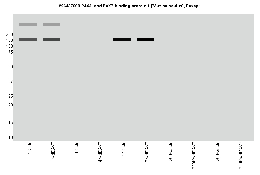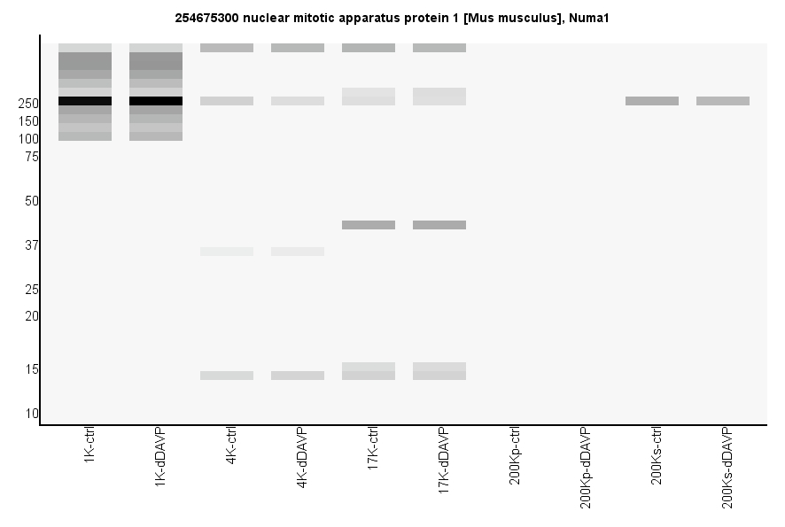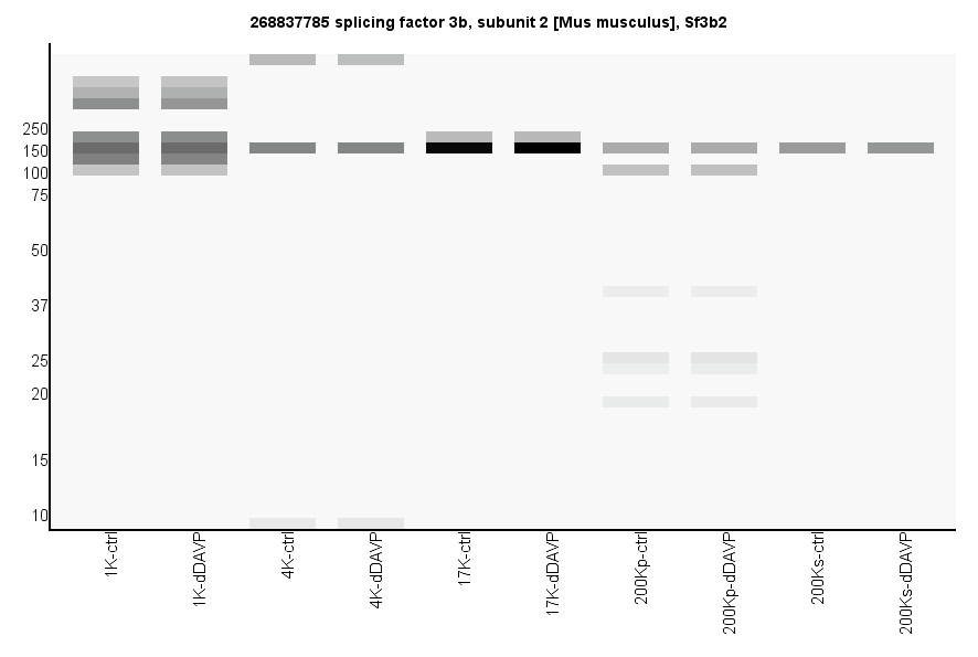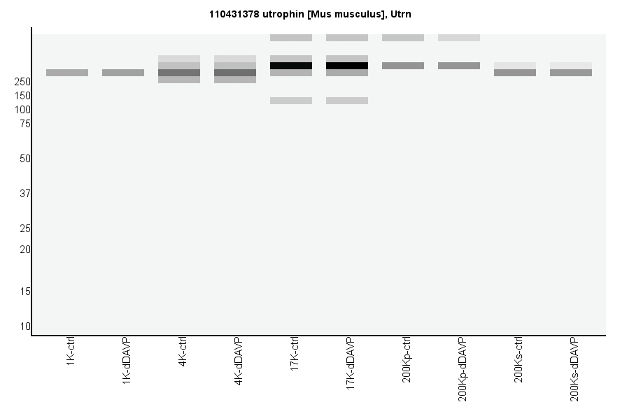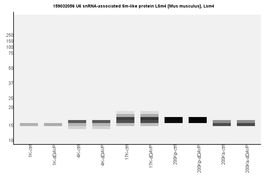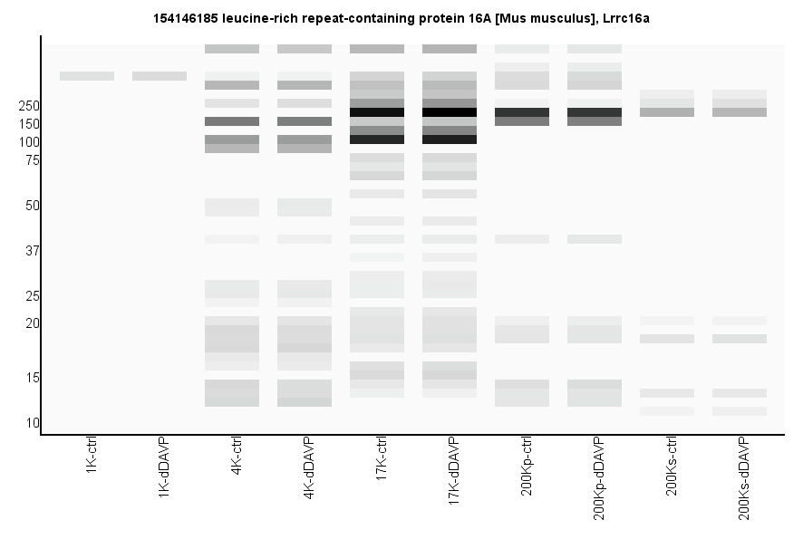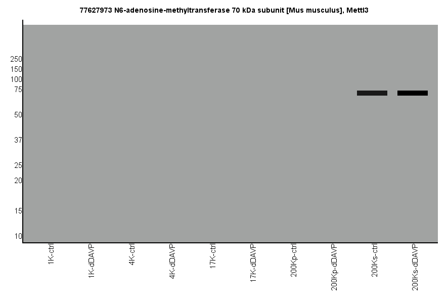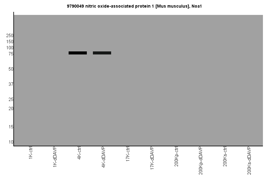 The virtual western blot images show data normalized using a logarithmic conversion scale to map peptide intensities to gray-scale levels. Using this conversion method, low-abundance peptides are generally visible in the blot images. Switch back to the default linear conversion scale database page.