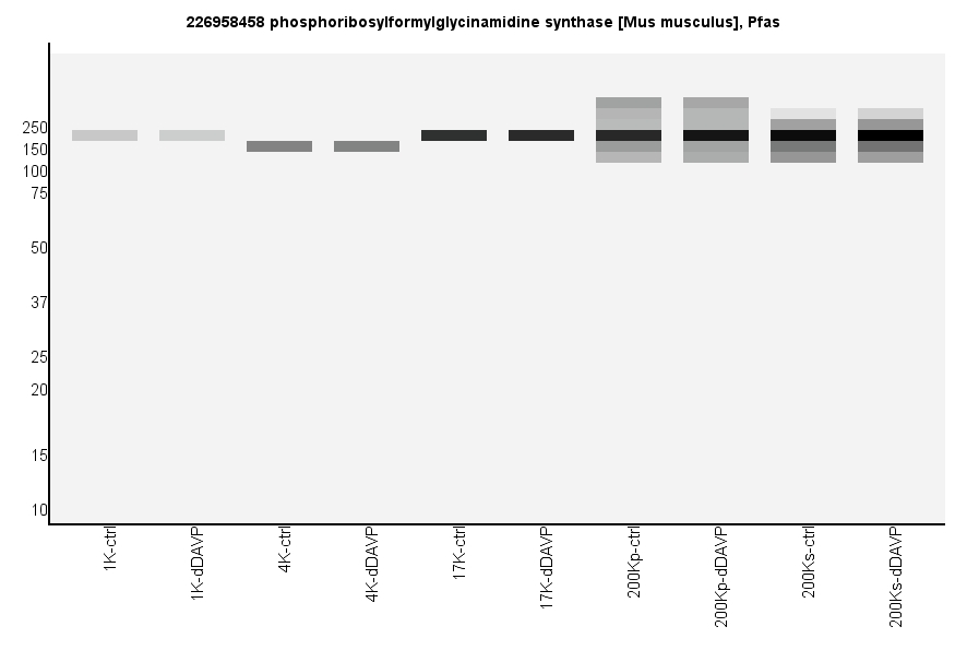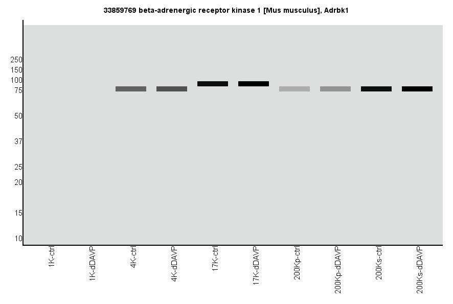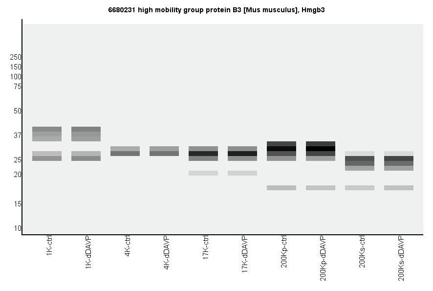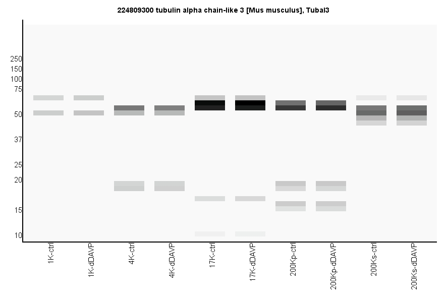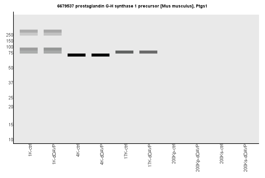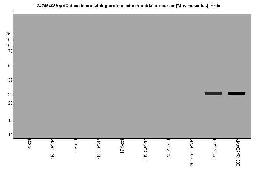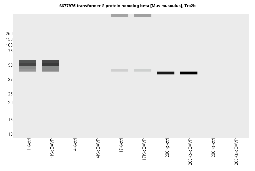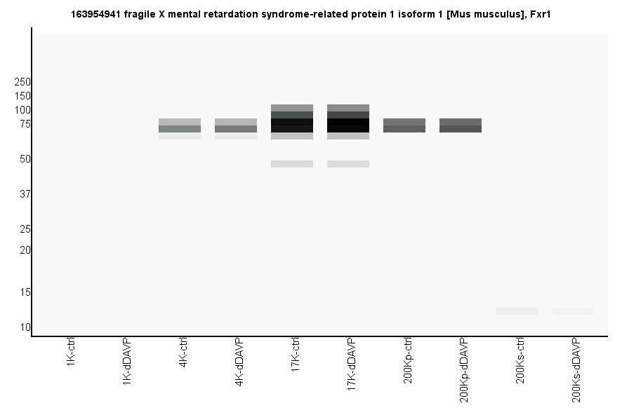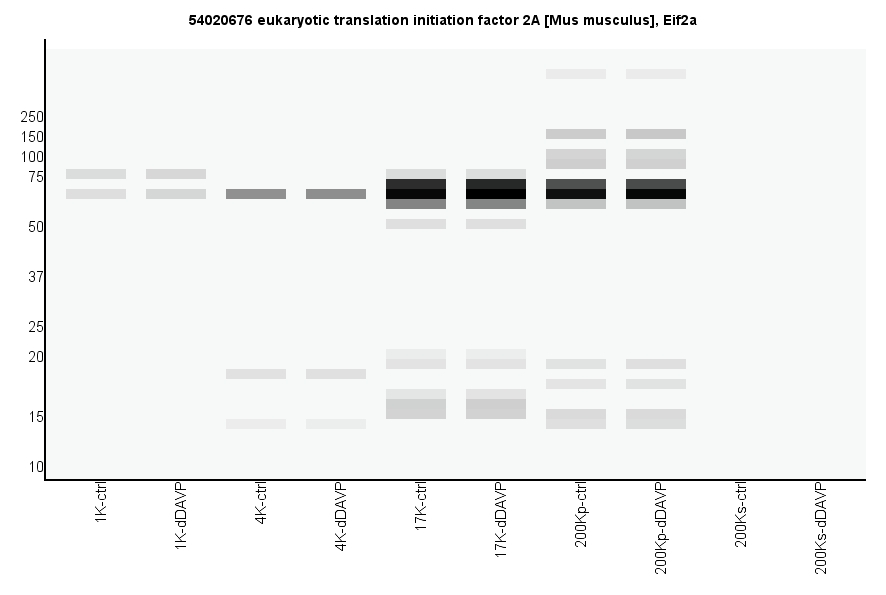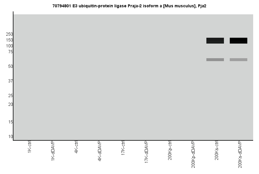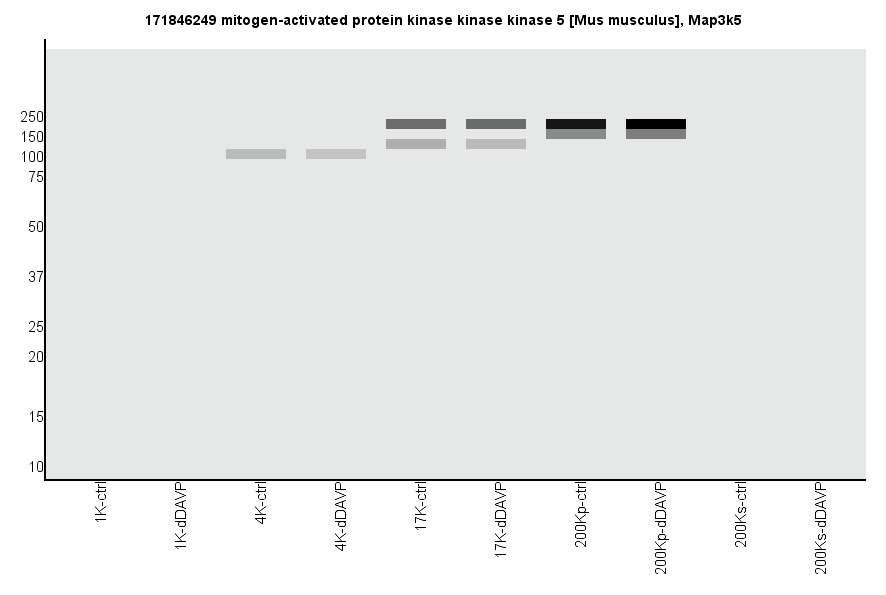 The virtual western blot images show data normalized using a logarithmic conversion scale to map peptide intensities to gray-scale levels. Using this conversion method, low-abundance peptides are generally visible in the blot images. Switch back to the default linear conversion scale database page.