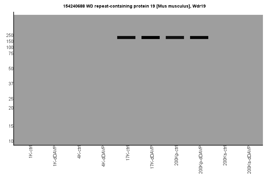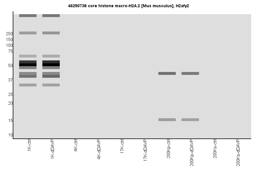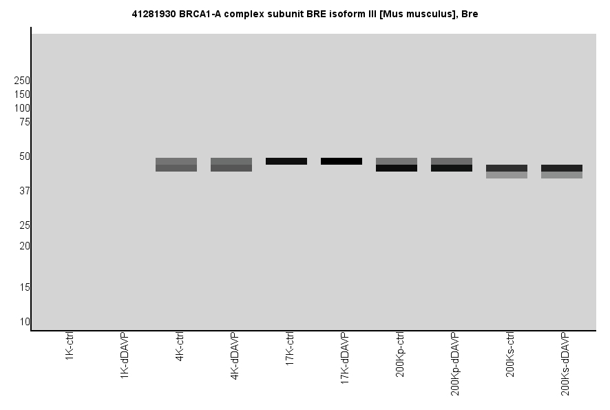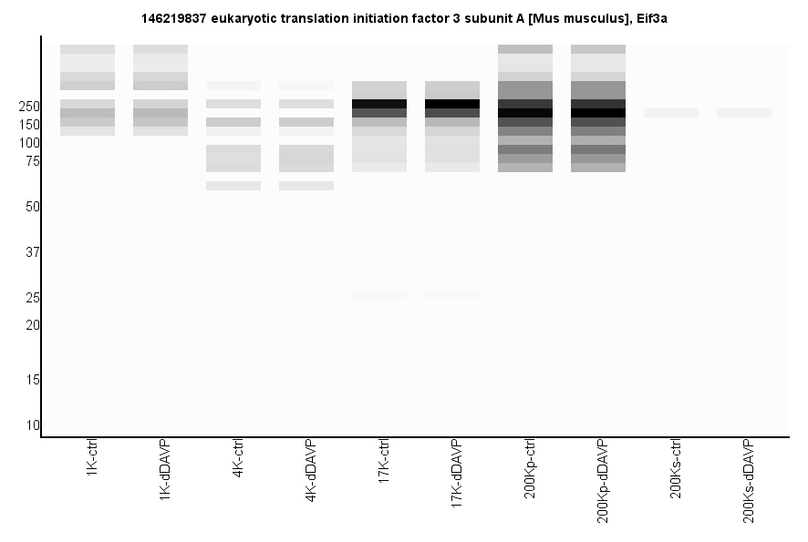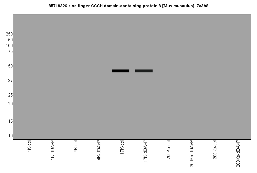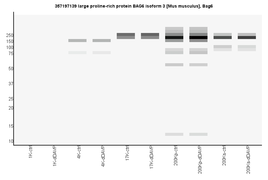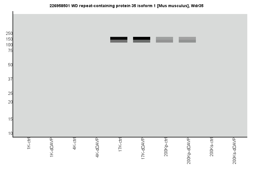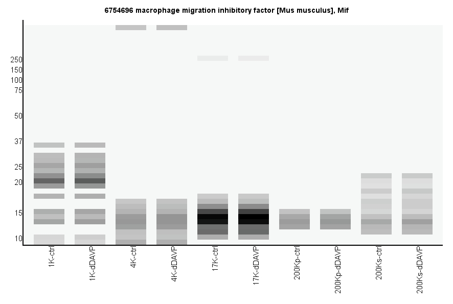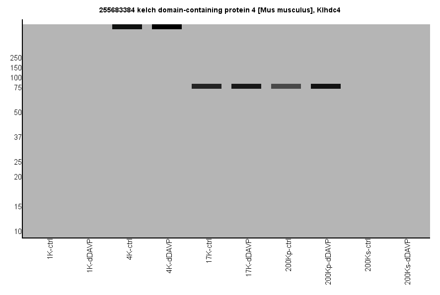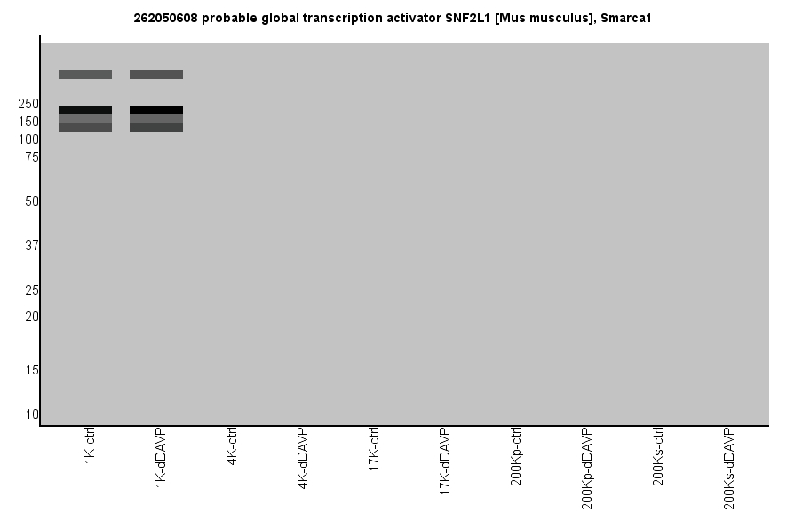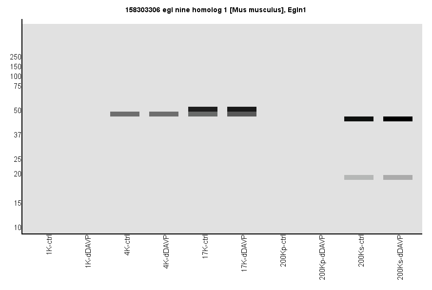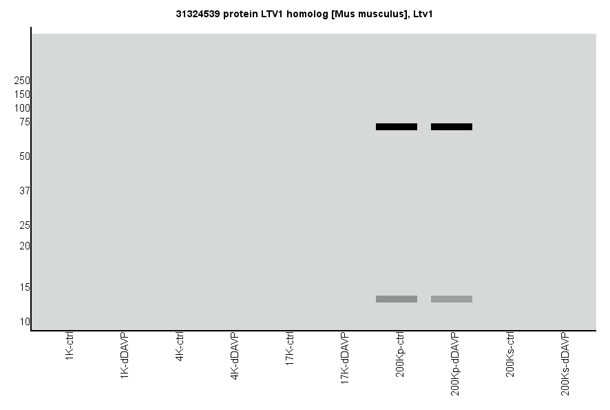The virtual western blot images show data normalized using a logarithmic conversion scale to map peptide intensities to gray-scale levels. Using this conversion method, low-abundance peptides are generally visible in the blot images. Switch back to the default linear conversion scale database page.