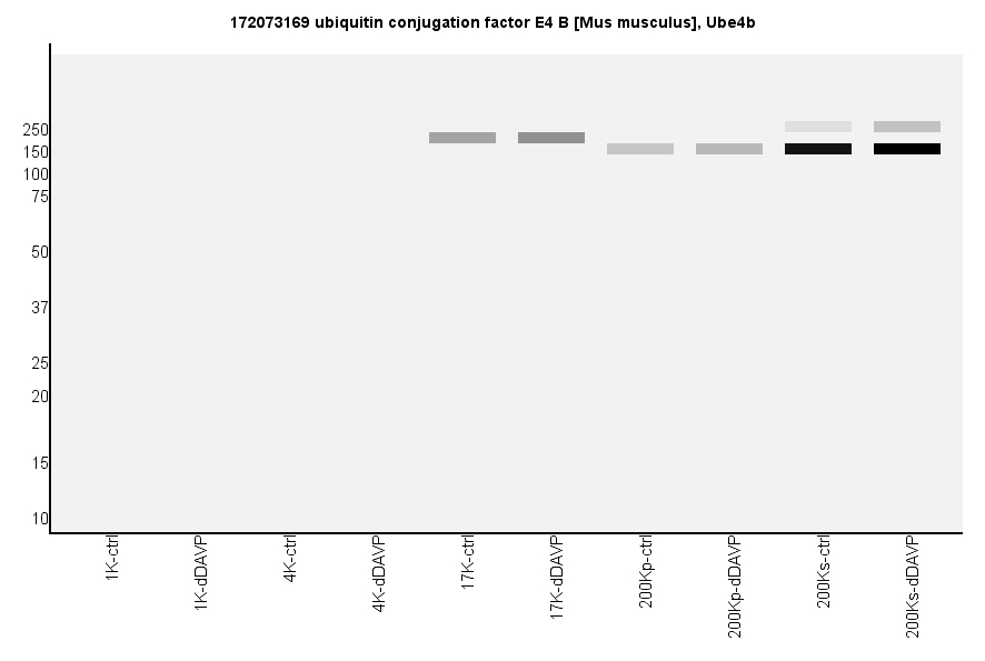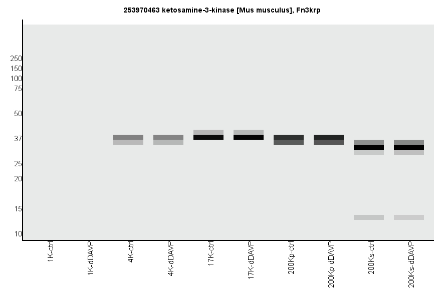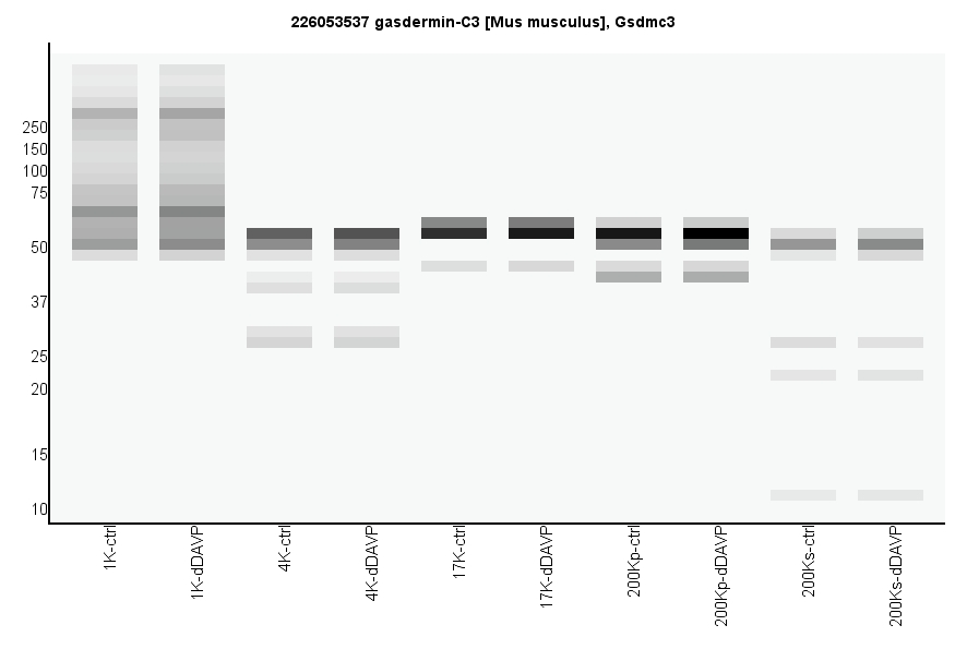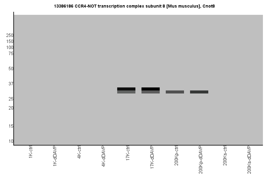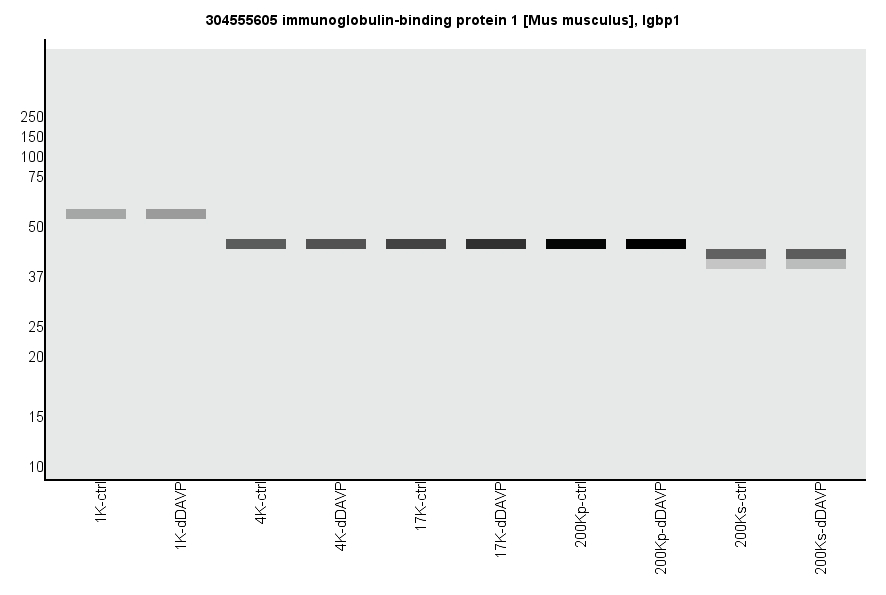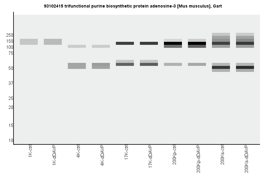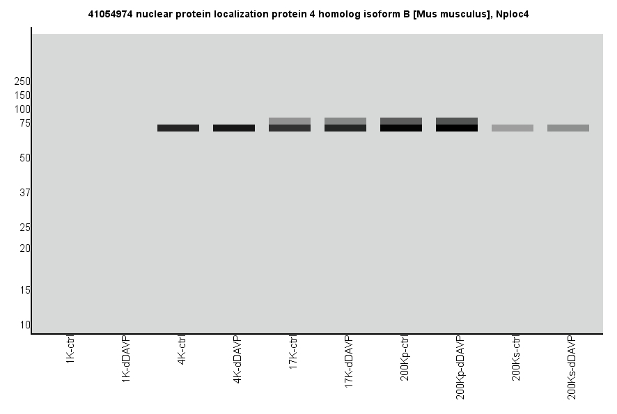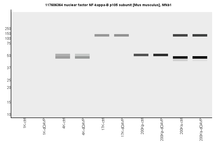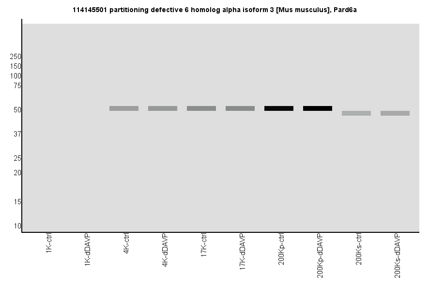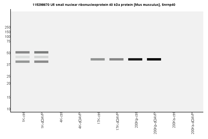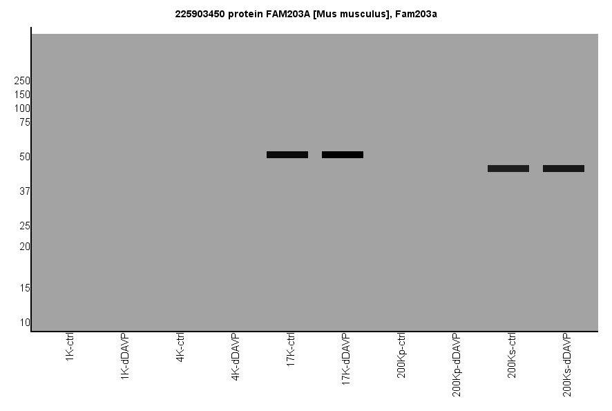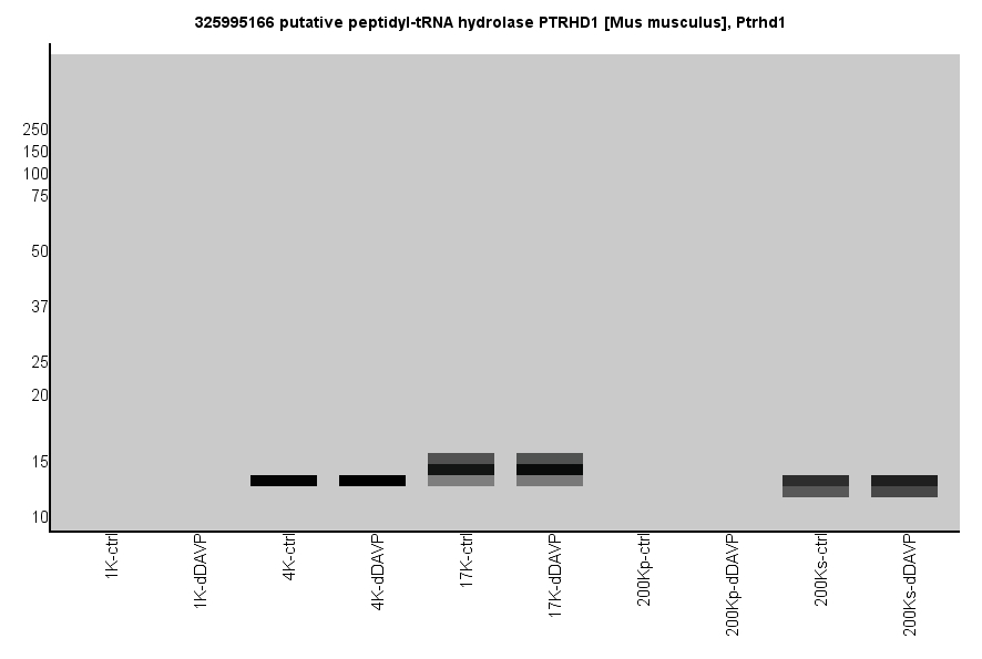 The virtual western blot images show data normalized using a logarithmic conversion scale to map peptide intensities to gray-scale levels. Using this conversion method, low-abundance peptides are generally visible in the blot images. Switch back to the default linear conversion scale database page.