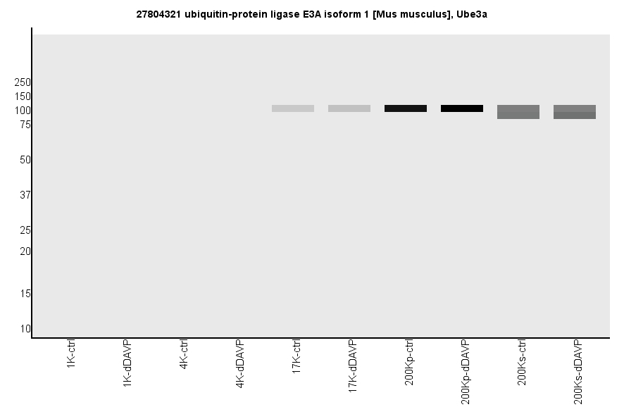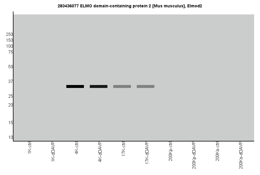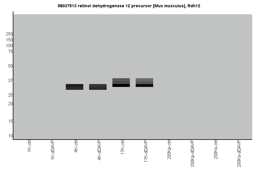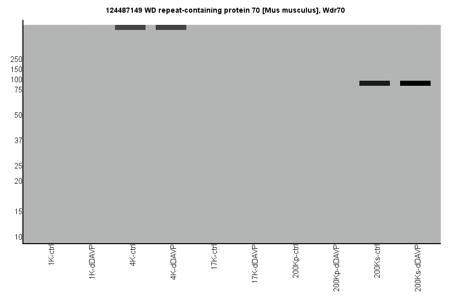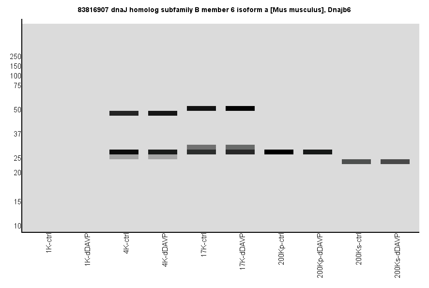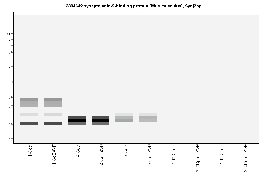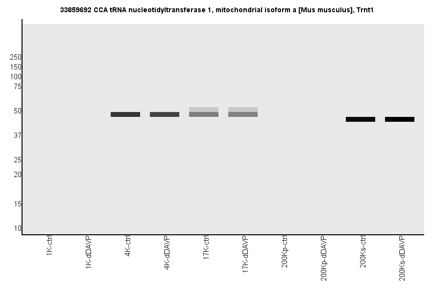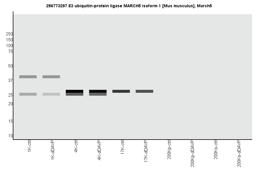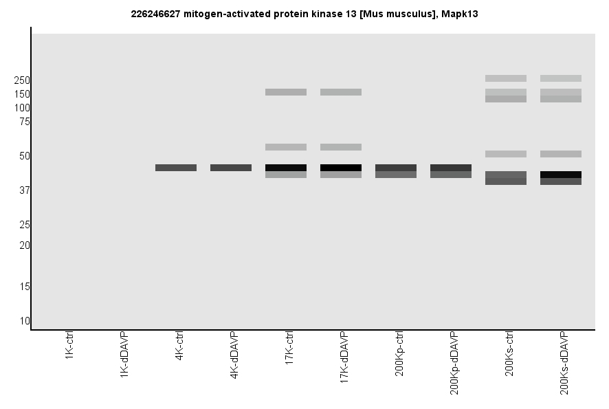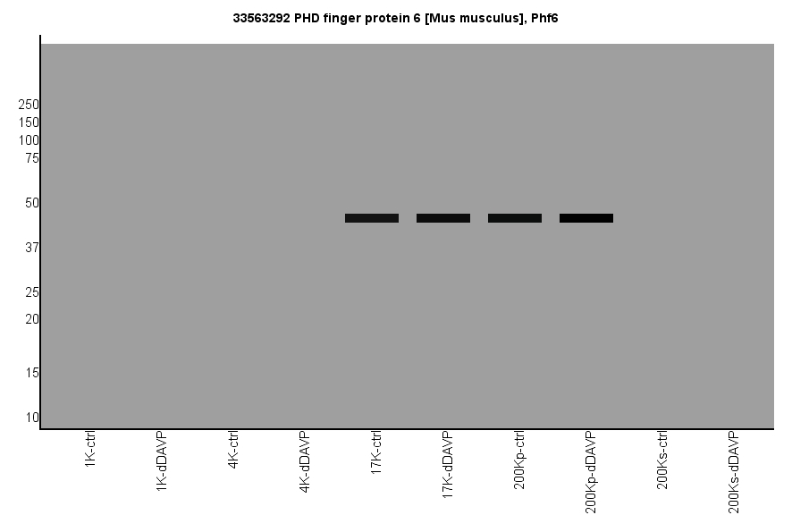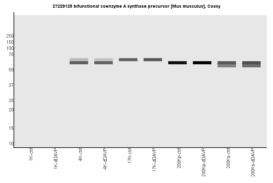The virtual western blot images show data normalized using a logarithmic conversion scale to map peptide intensities to gray-scale levels. Using this conversion method, low-abundance peptides are generally visible in the blot images. Switch back to the default linear conversion scale database page.