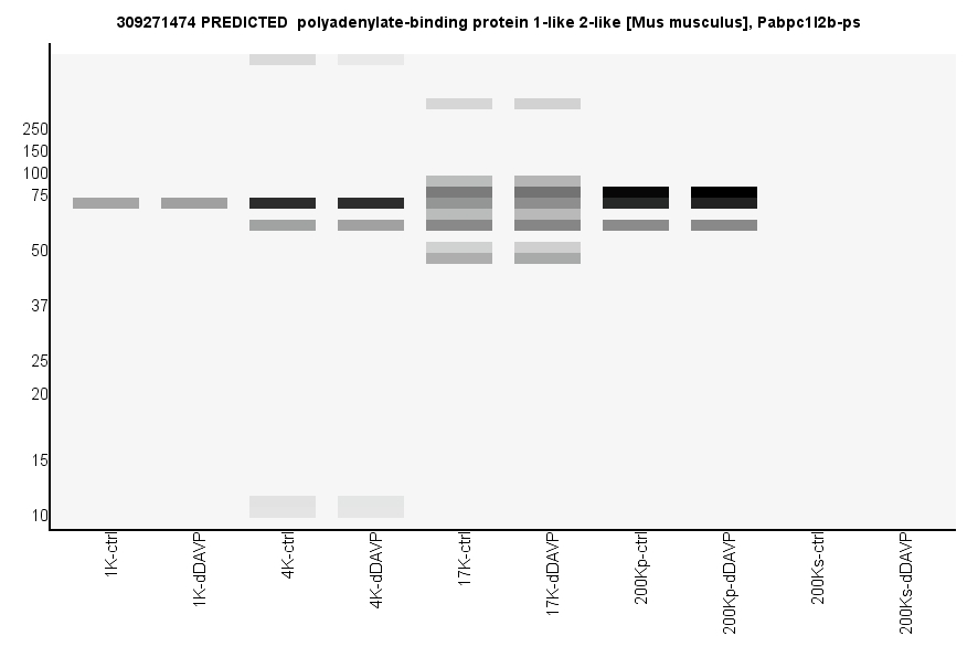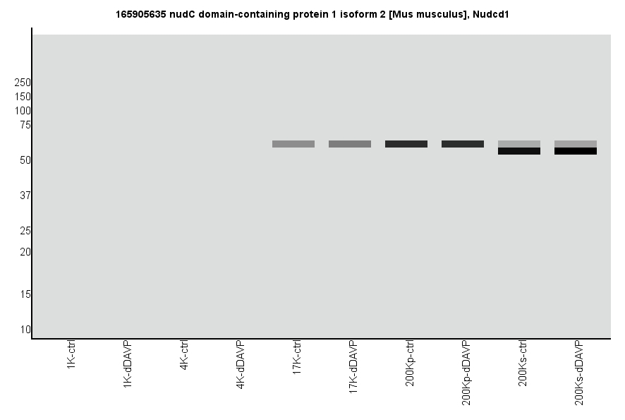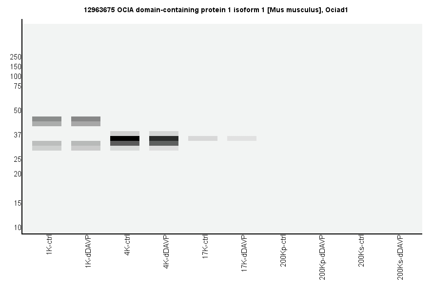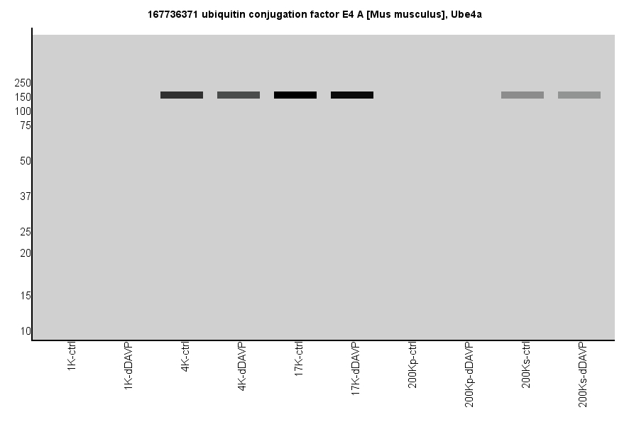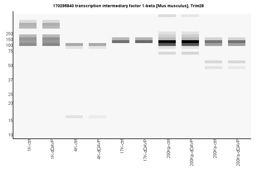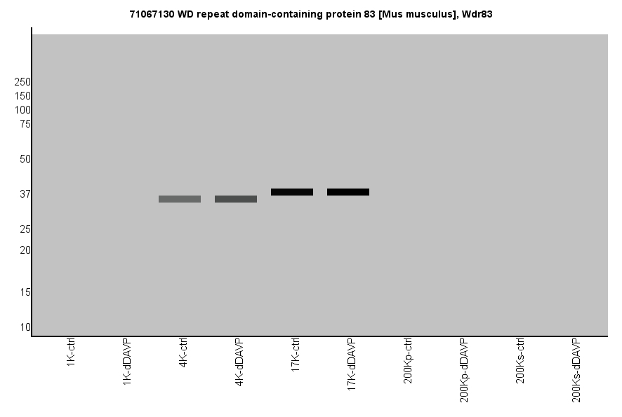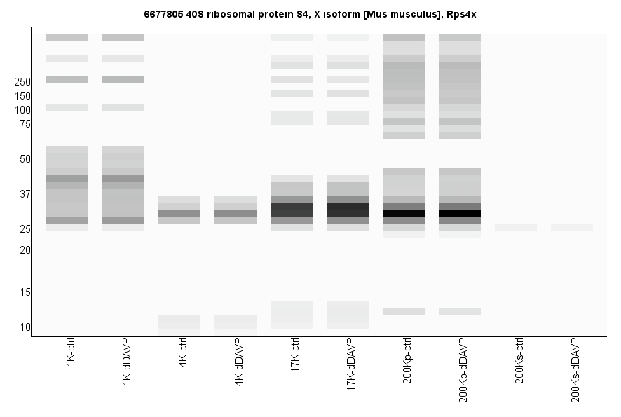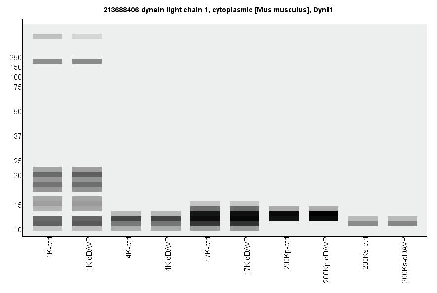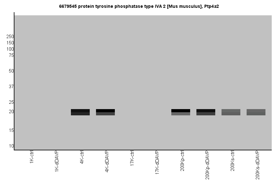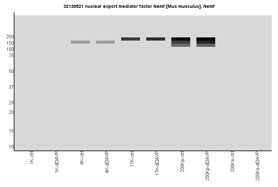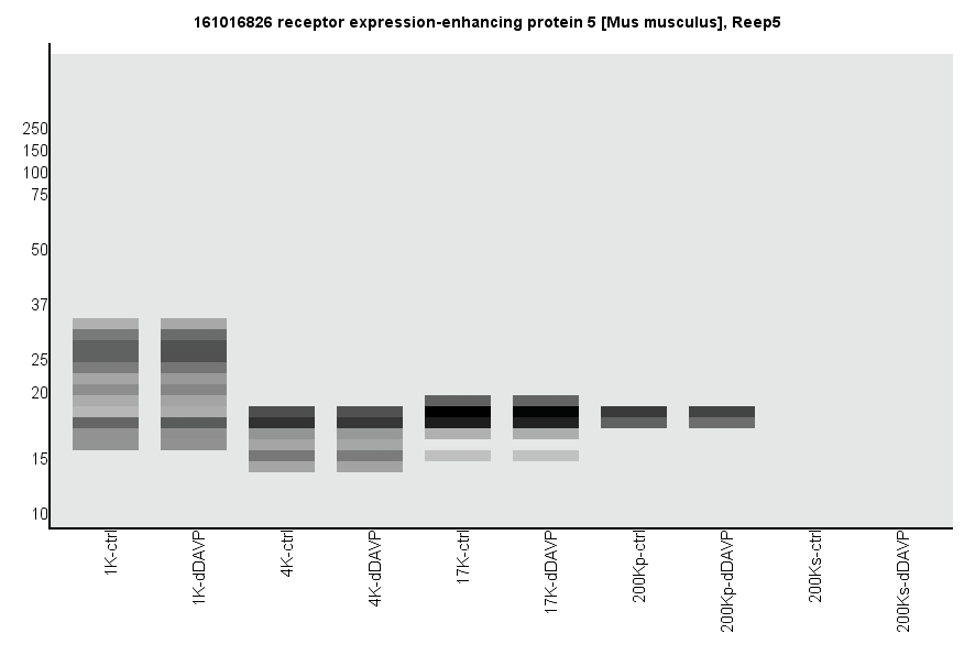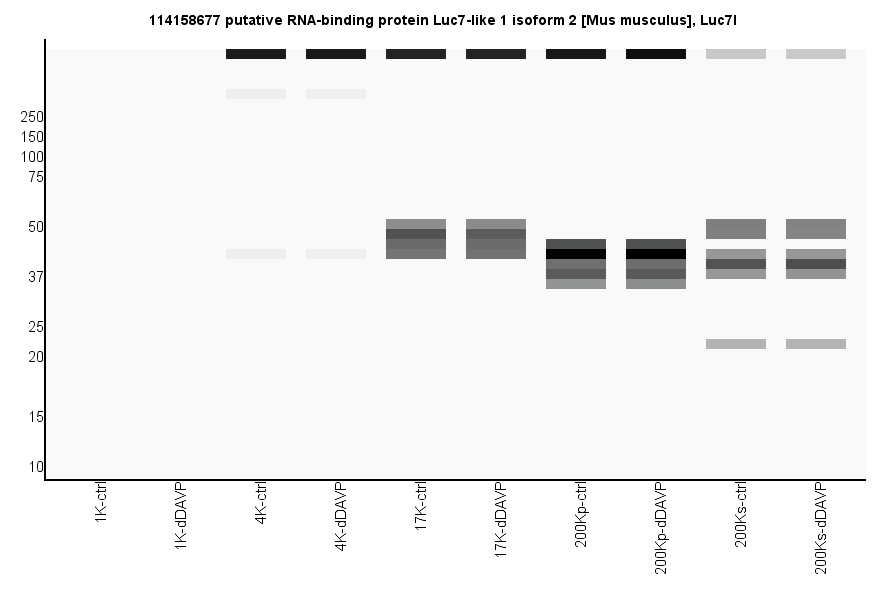 The virtual western blot images show data normalized using a logarithmic conversion scale to map peptide intensities to gray-scale levels. Using this conversion method, low-abundance peptides are generally visible in the blot images. Switch back to the default linear conversion scale database page.