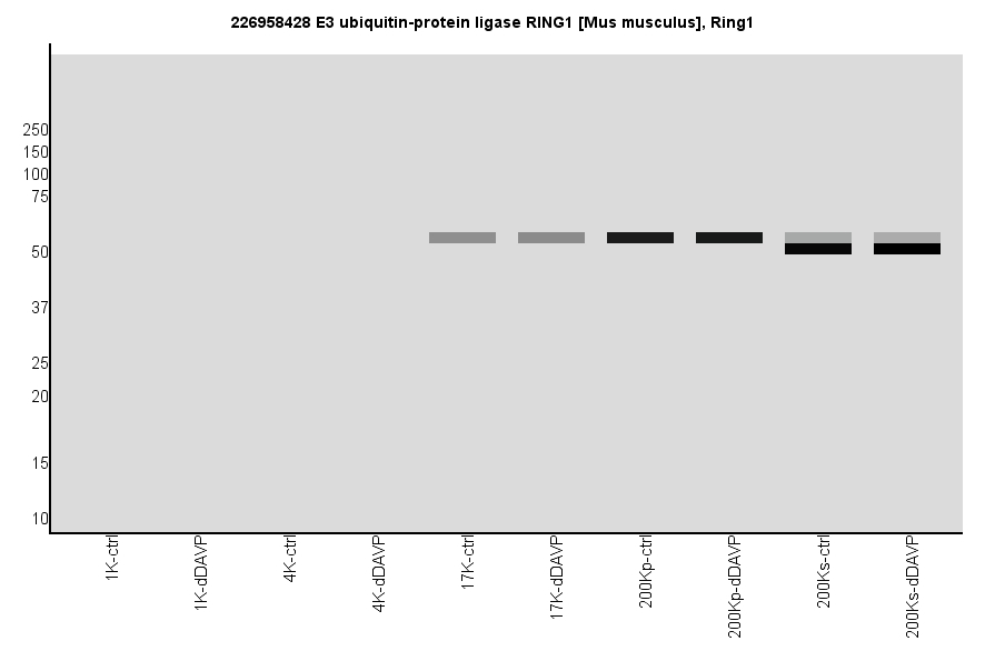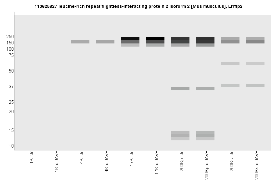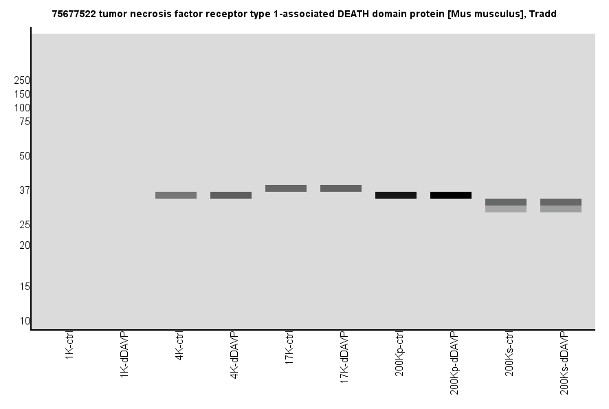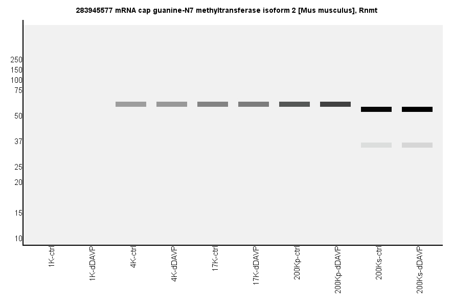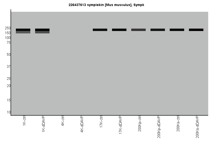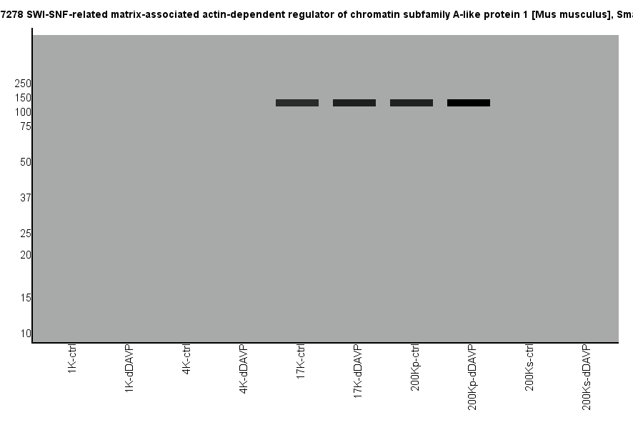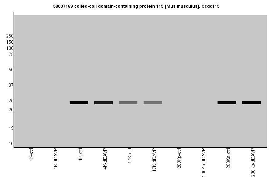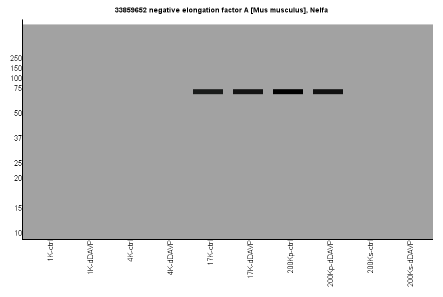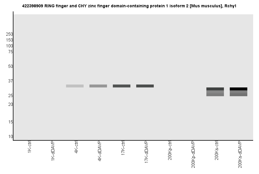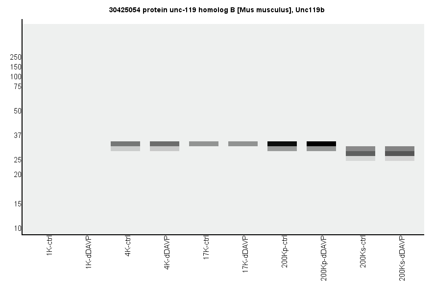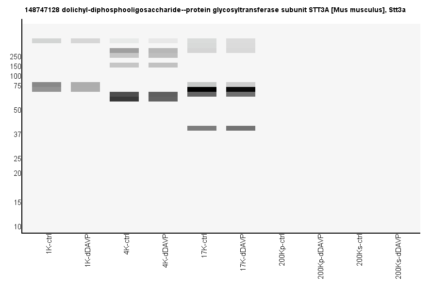 The virtual western blot images show data normalized using a logarithmic conversion scale to map peptide intensities to gray-scale levels. Using this conversion method, low-abundance peptides are generally visible in the blot images. Switch back to the default linear conversion scale database page.