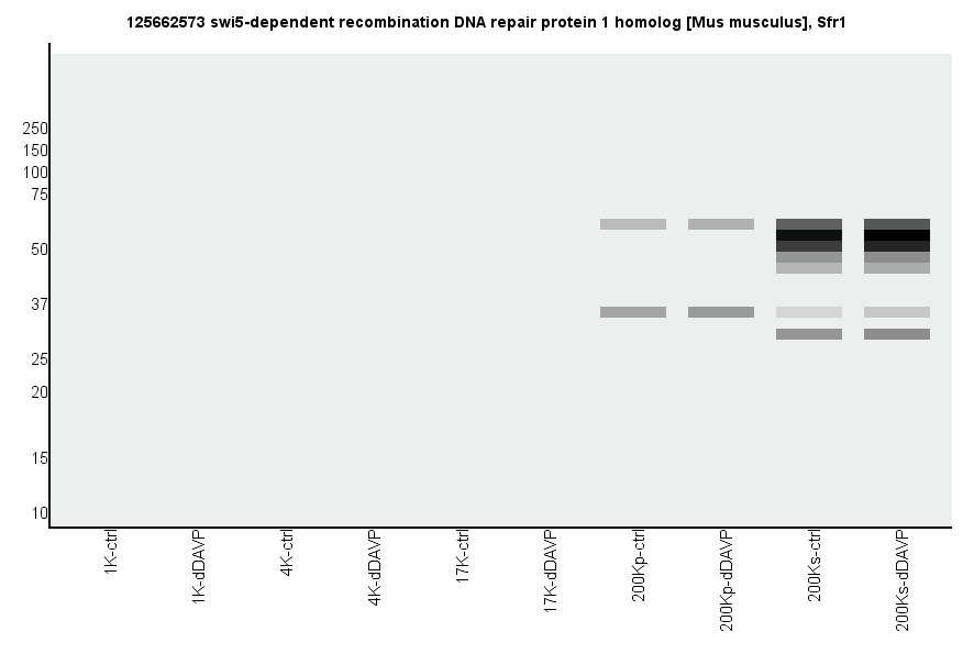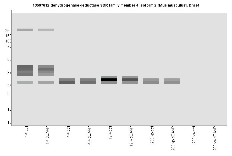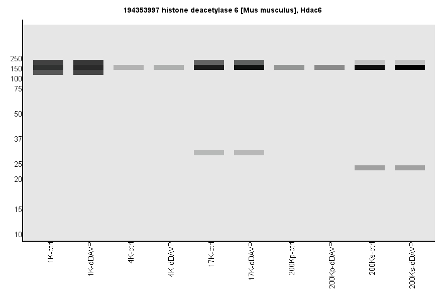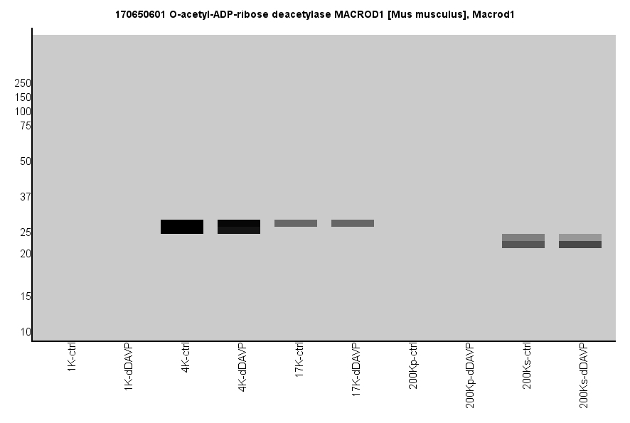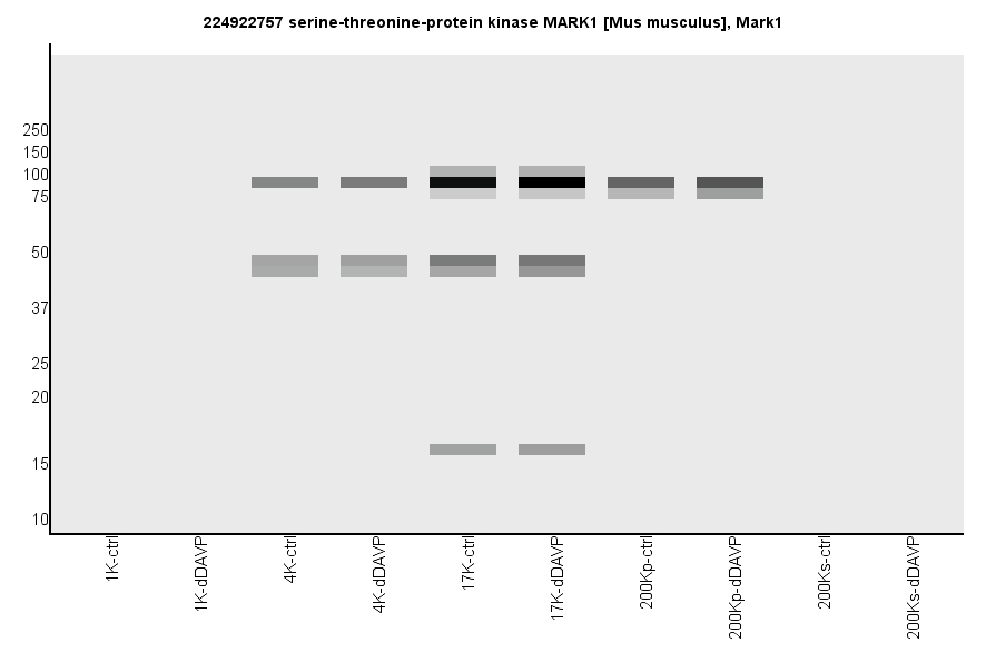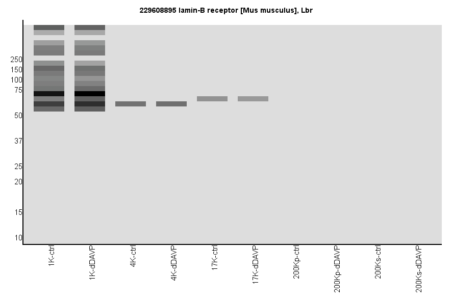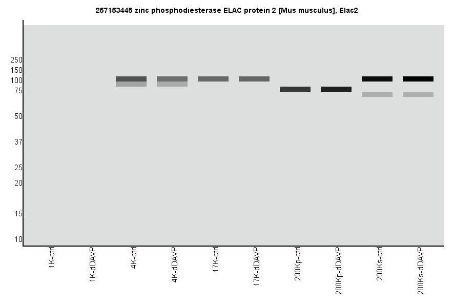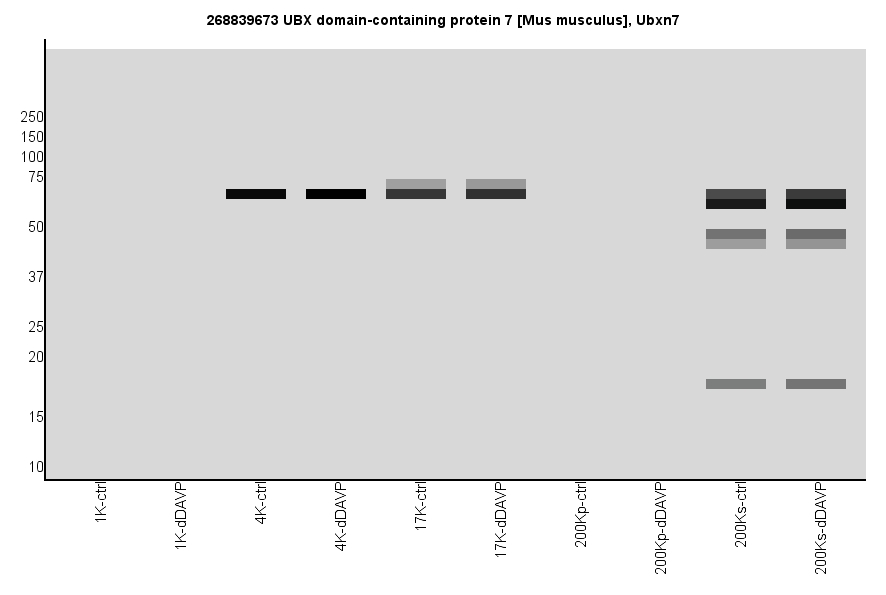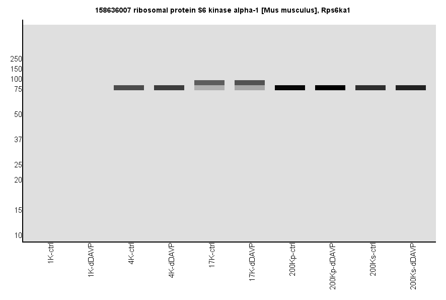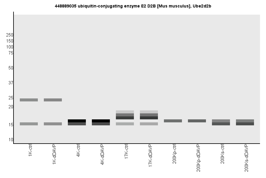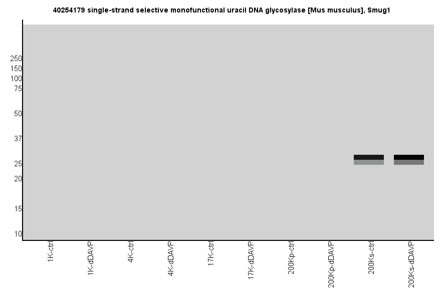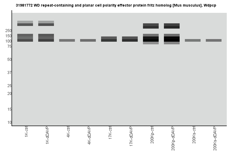 The virtual western blot images show data normalized using a logarithmic conversion scale to map peptide intensities to gray-scale levels. Using this conversion method, low-abundance peptides are generally visible in the blot images. Switch back to the default linear conversion scale database page.