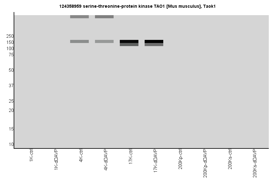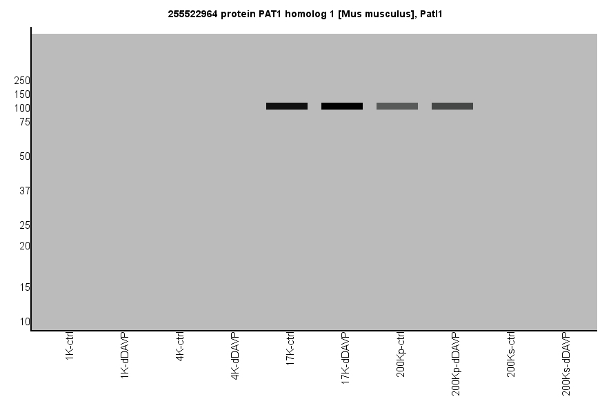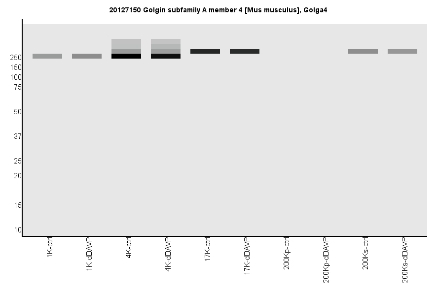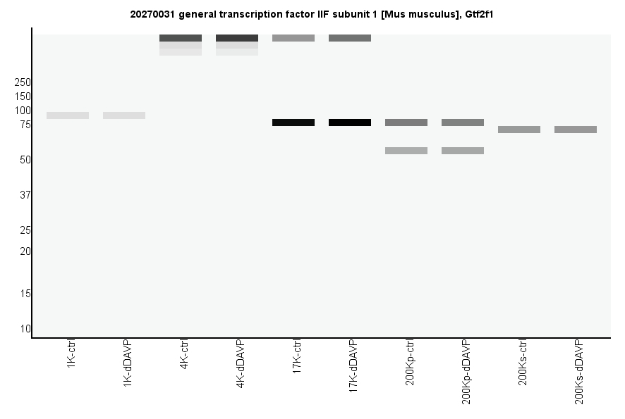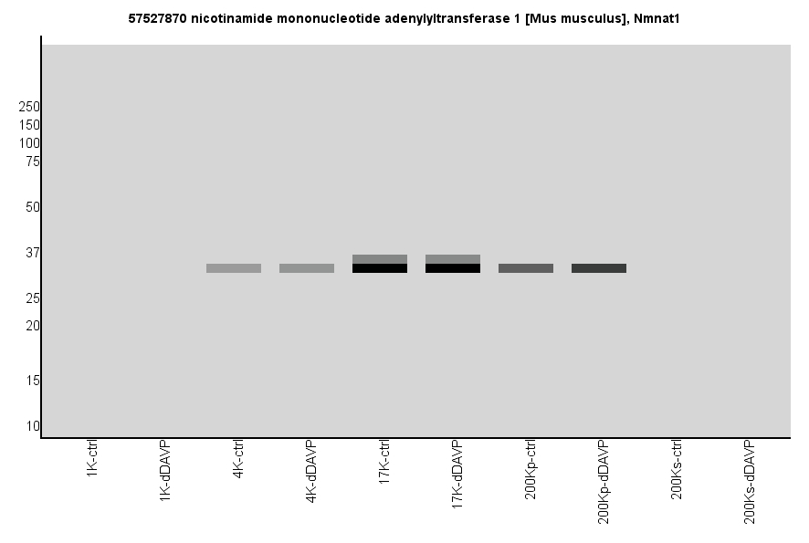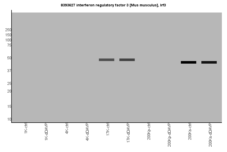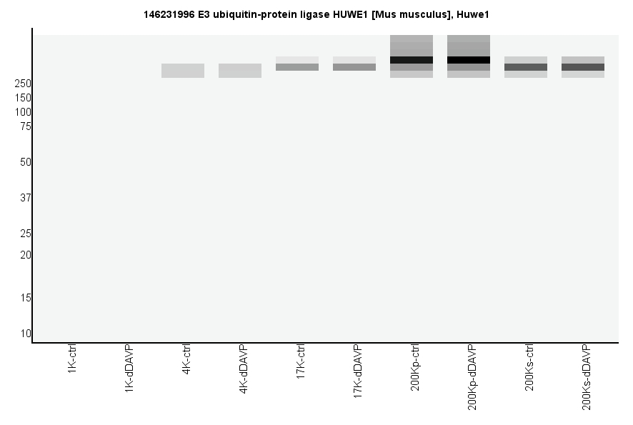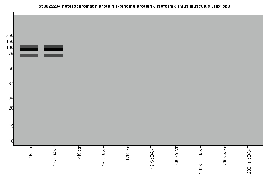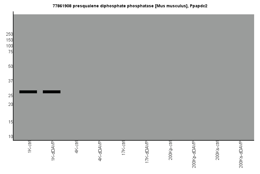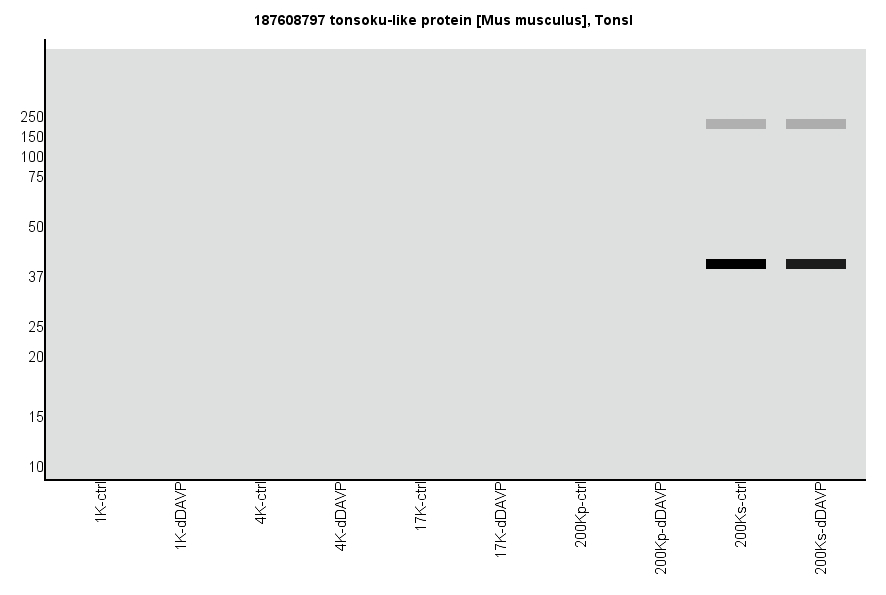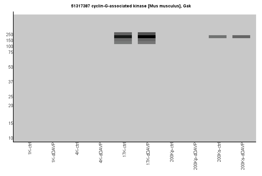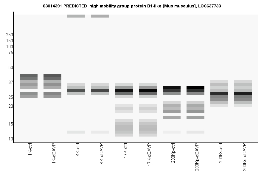 The virtual western blot images show data normalized using a logarithmic conversion scale to map peptide intensities to gray-scale levels. Using this conversion method, low-abundance peptides are generally visible in the blot images. Switch back to the default linear conversion scale database page.
