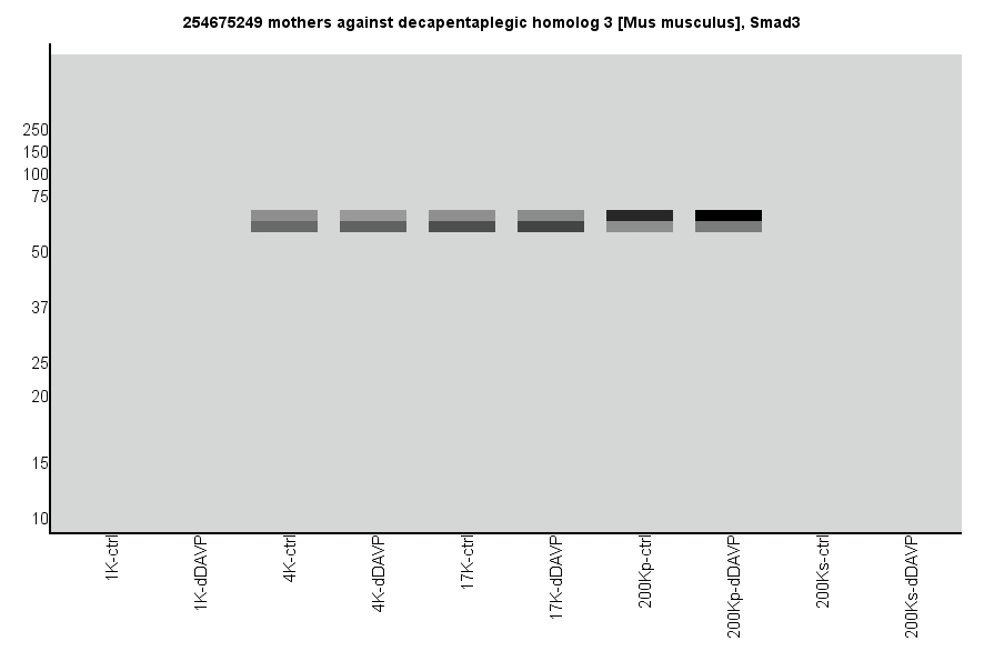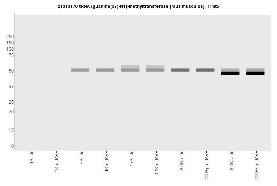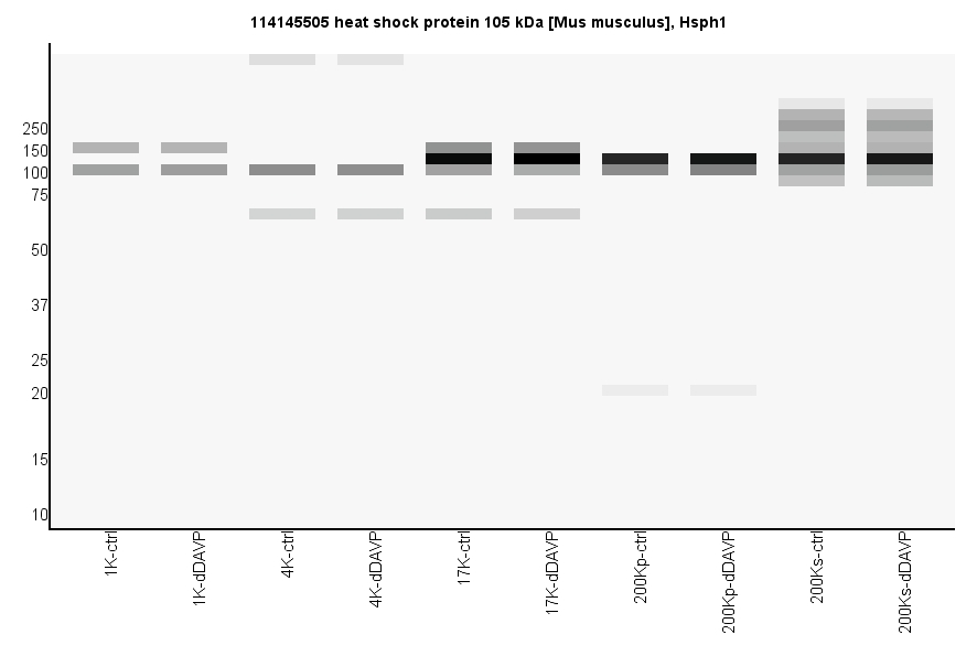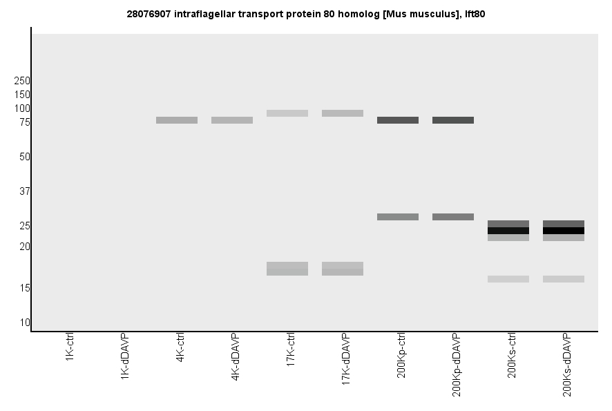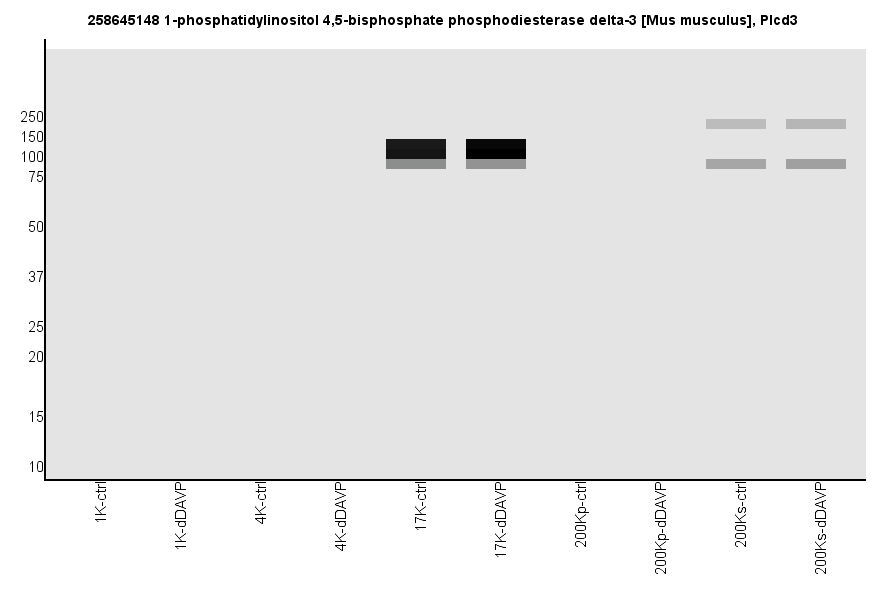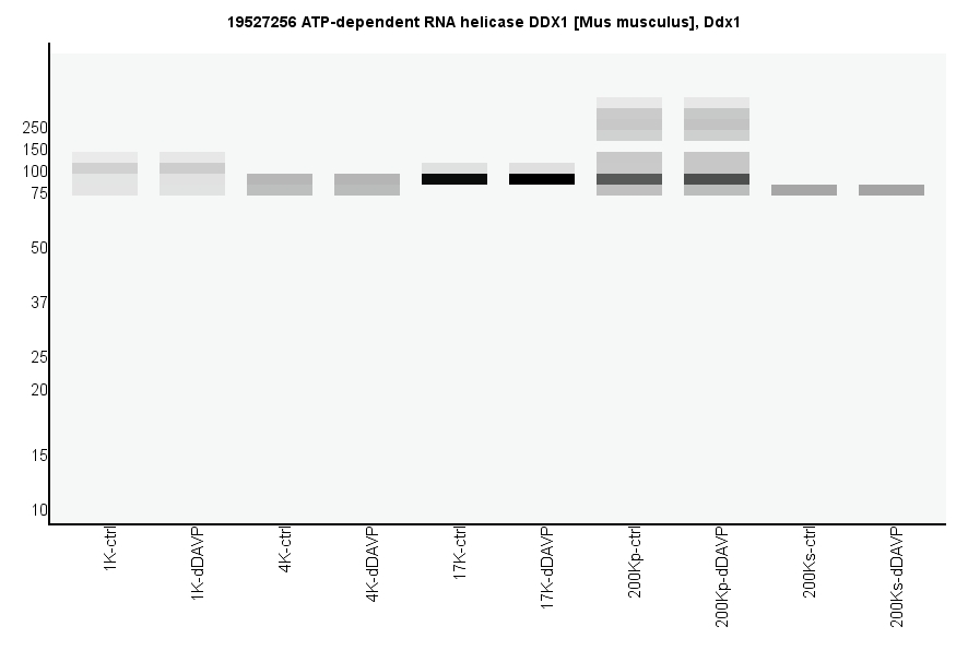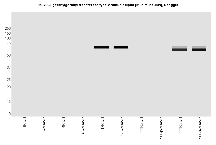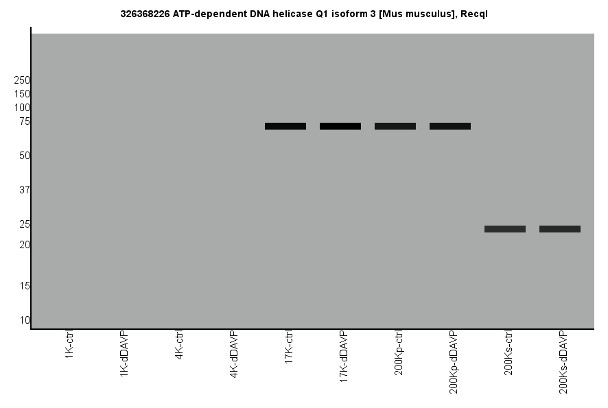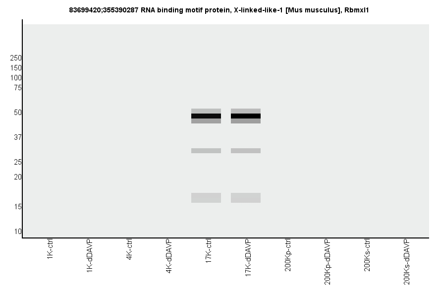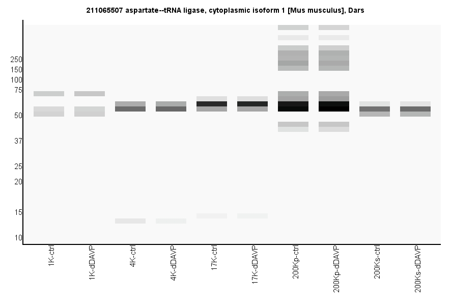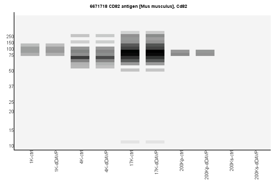 The virtual western blot images show data normalized using a logarithmic conversion scale to map peptide intensities to gray-scale levels. Using this conversion method, low-abundance peptides are generally visible in the blot images. Switch back to the default linear conversion scale database page.