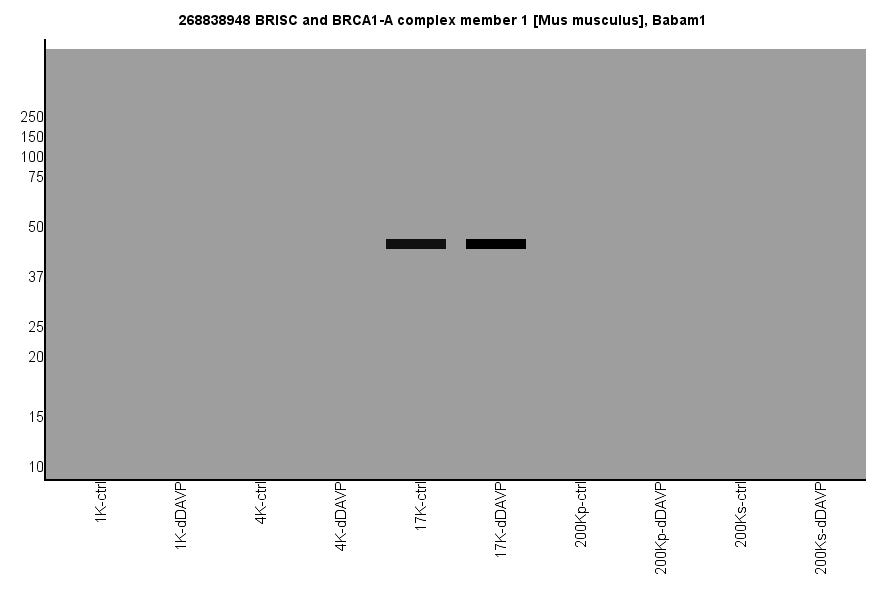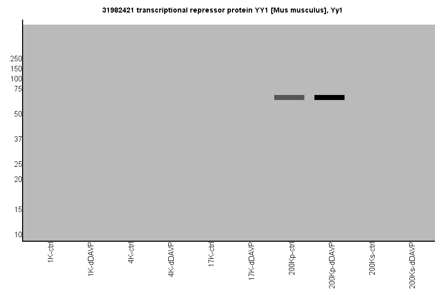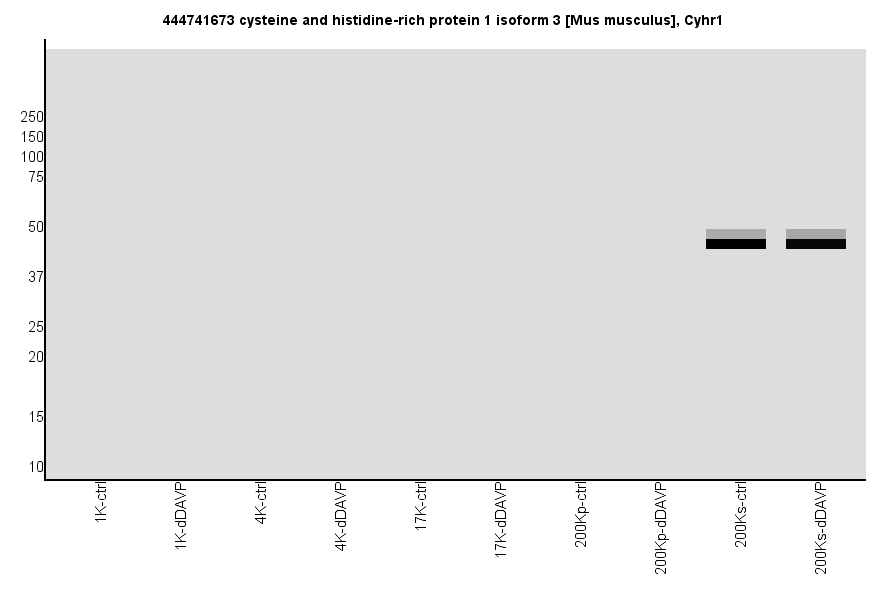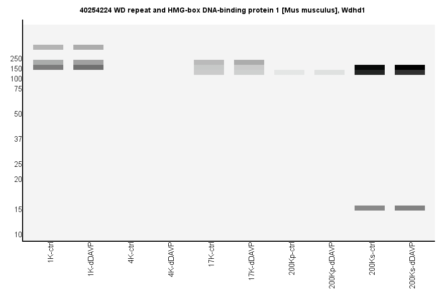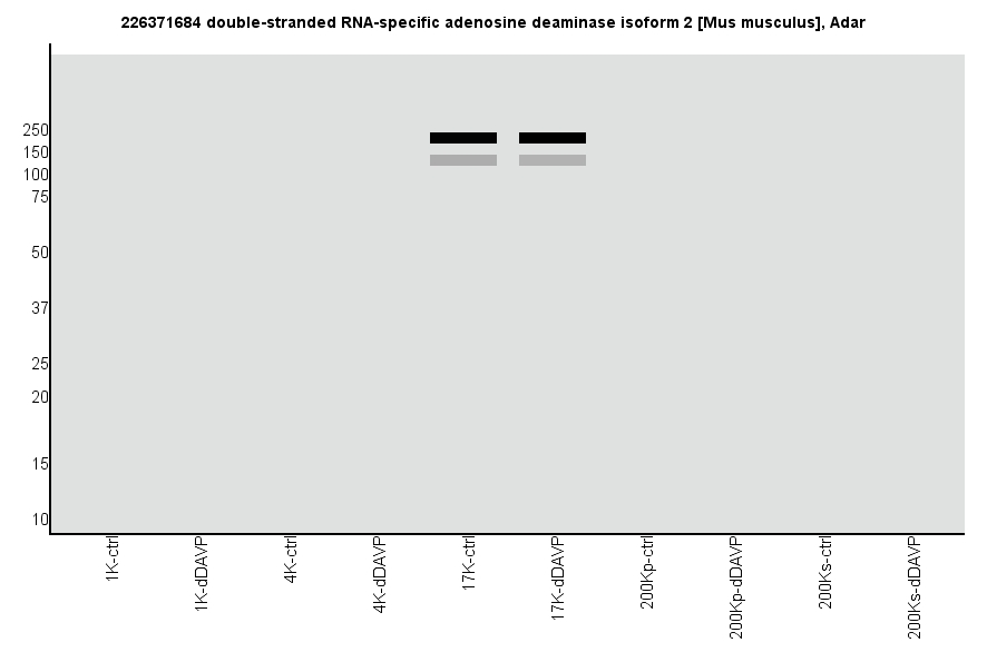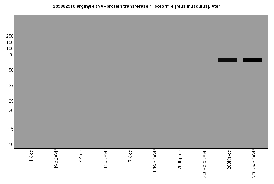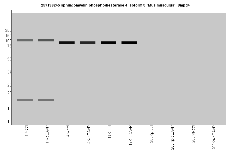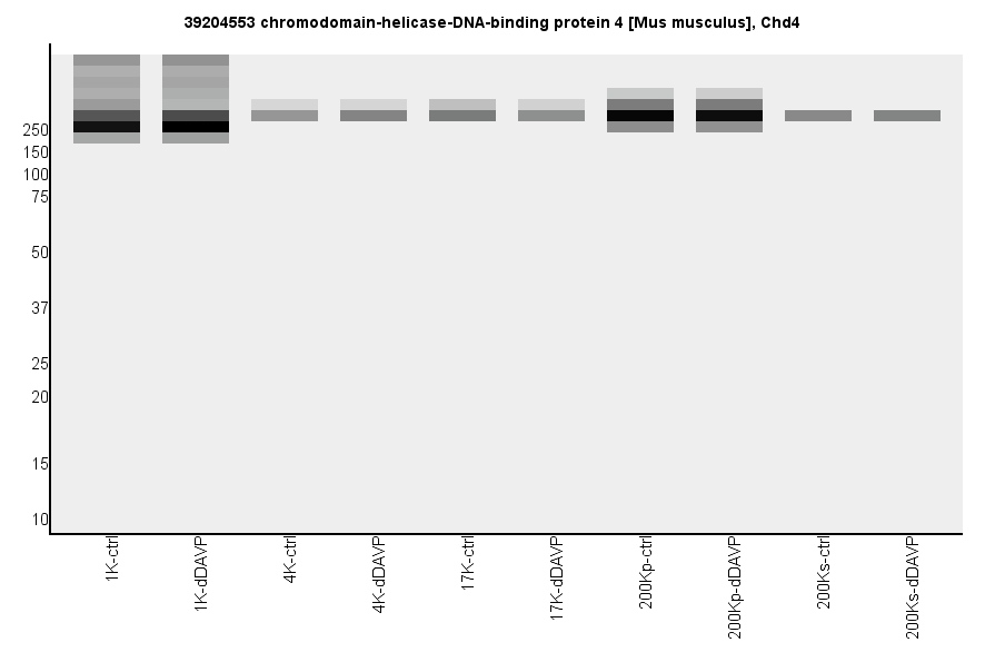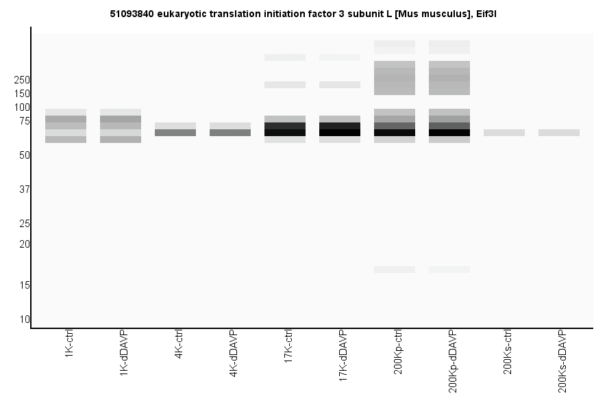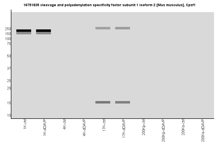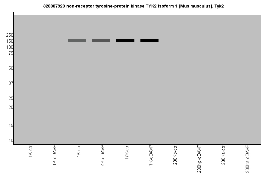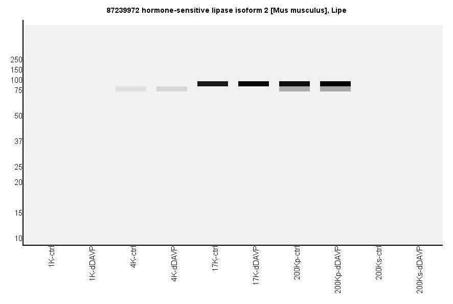 The virtual western blot images show data normalized using a logarithmic conversion scale to map peptide intensities to gray-scale levels. Using this conversion method, low-abundance peptides are generally visible in the blot images. Switch back to the default linear conversion scale database page.