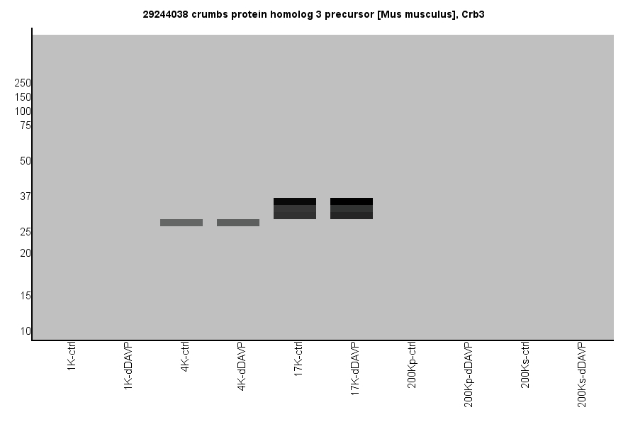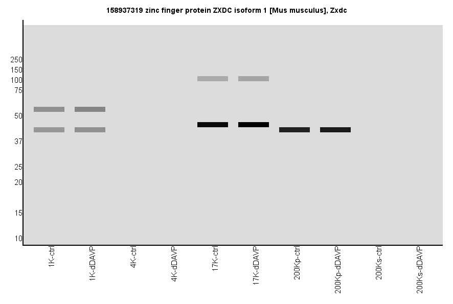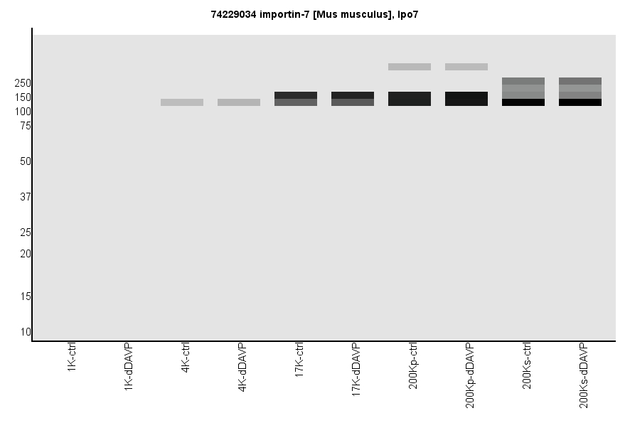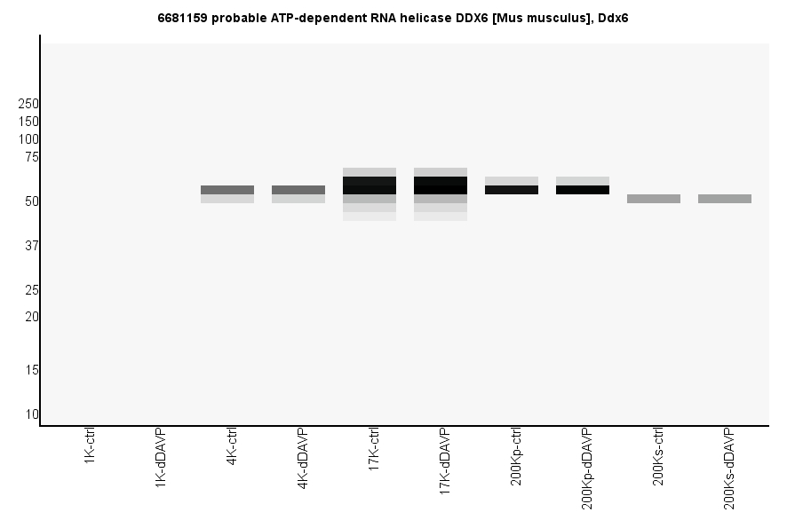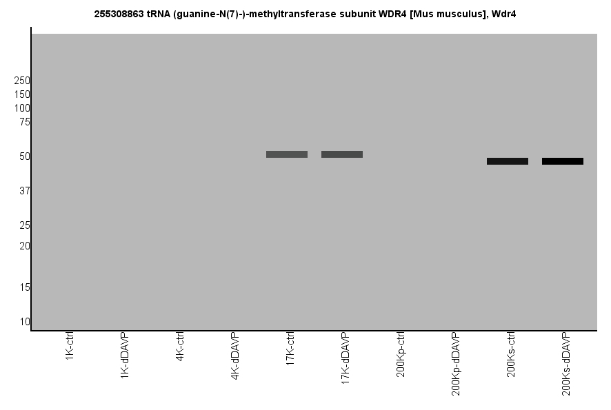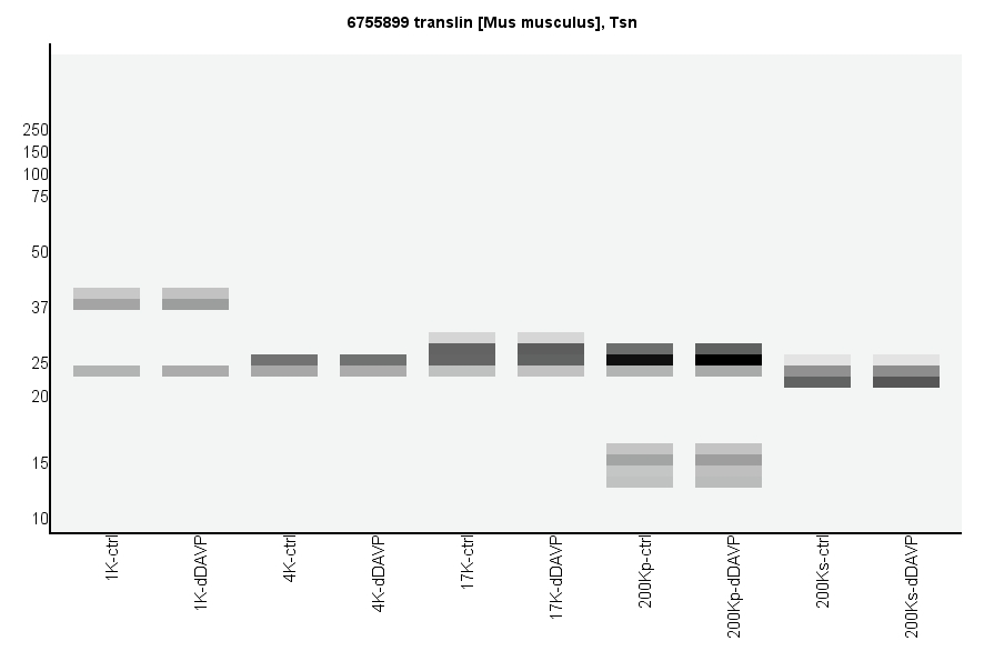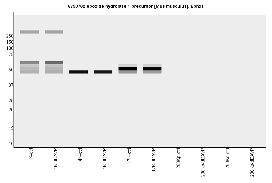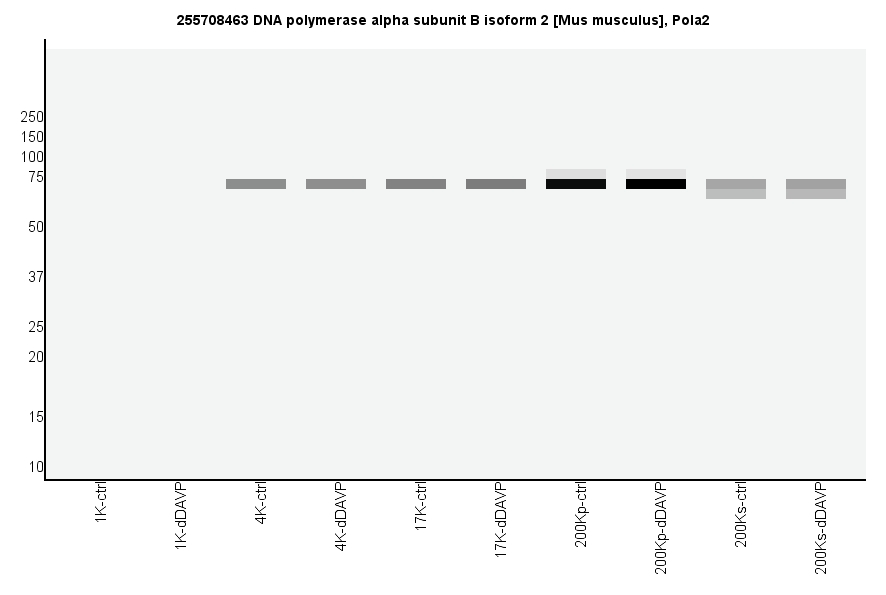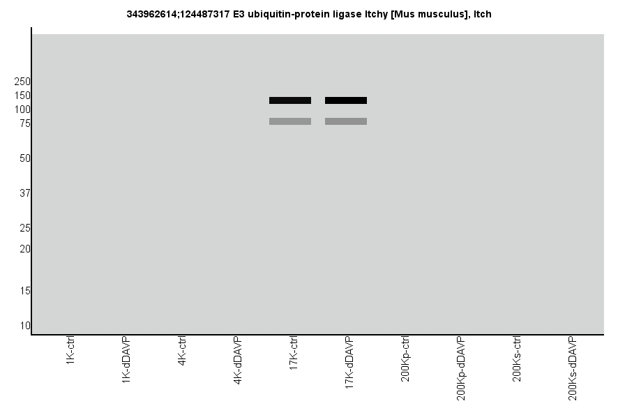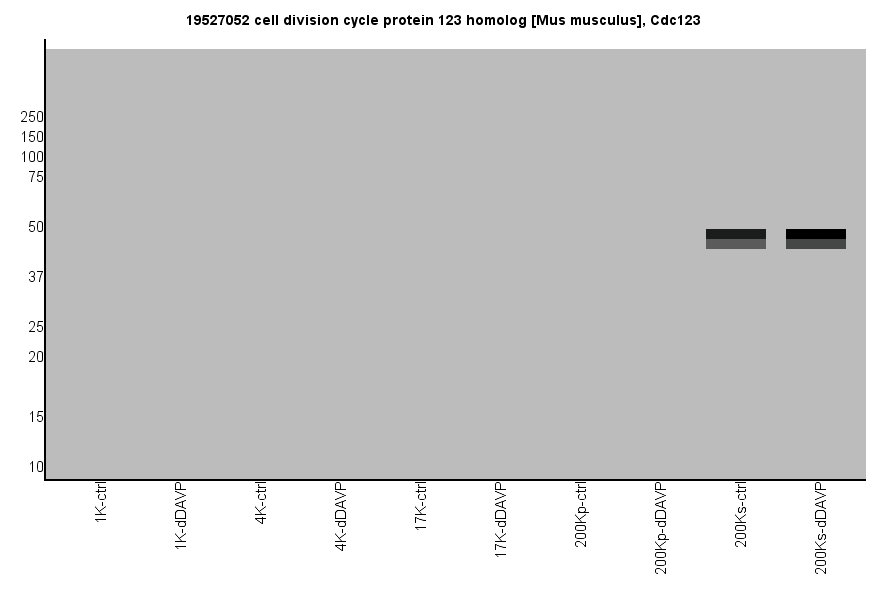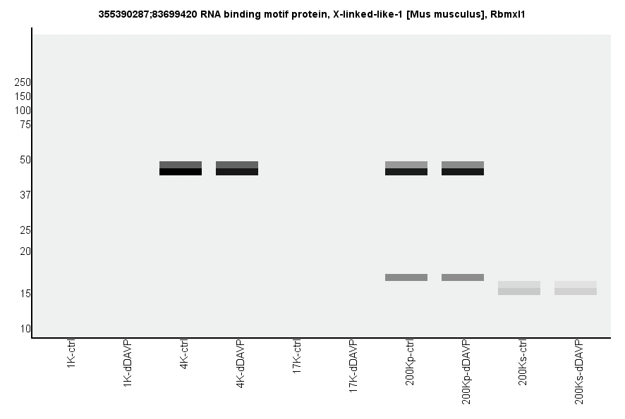 The virtual western blot images show data normalized using a logarithmic conversion scale to map peptide intensities to gray-scale levels. Using this conversion method, low-abundance peptides are generally visible in the blot images. Switch back to the default linear conversion scale database page.