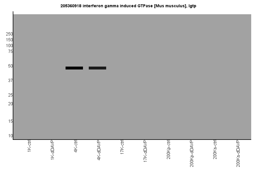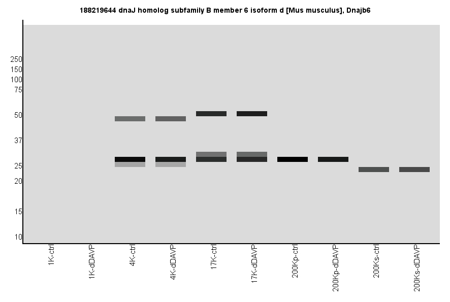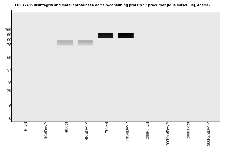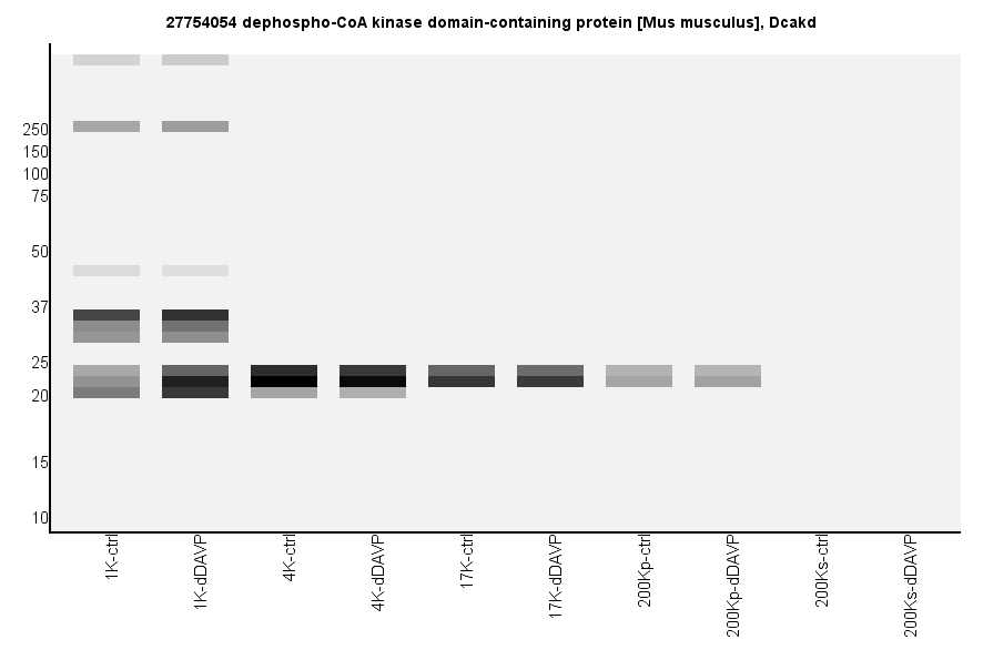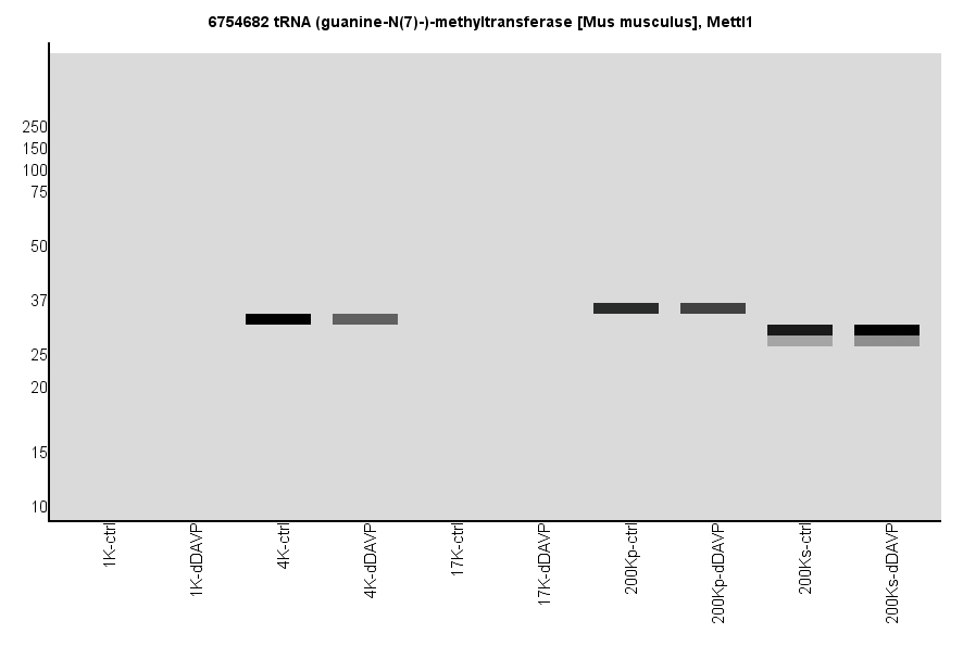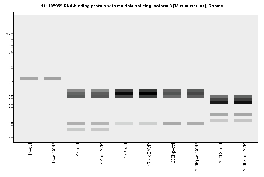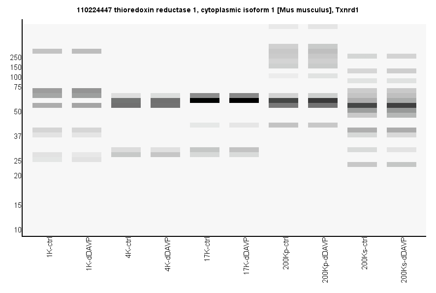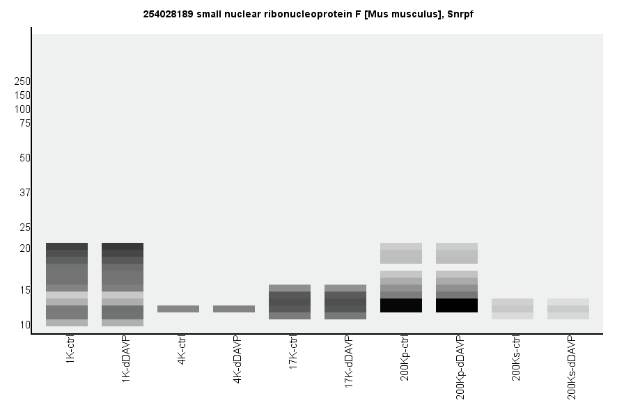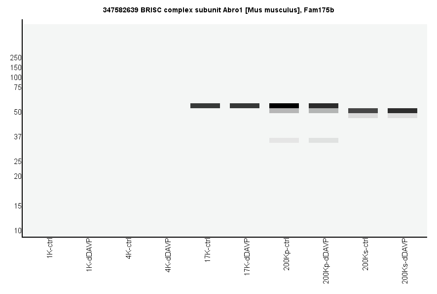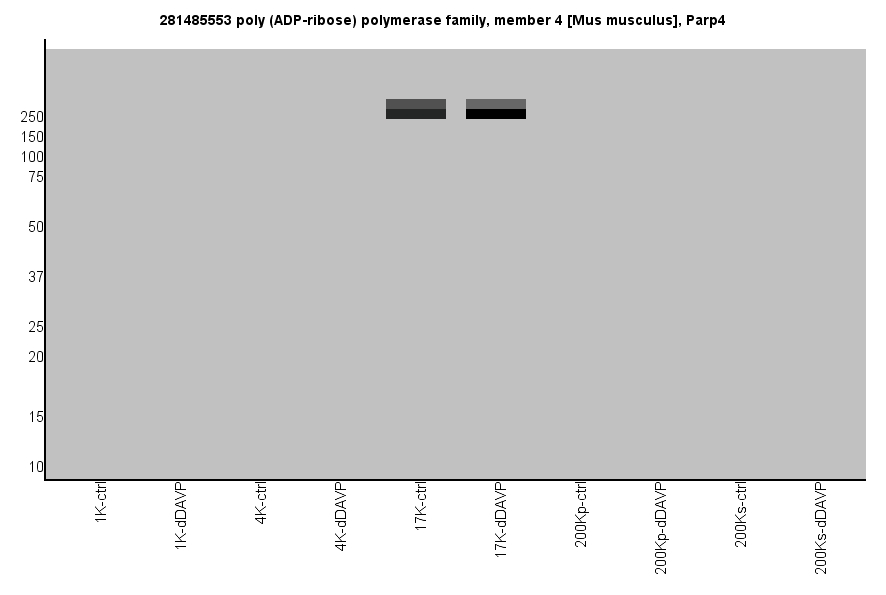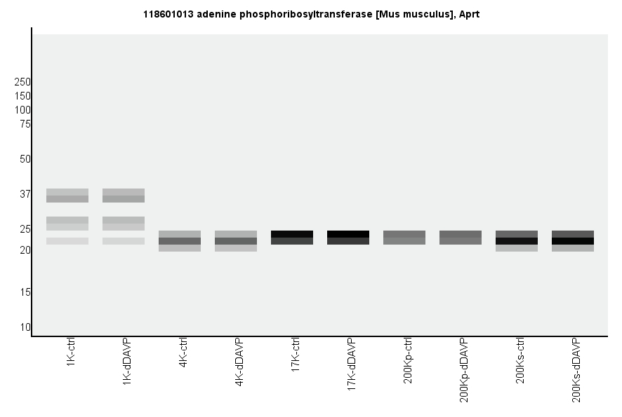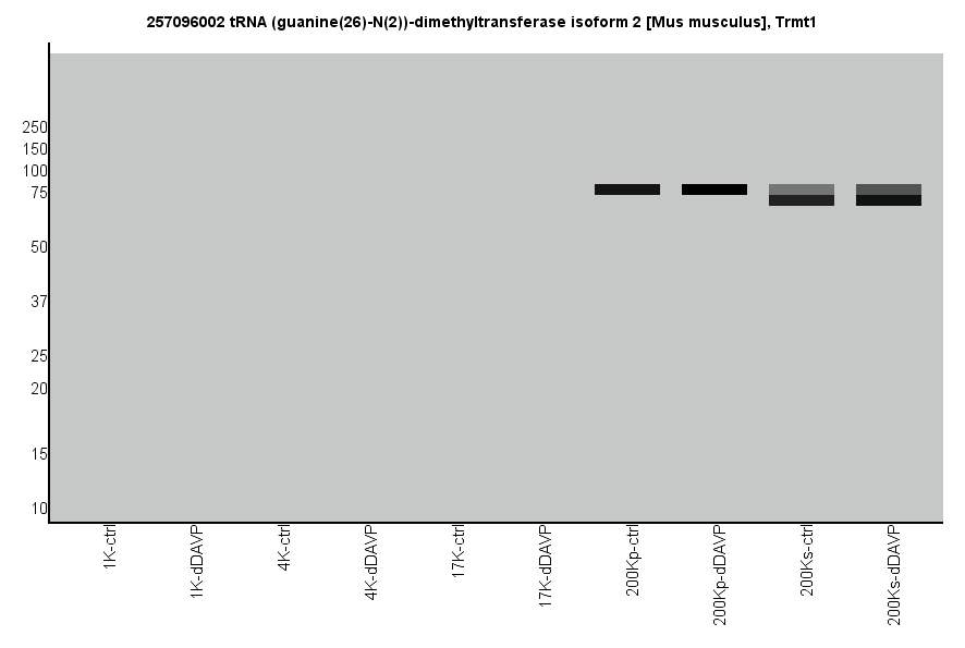 The virtual western blot images show data normalized using a logarithmic conversion scale to map peptide intensities to gray-scale levels. Using this conversion method, low-abundance peptides are generally visible in the blot images. Switch back to the default linear conversion scale database page.
