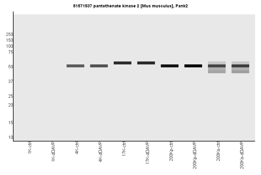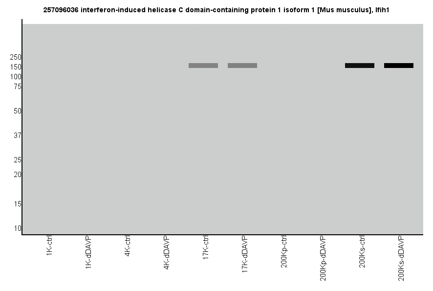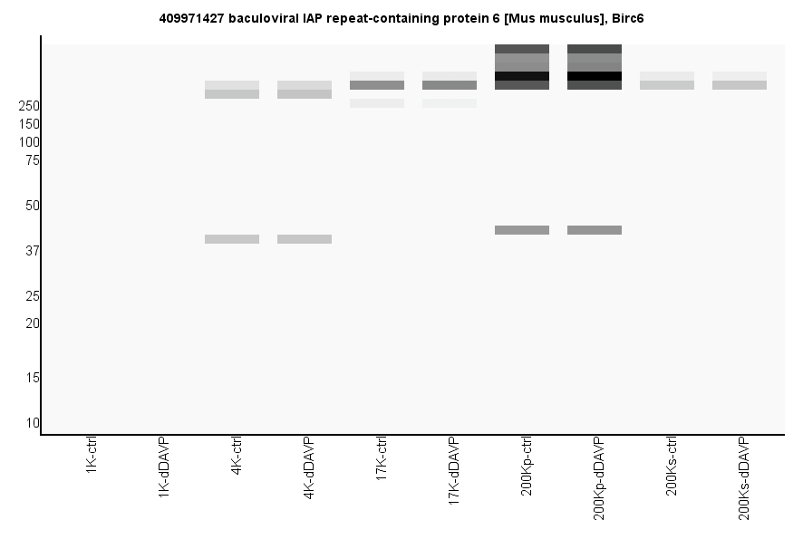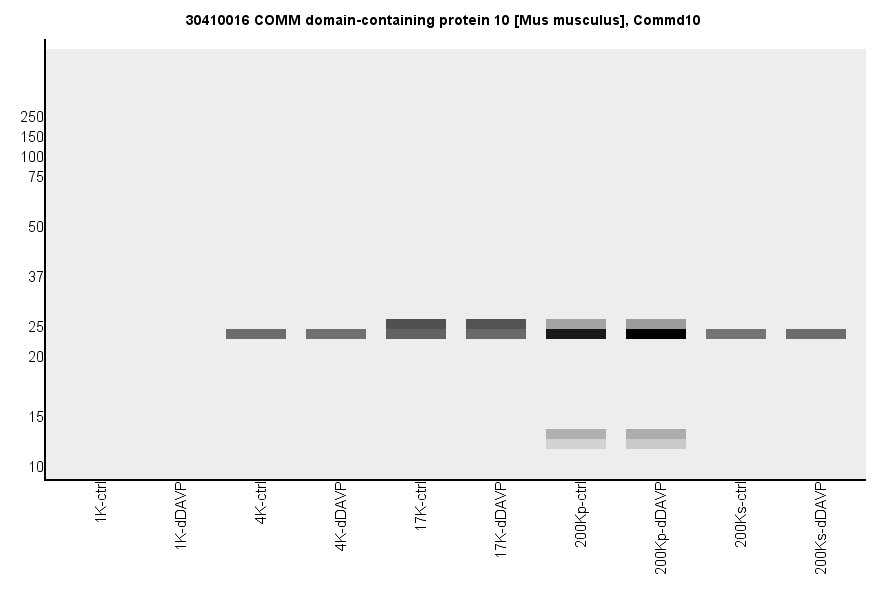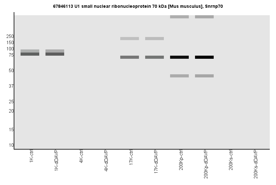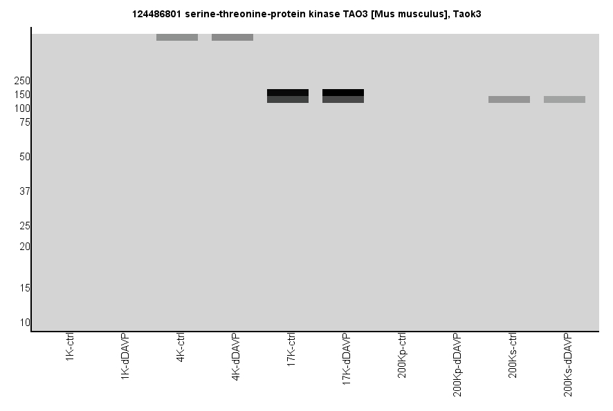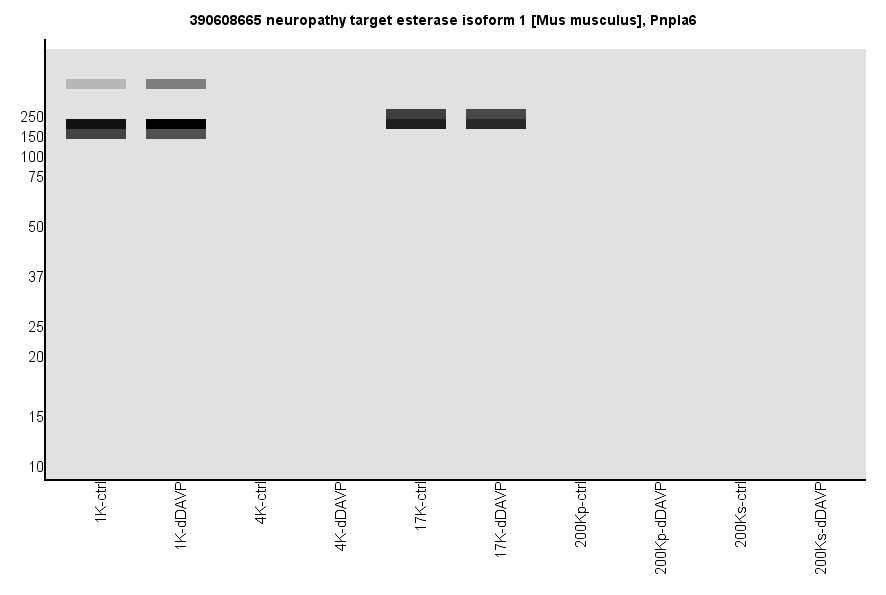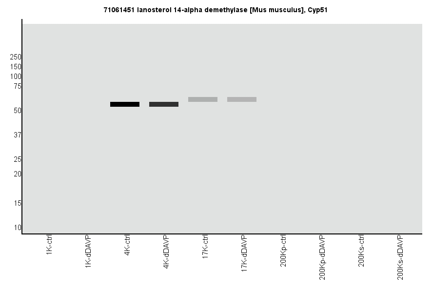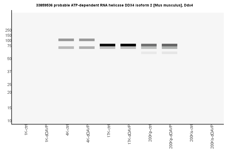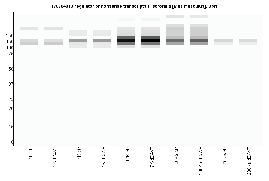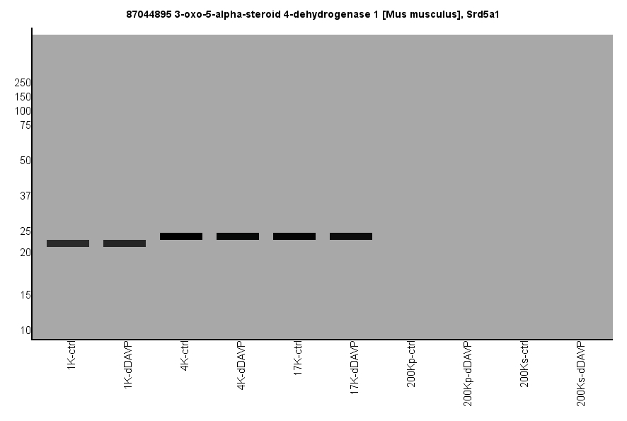 The virtual western blot images show data normalized using a logarithmic conversion scale to map peptide intensities to gray-scale levels. Using this conversion method, low-abundance peptides are generally visible in the blot images. Switch back to the default linear conversion scale database page.