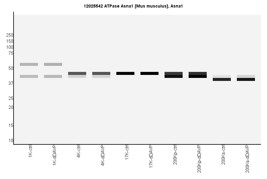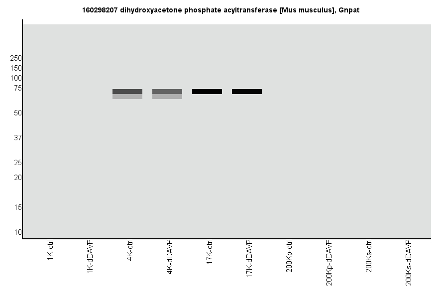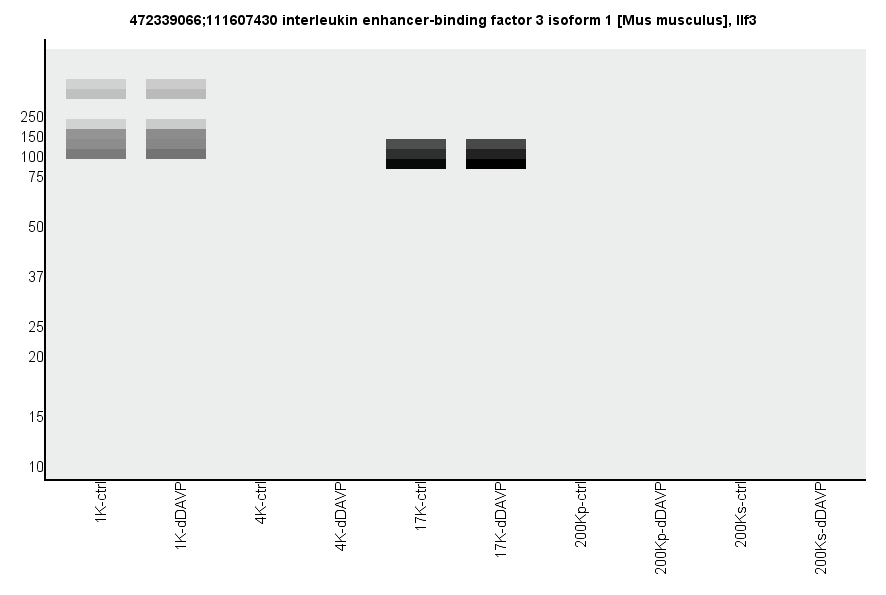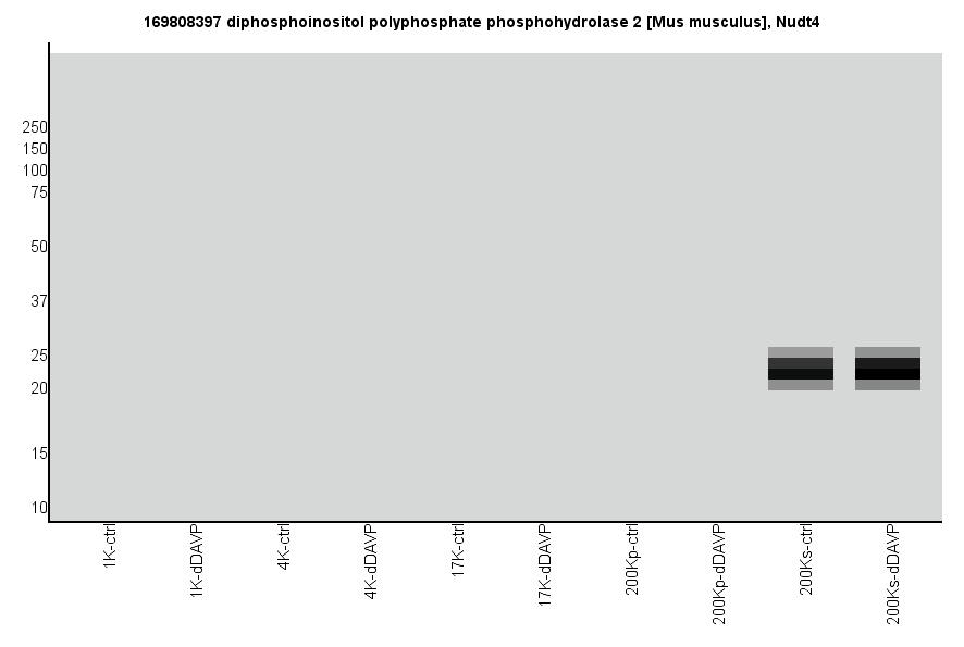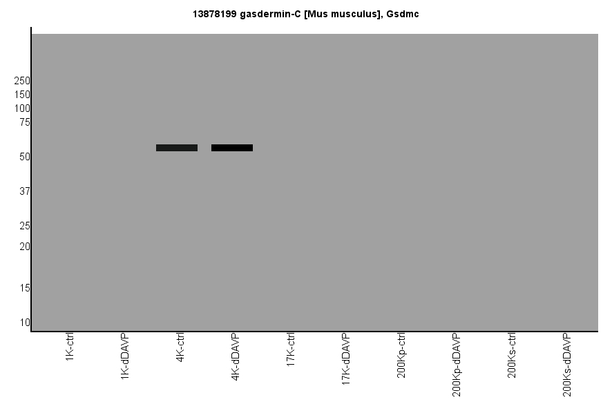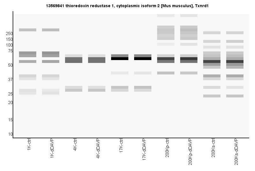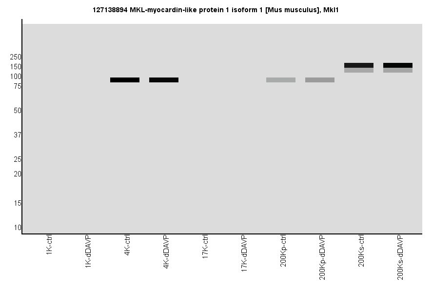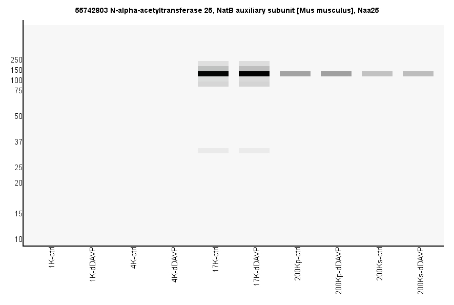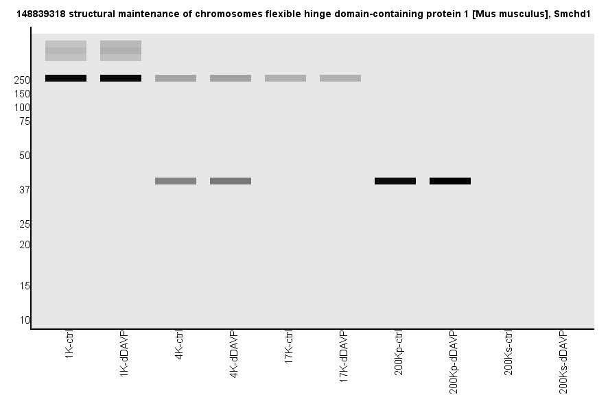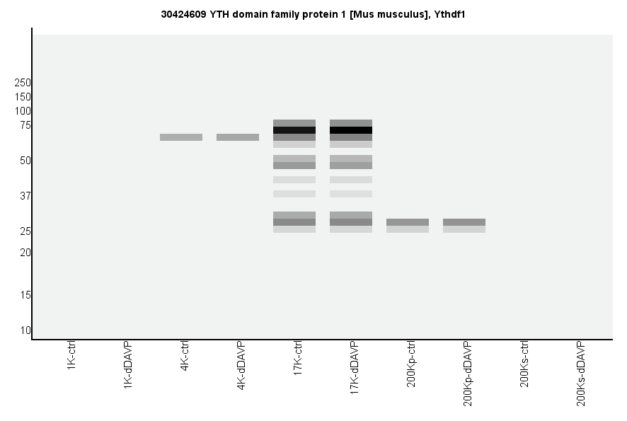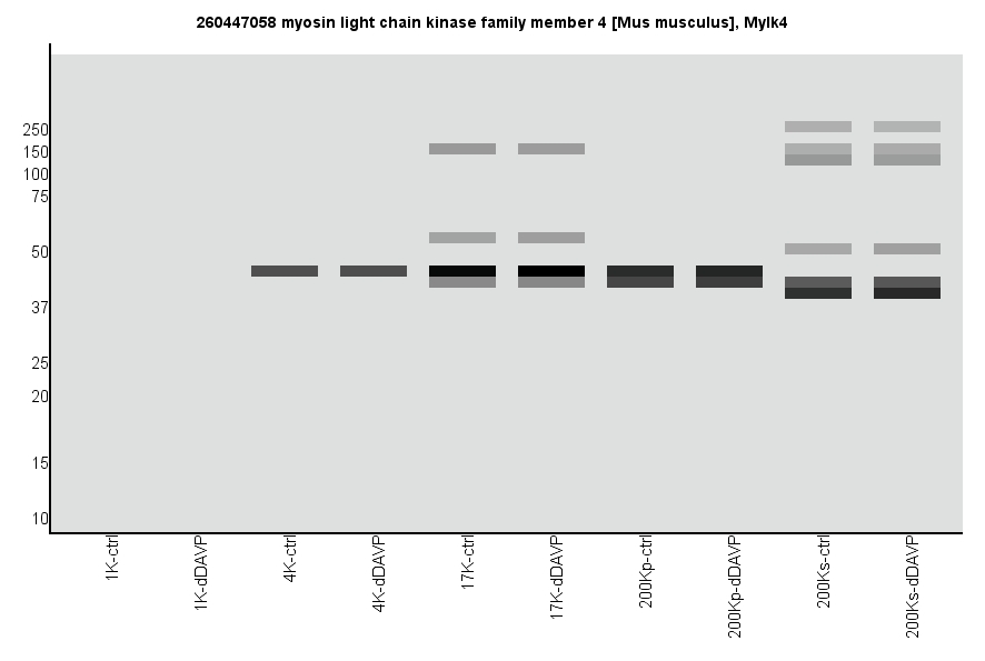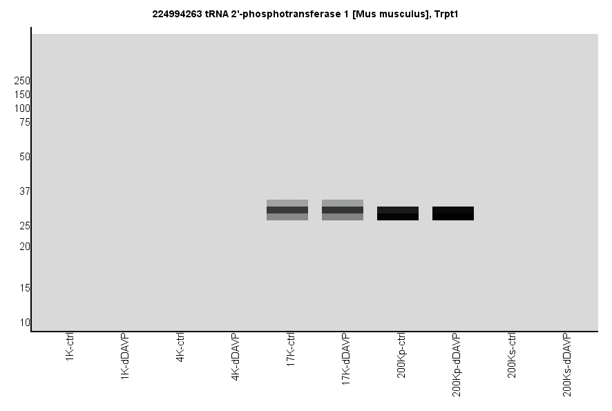 The virtual western blot images show data normalized using a logarithmic conversion scale to map peptide intensities to gray-scale levels. Using this conversion method, low-abundance peptides are generally visible in the blot images. Switch back to the default linear conversion scale database page.