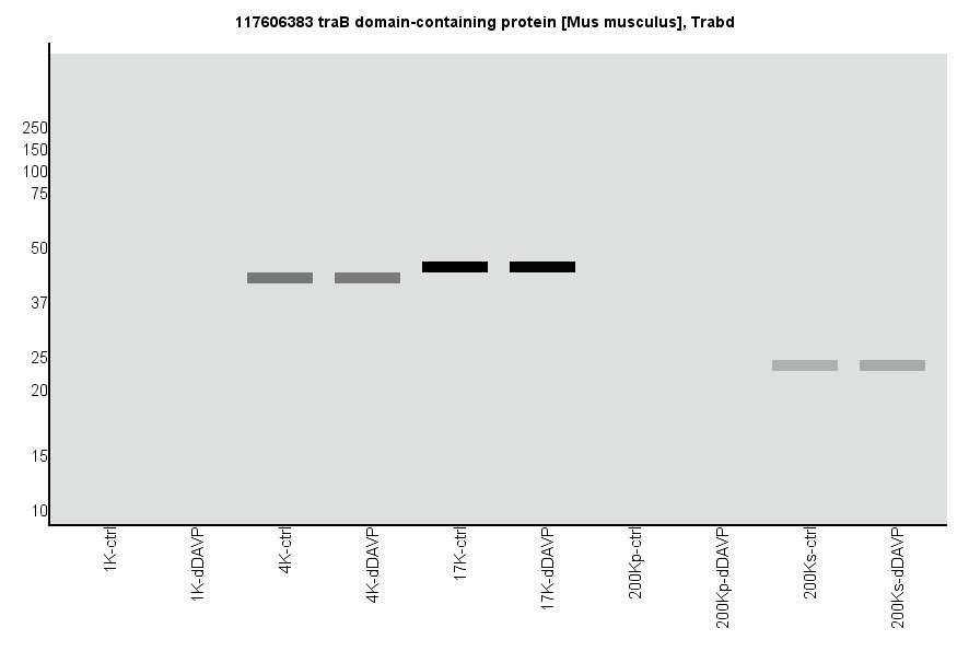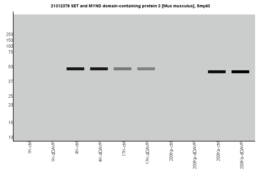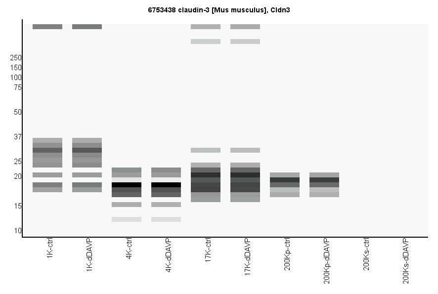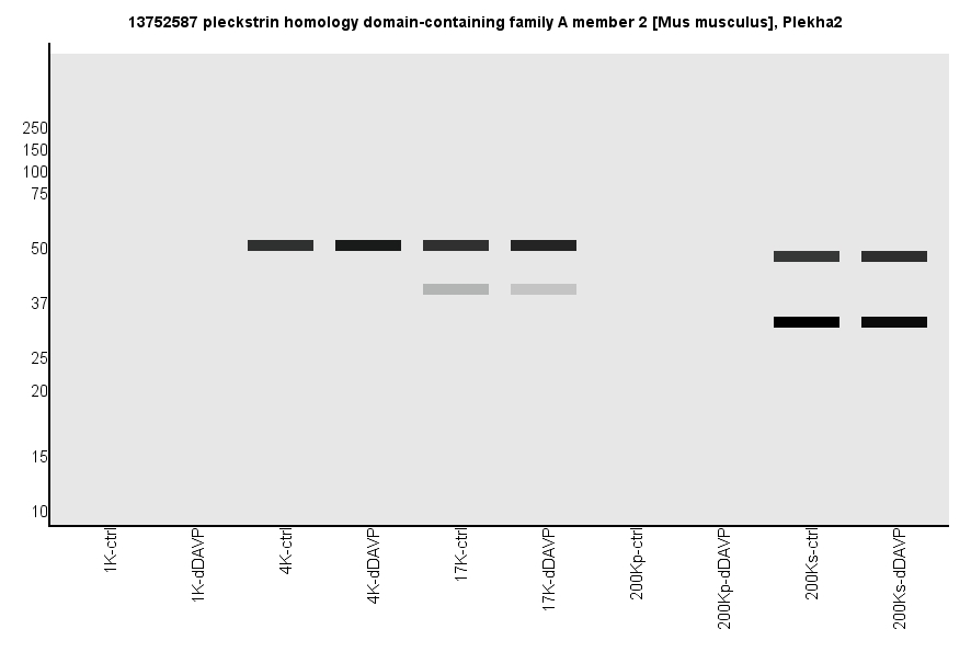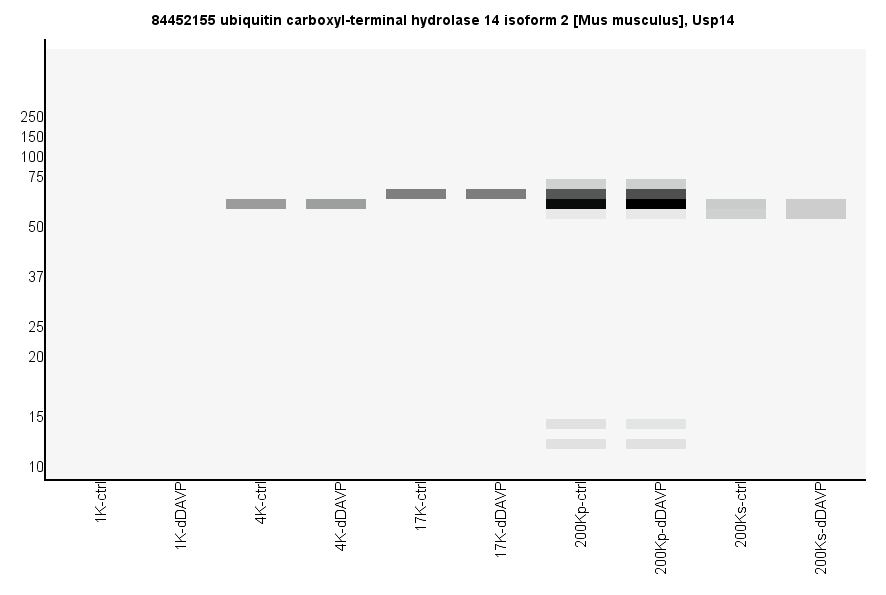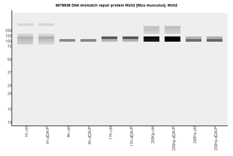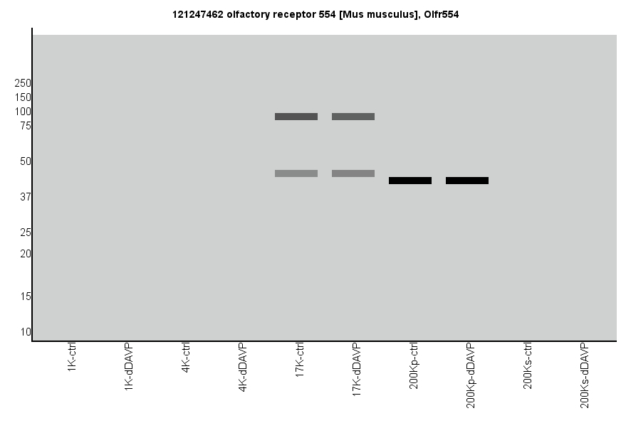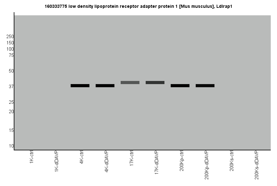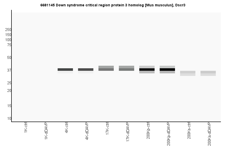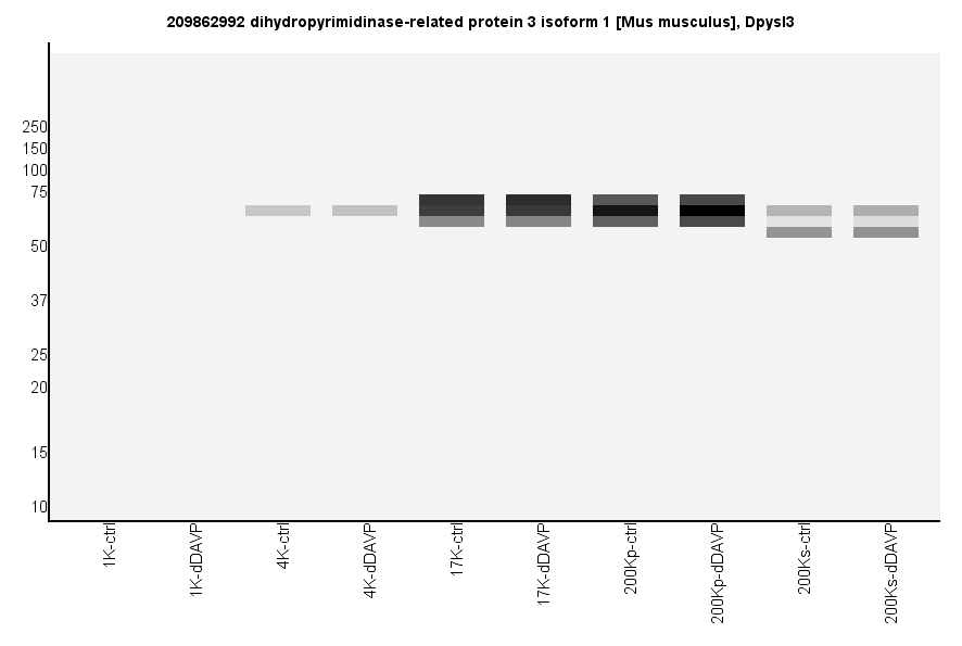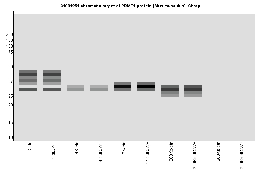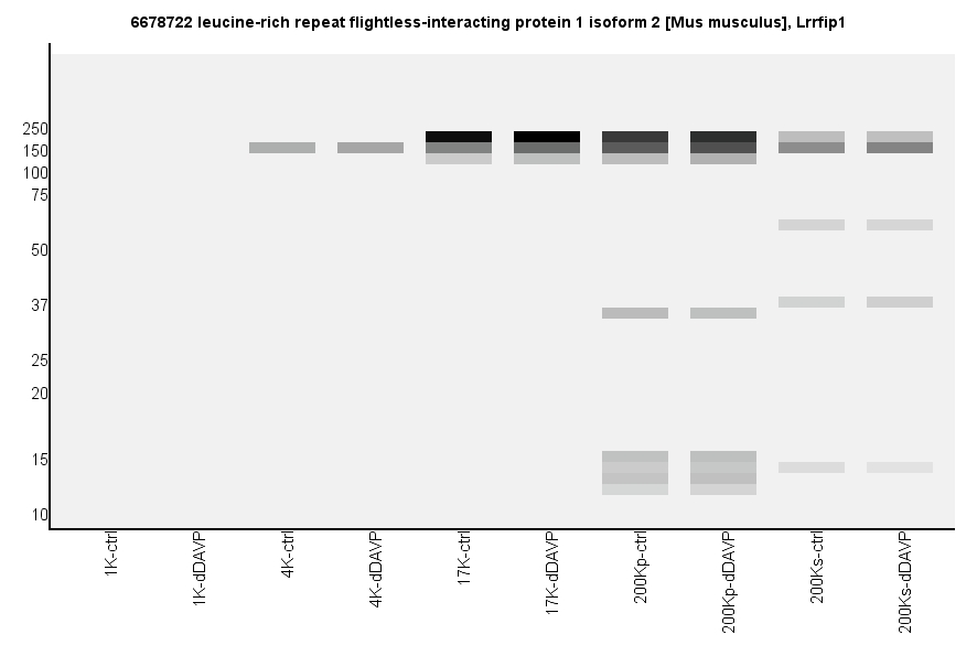 The virtual western blot images show data normalized using a logarithmic conversion scale to map peptide intensities to gray-scale levels. Using this conversion method, low-abundance peptides are generally visible in the blot images. Switch back to the default linear conversion scale database page.