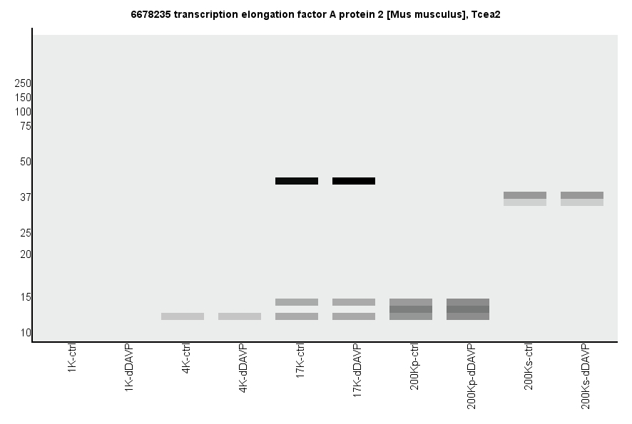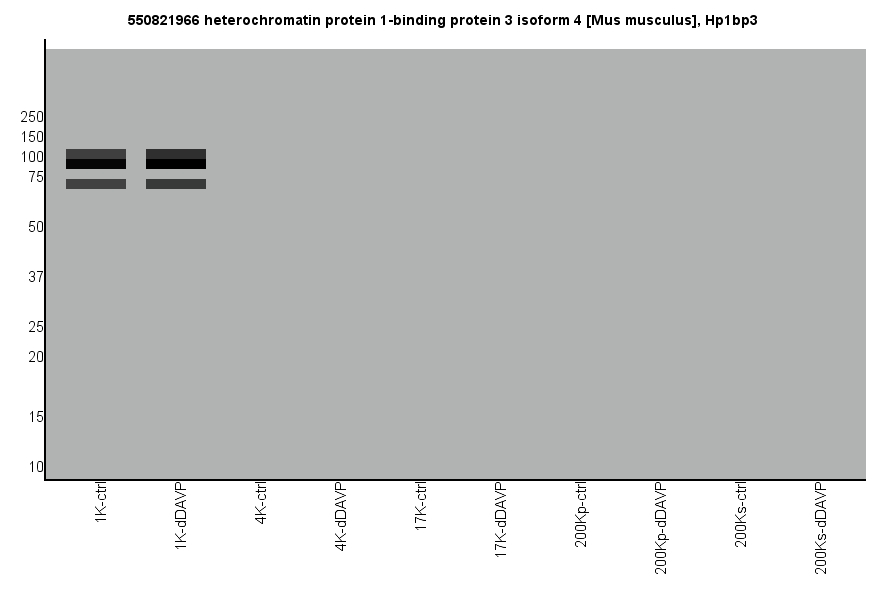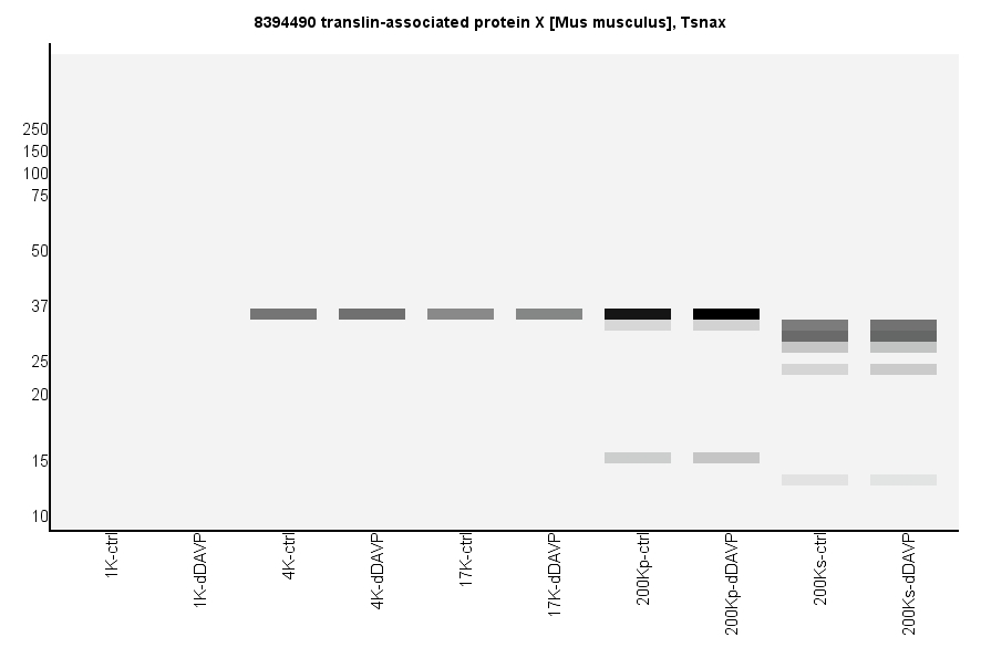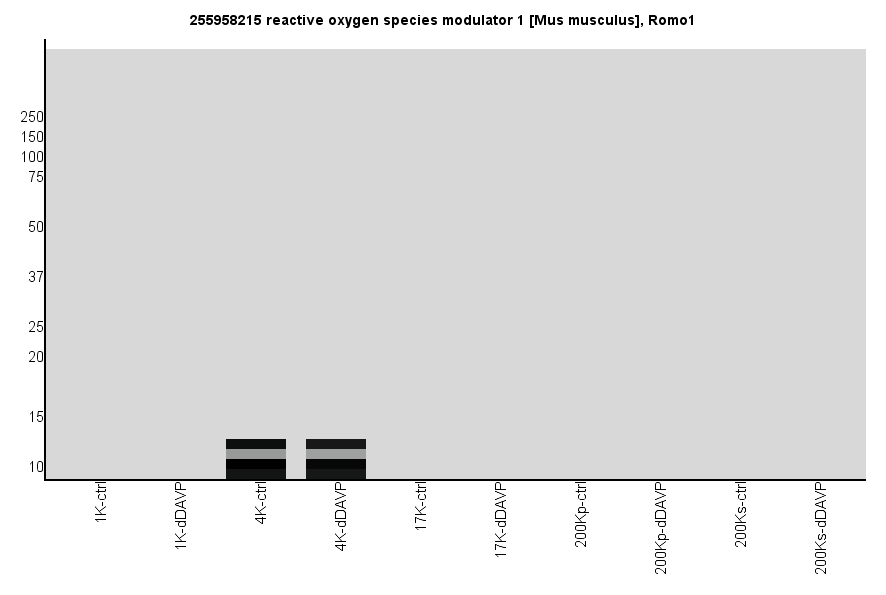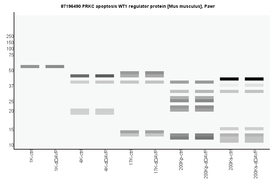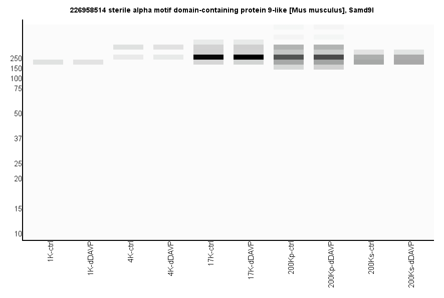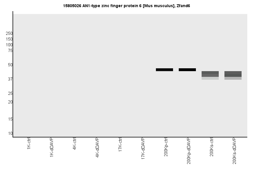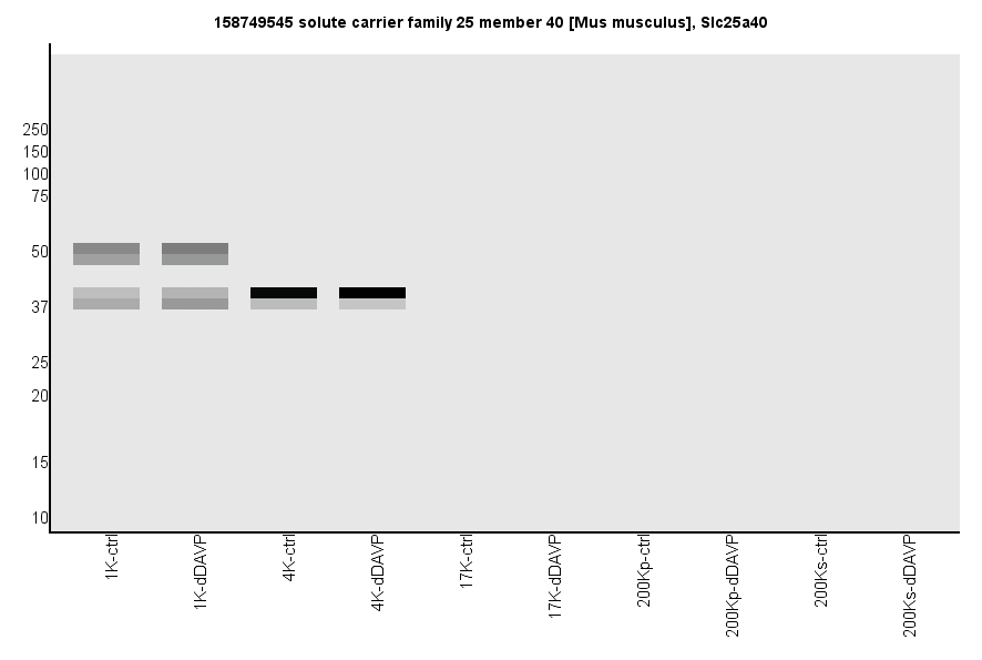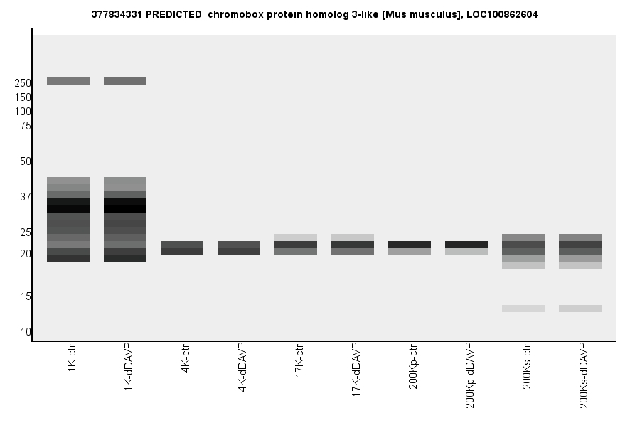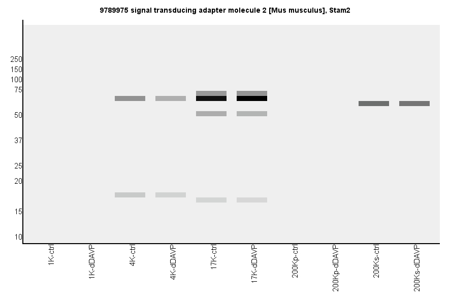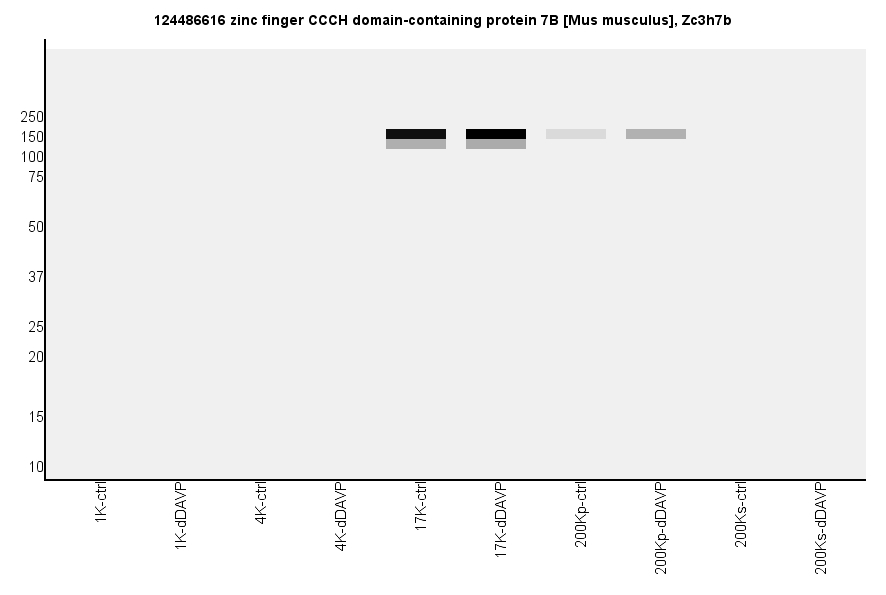 The virtual western blot images show data normalized using a logarithmic conversion scale to map peptide intensities to gray-scale levels. Using this conversion method, low-abundance peptides are generally visible in the blot images. Switch back to the default linear conversion scale database page.