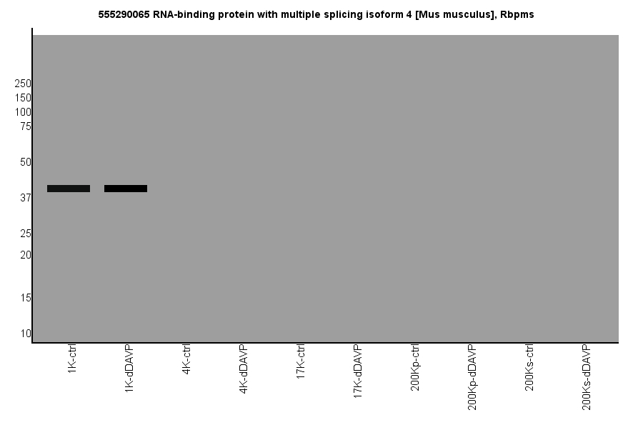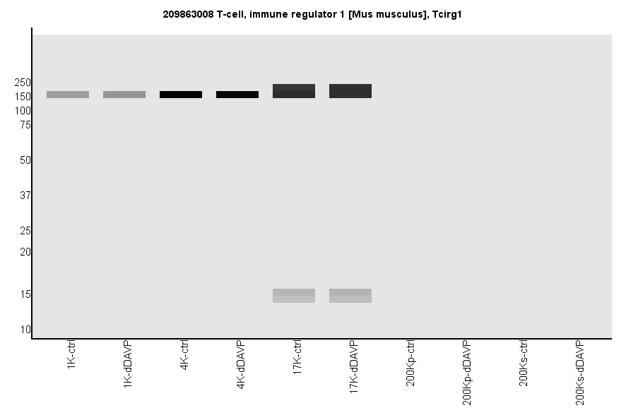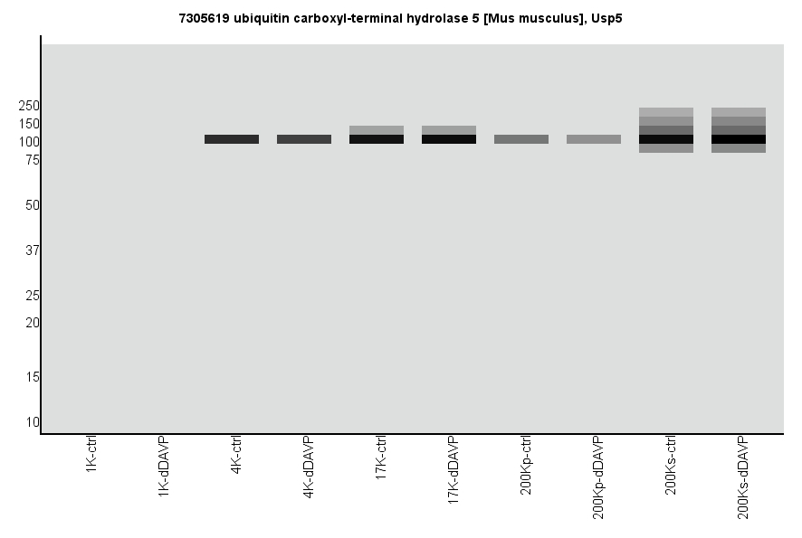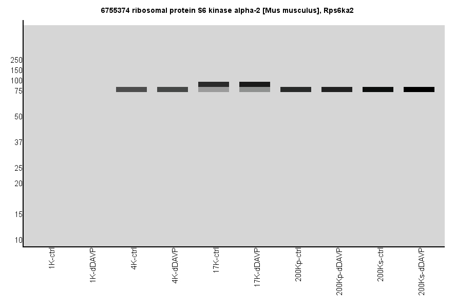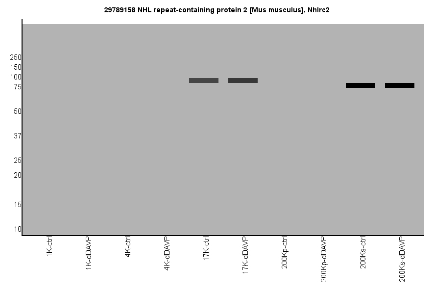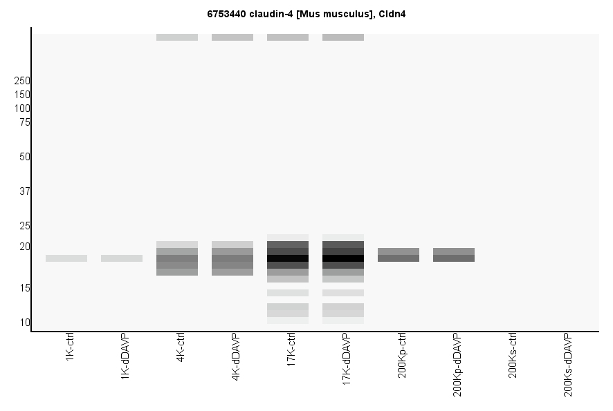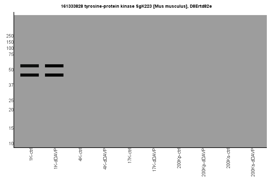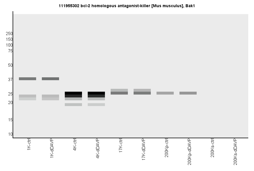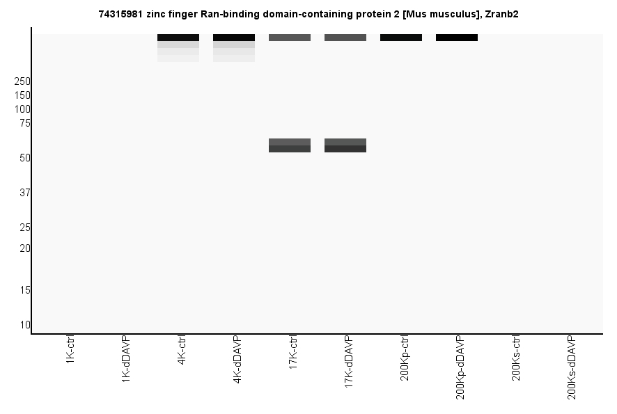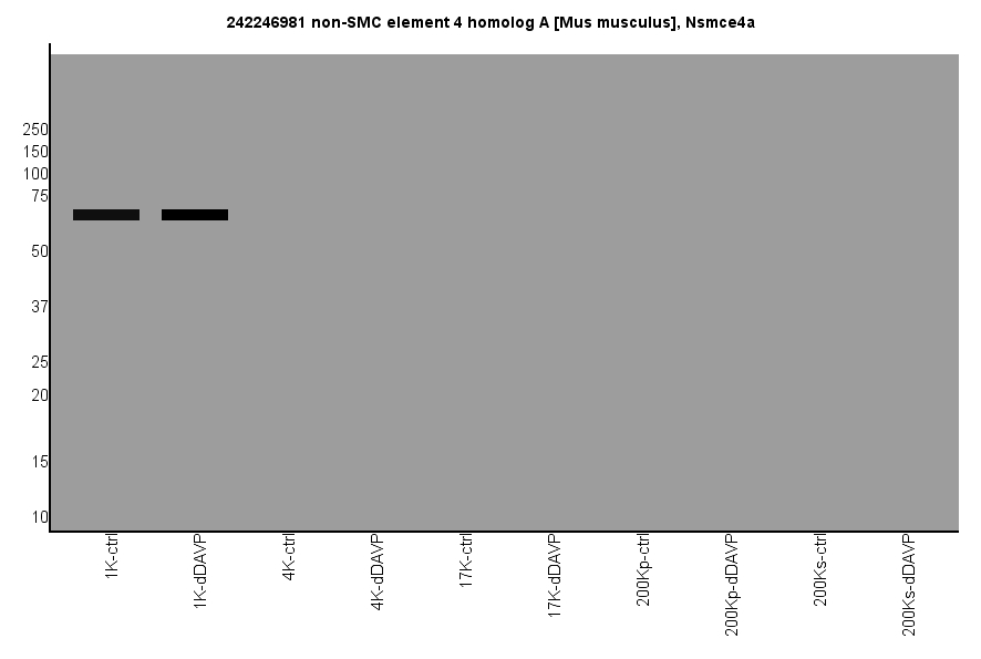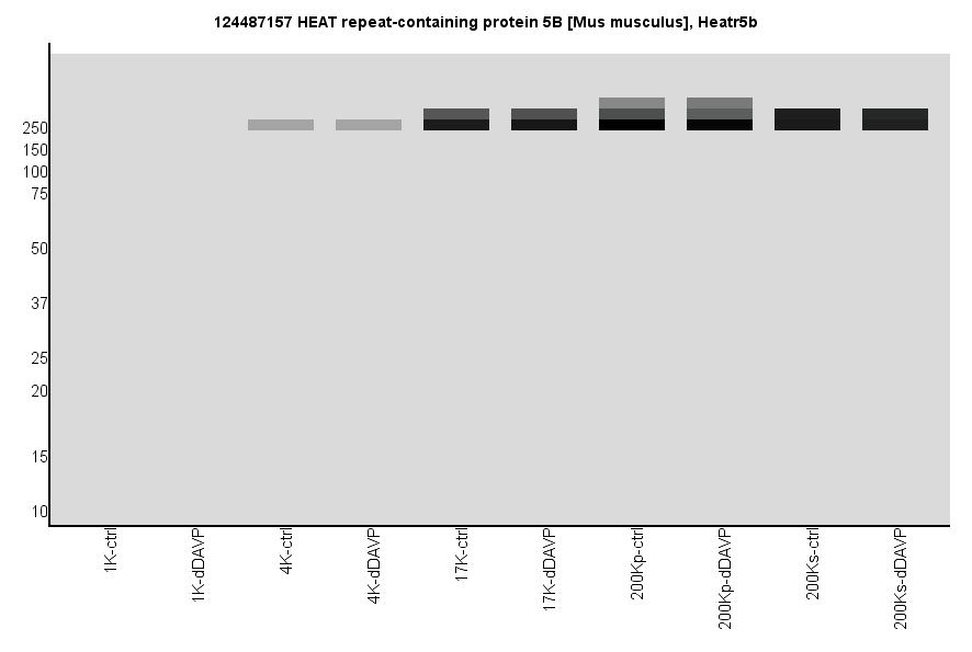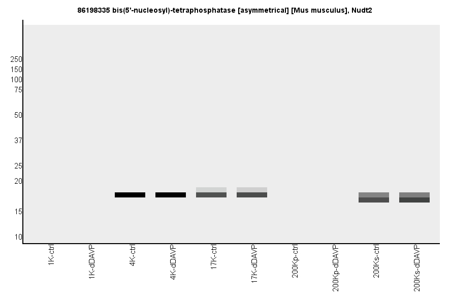 The virtual western blot images show data normalized using a logarithmic conversion scale to map peptide intensities to gray-scale levels. Using this conversion method, low-abundance peptides are generally visible in the blot images. Switch back to the default linear conversion scale database page.