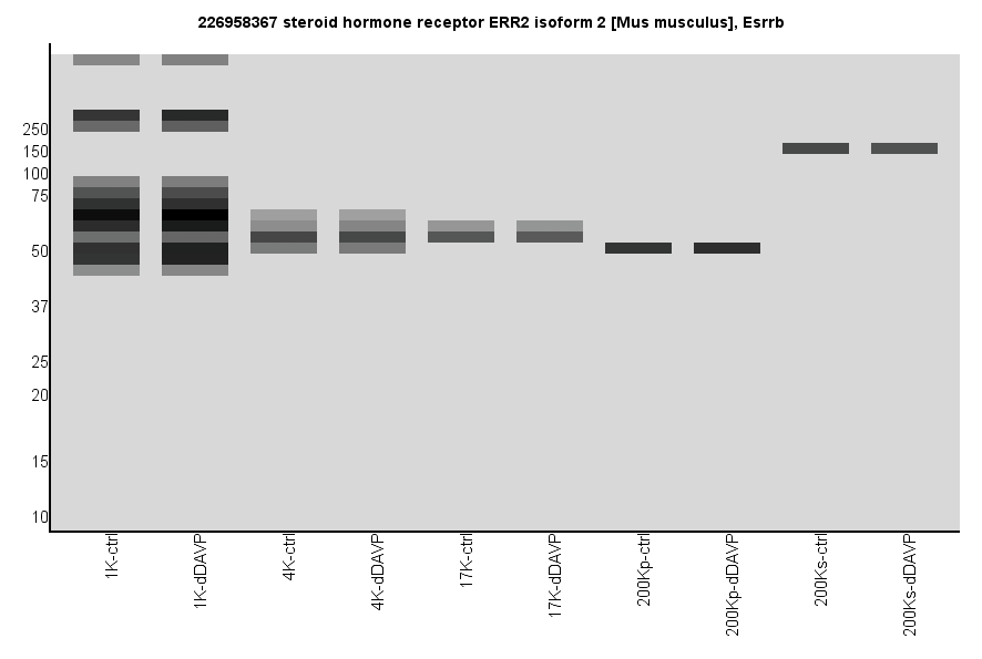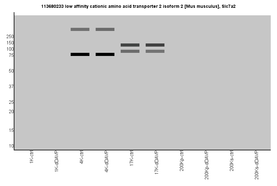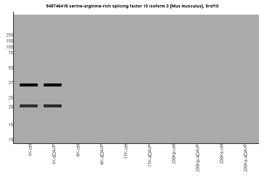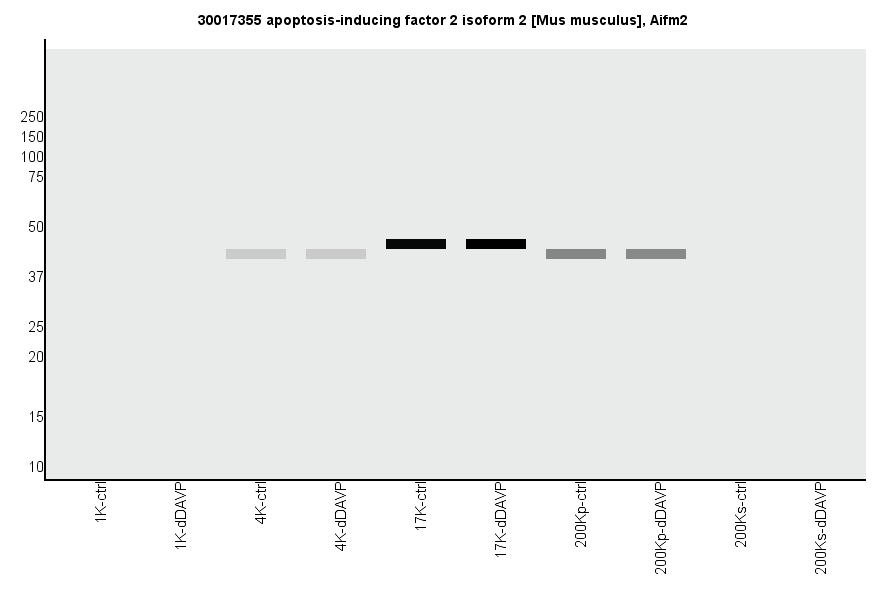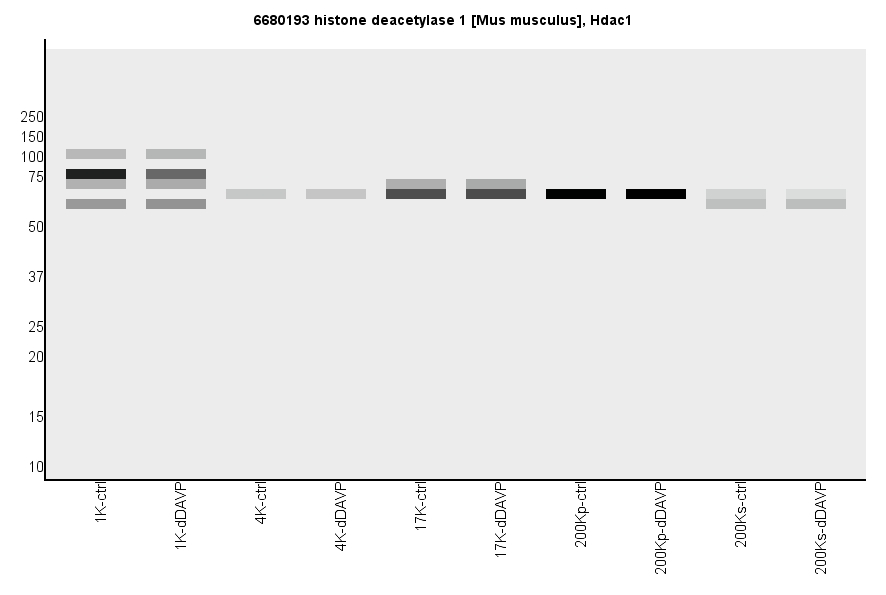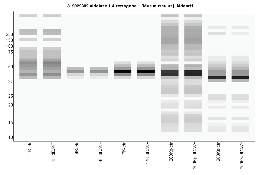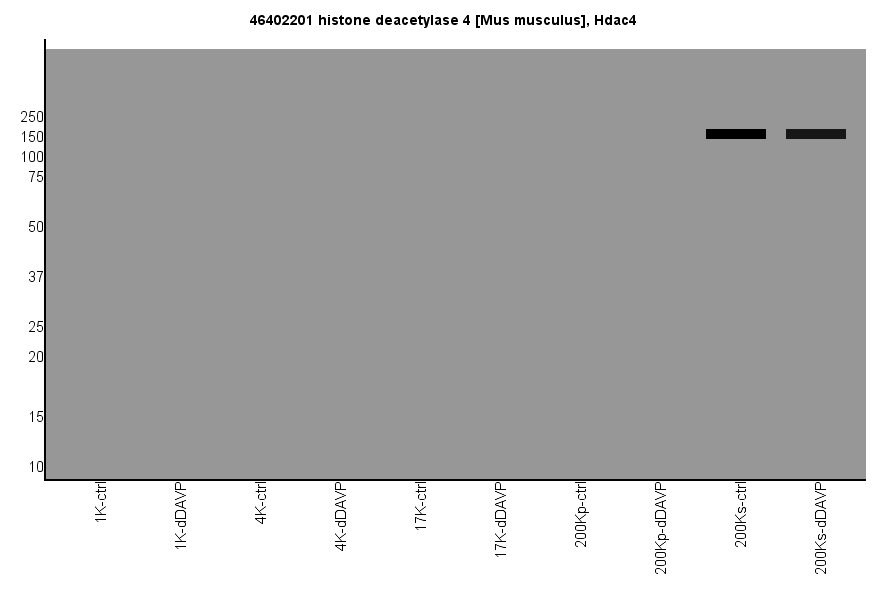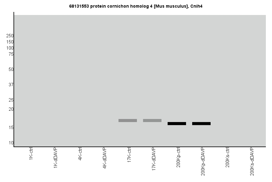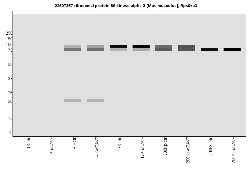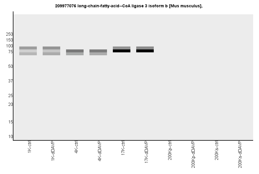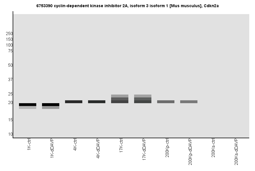 The virtual western blot images show data normalized using a logarithmic conversion scale to map peptide intensities to gray-scale levels. Using this conversion method, low-abundance peptides are generally visible in the blot images. Switch back to the default linear conversion scale database page.