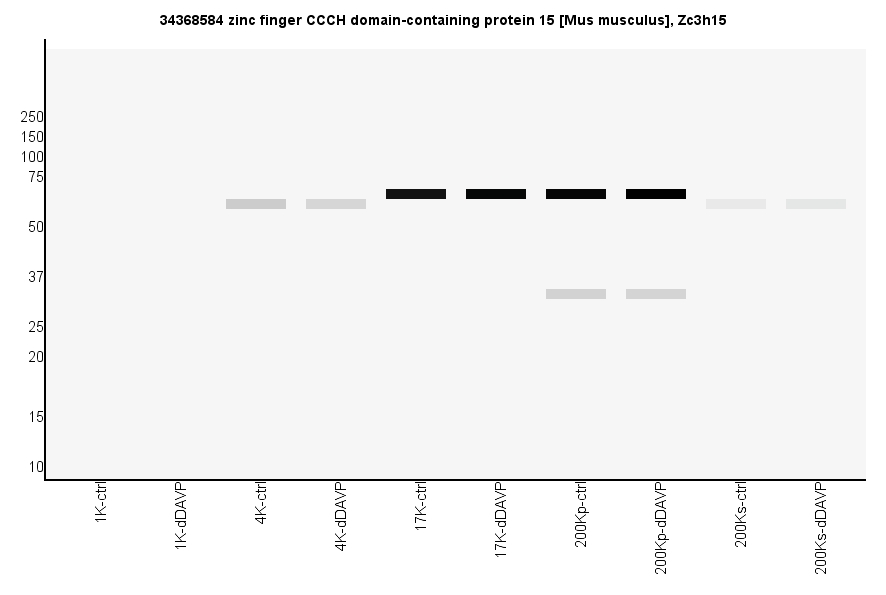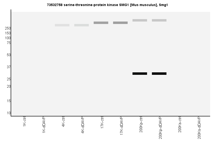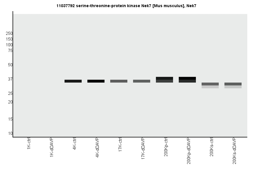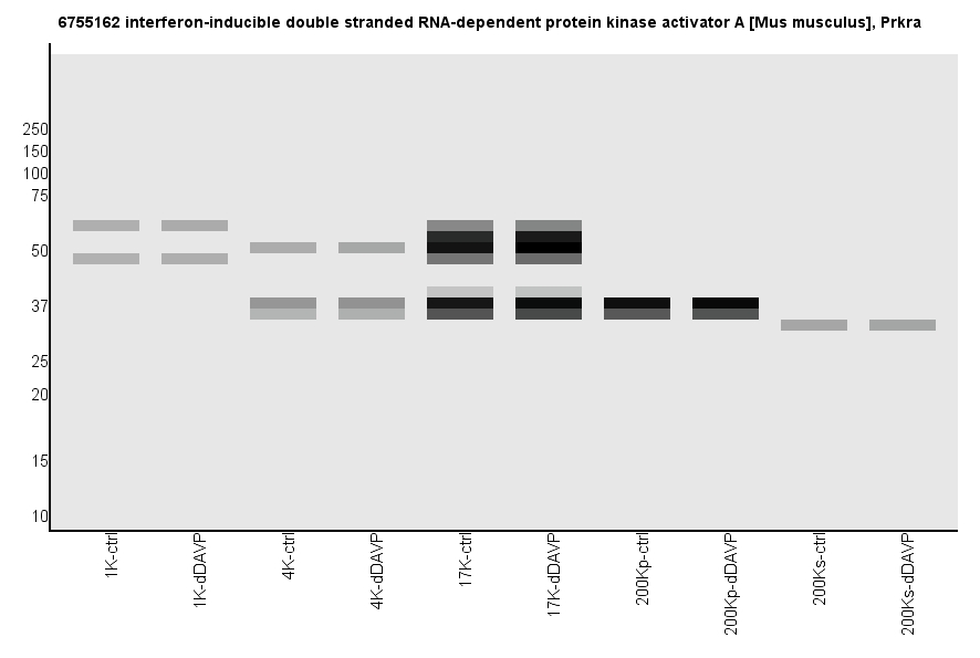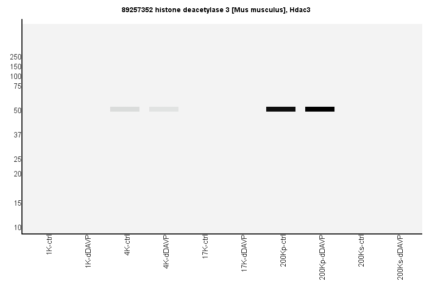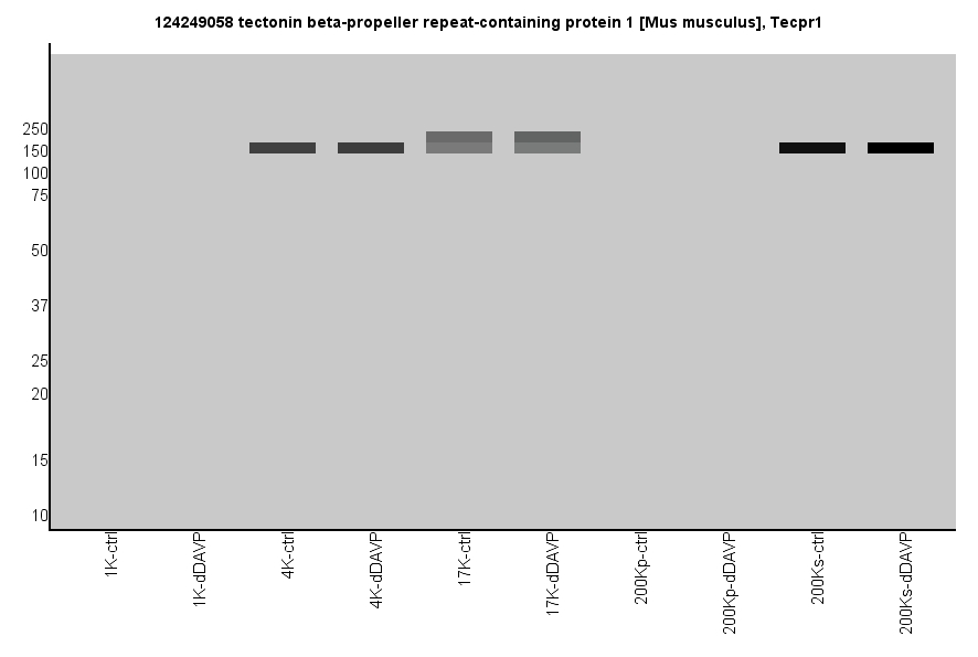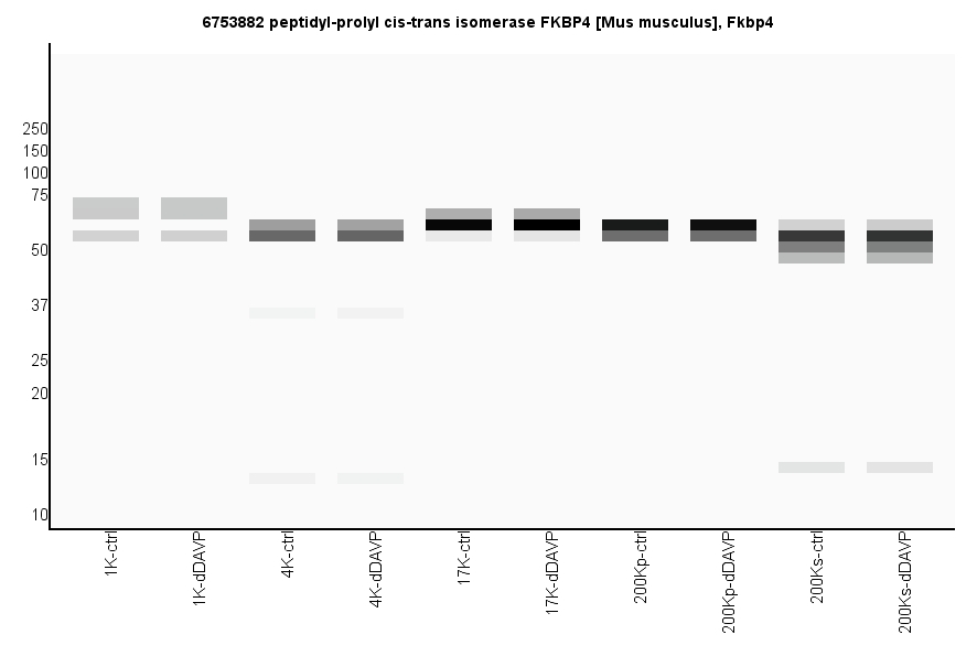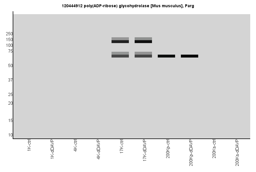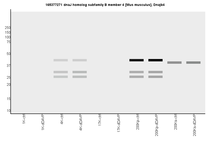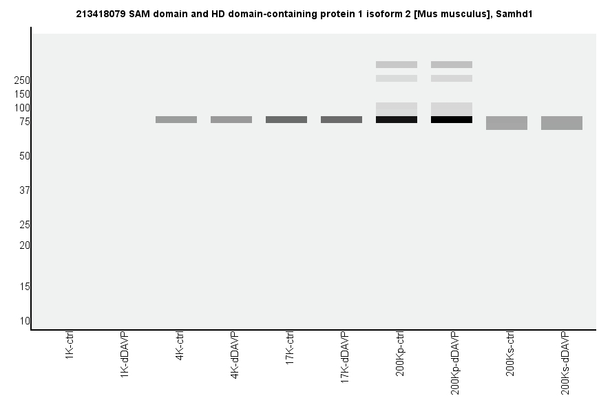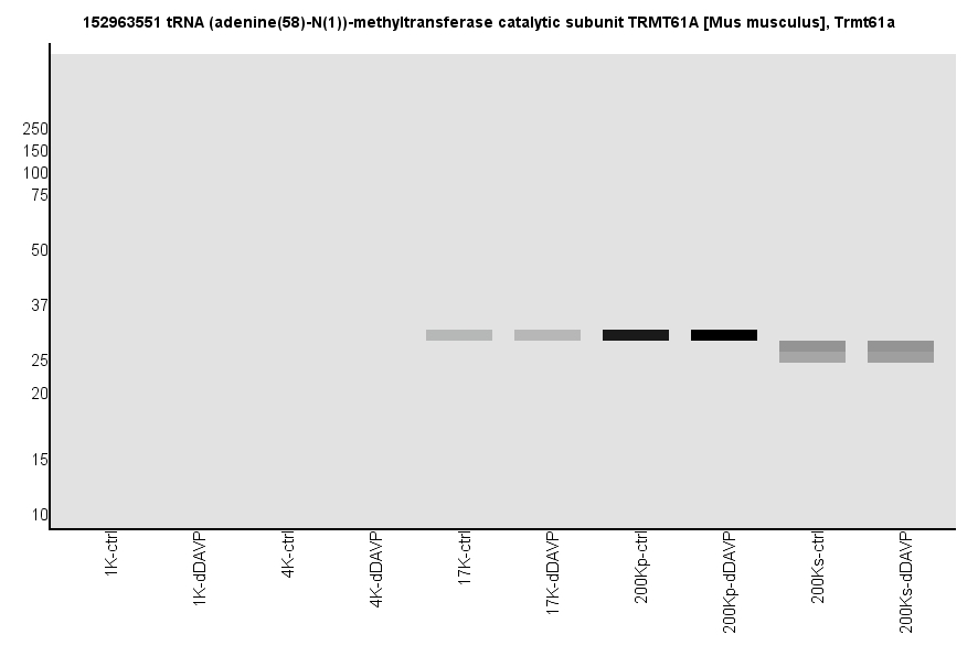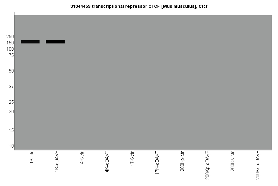 The virtual western blot images show data normalized using a logarithmic conversion scale to map peptide intensities to gray-scale levels. Using this conversion method, low-abundance peptides are generally visible in the blot images. Switch back to the default linear conversion scale database page.