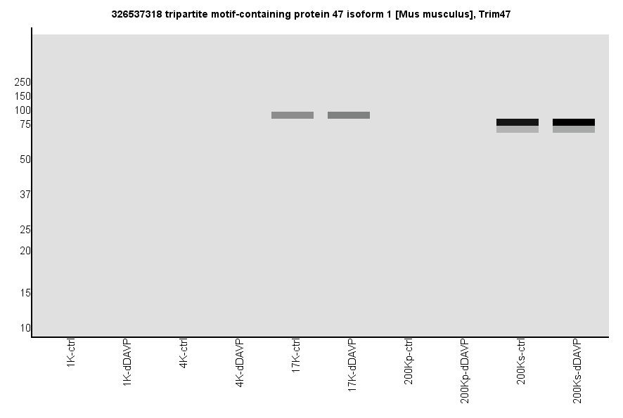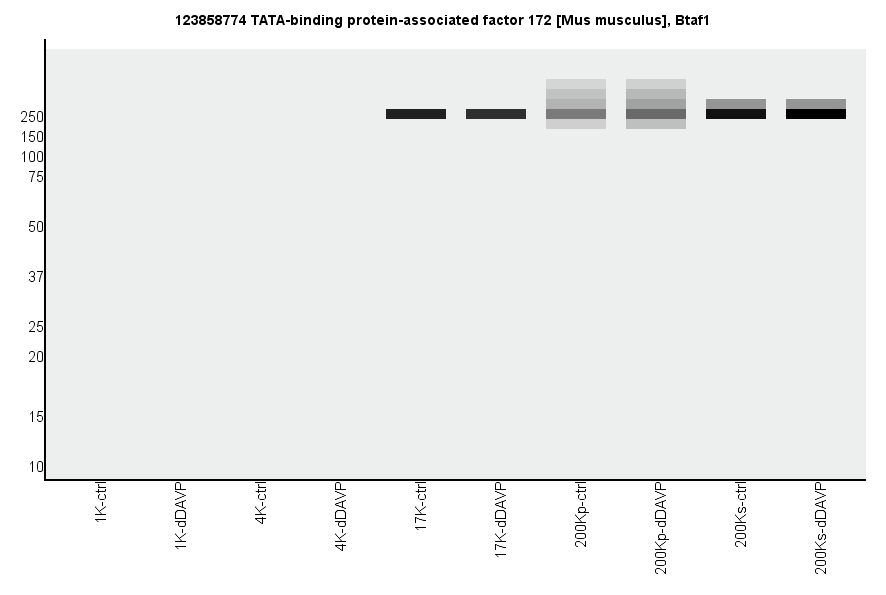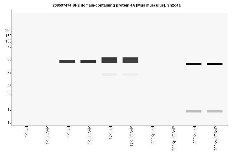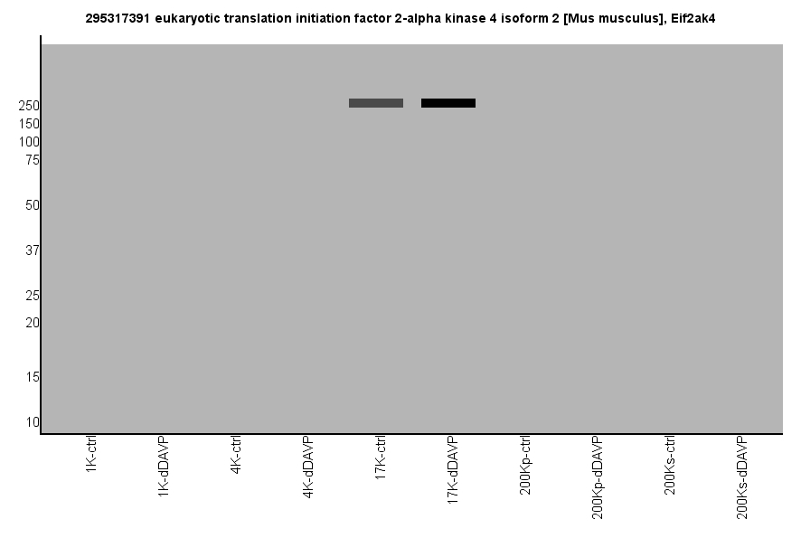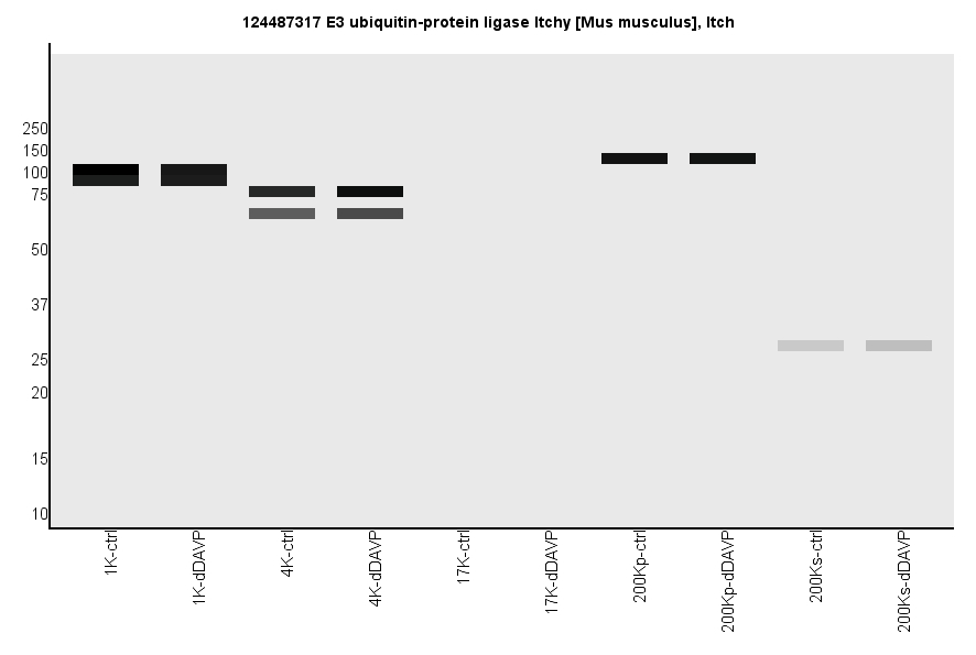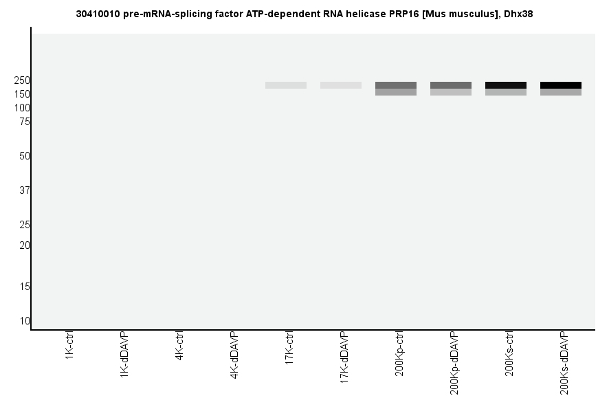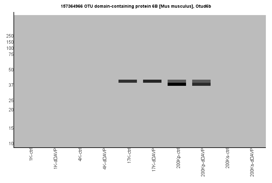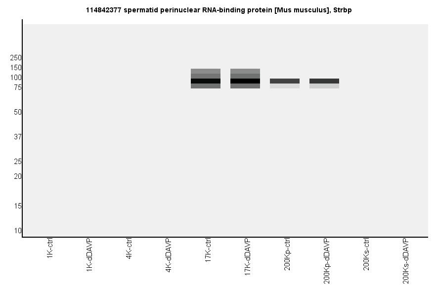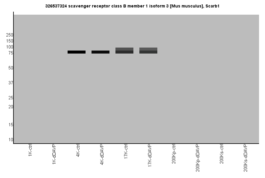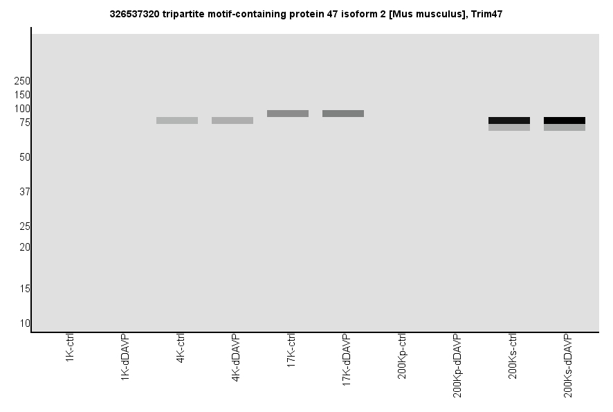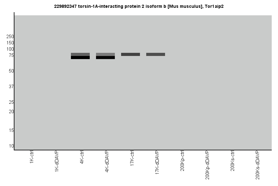 The virtual western blot images show data normalized using a logarithmic conversion scale to map peptide intensities to gray-scale levels. Using this conversion method, low-abundance peptides are generally visible in the blot images. Switch back to the default linear conversion scale database page.