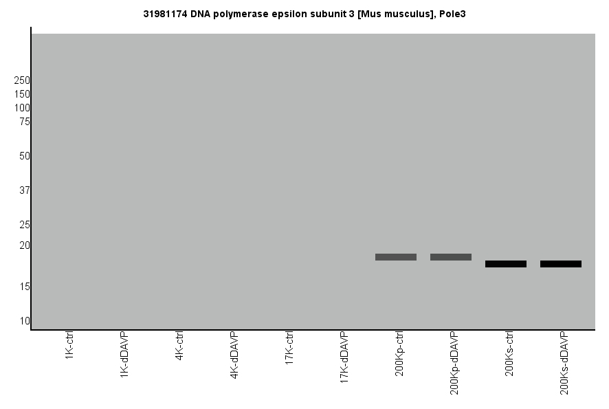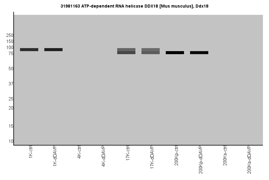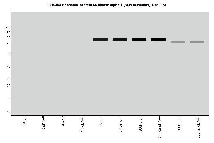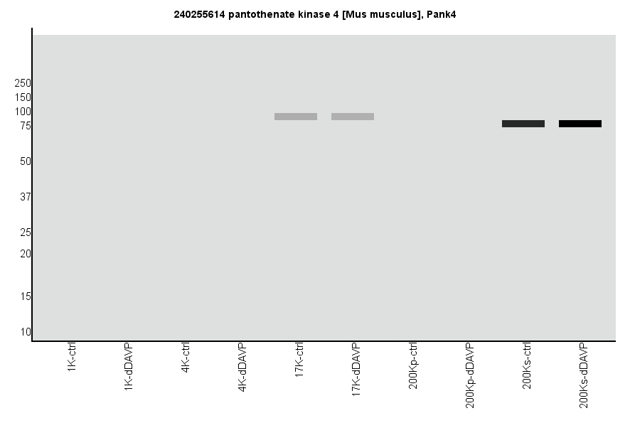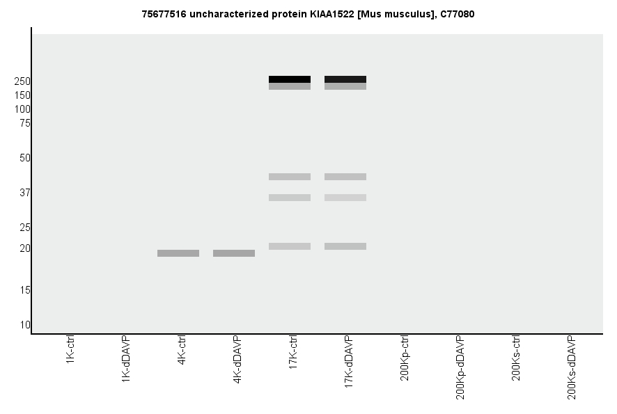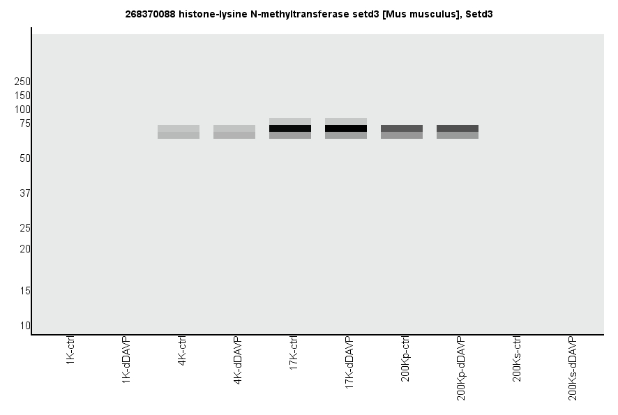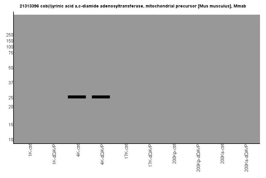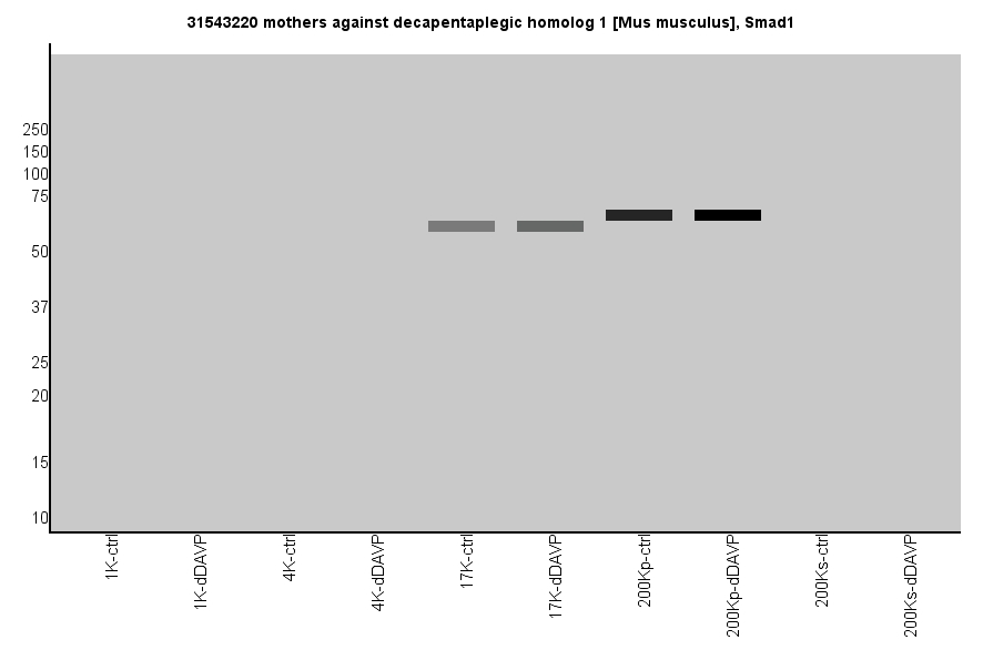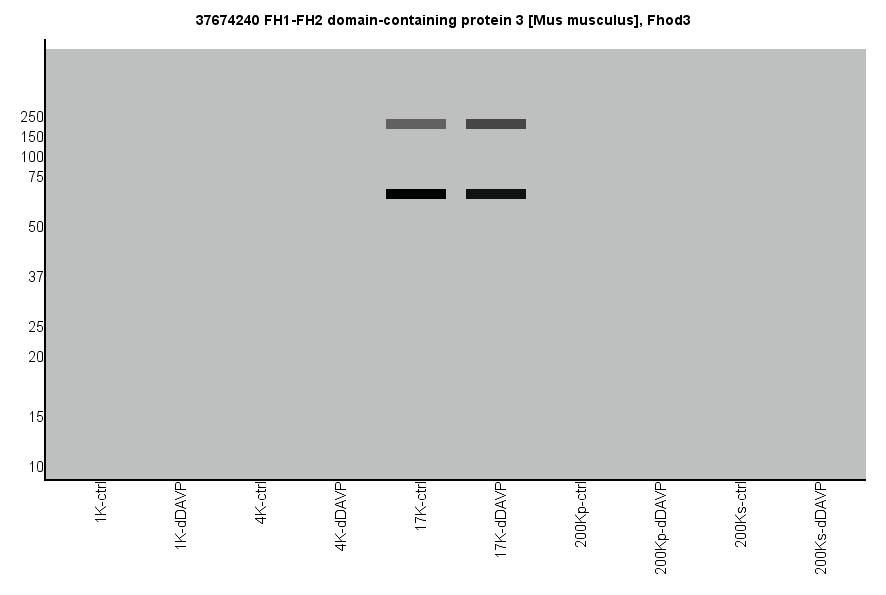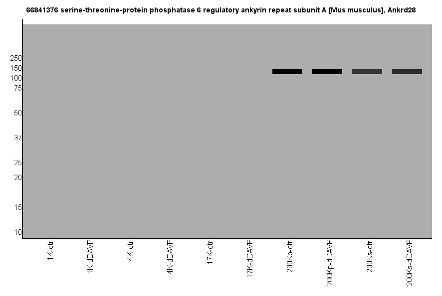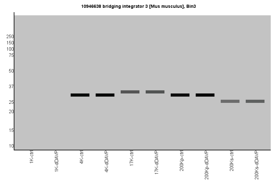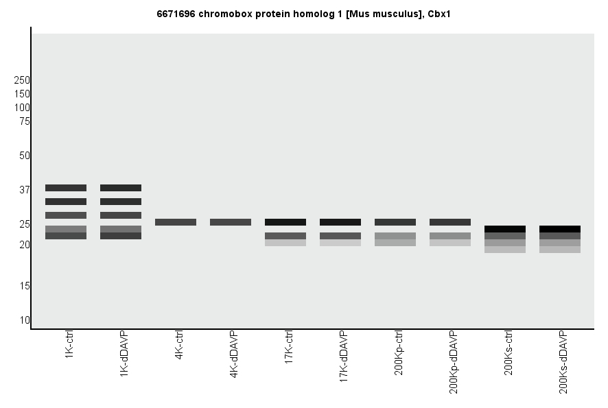 The virtual western blot images show data normalized using a logarithmic conversion scale to map peptide intensities to gray-scale levels. Using this conversion method, low-abundance peptides are generally visible in the blot images. Switch back to the default linear conversion scale database page.