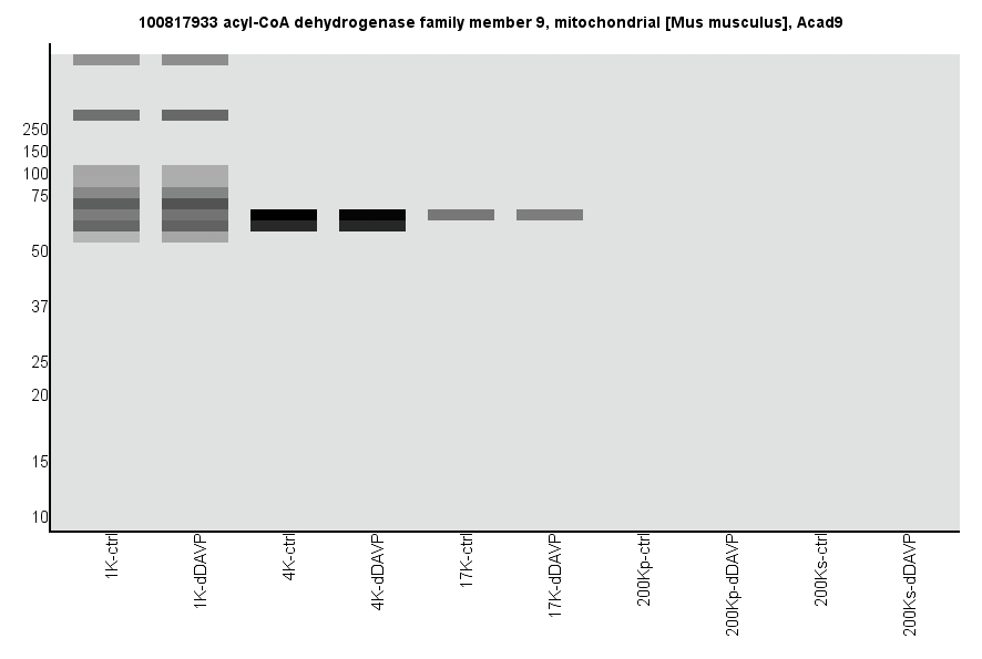 | 100817933 | Acad9 | 68591 | 1.06 | 1.06 | 0.95 | 0.95 | 0.95 | 0.95 | acyl-CoA dehydrogenase family member 9, mitochondrial | |||||||||||