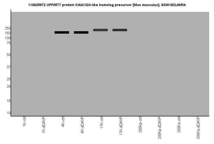 | 110625972 | 9330182L06Rik | 108488 | 1.42 | 1.42 | 1.73 | 1.73 | UPF0577 protein KIAA1324-like homolog precursor | |||||||||||||