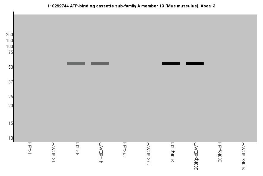 | 116292744 | Abca13 | 568769 | 0.09 | 0.09 | 0.09 | 0.09 | ATP-binding cassette sub-family A member 13 | |||||||||||||