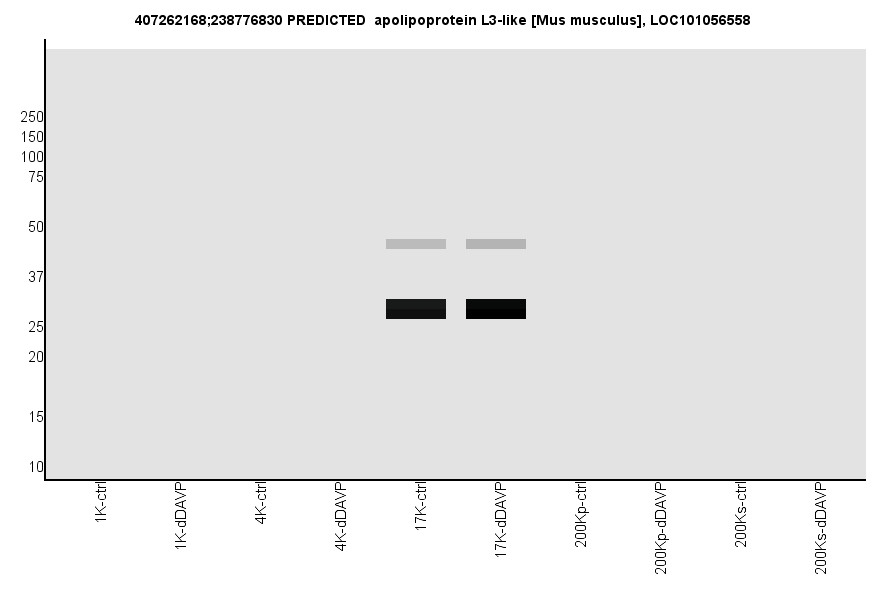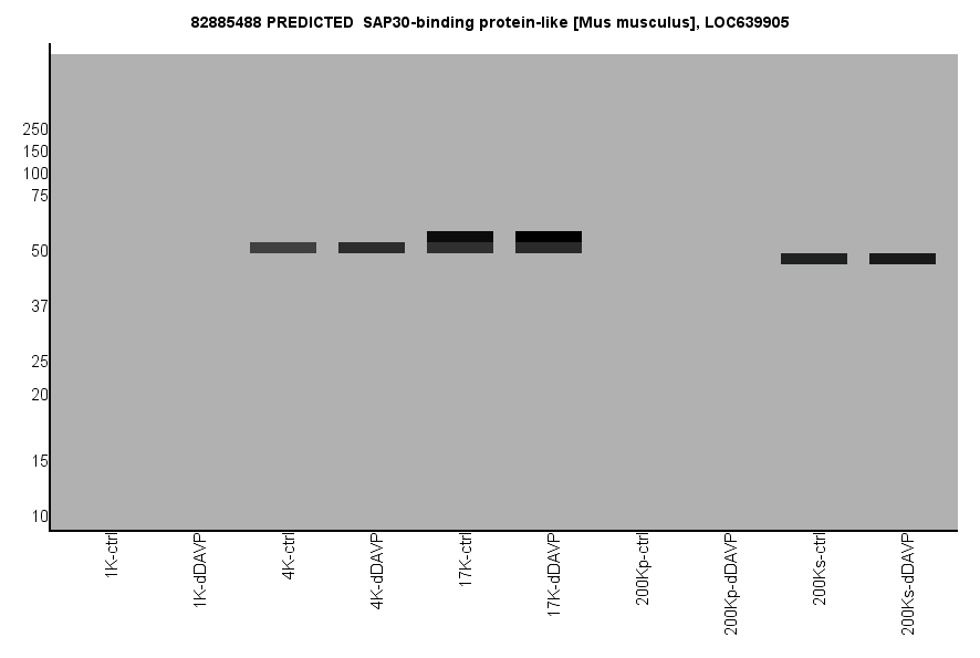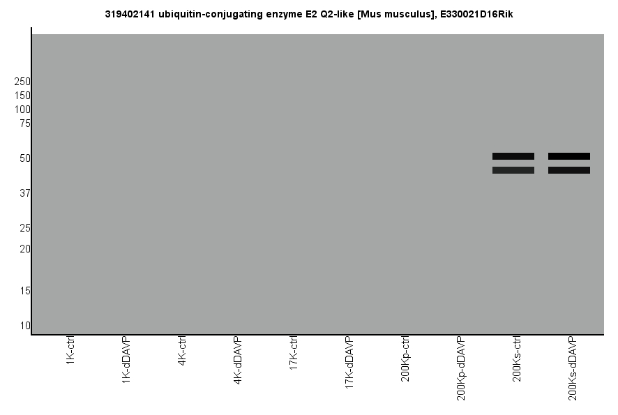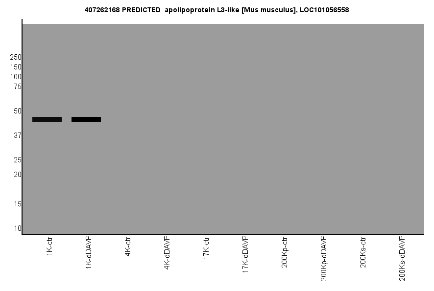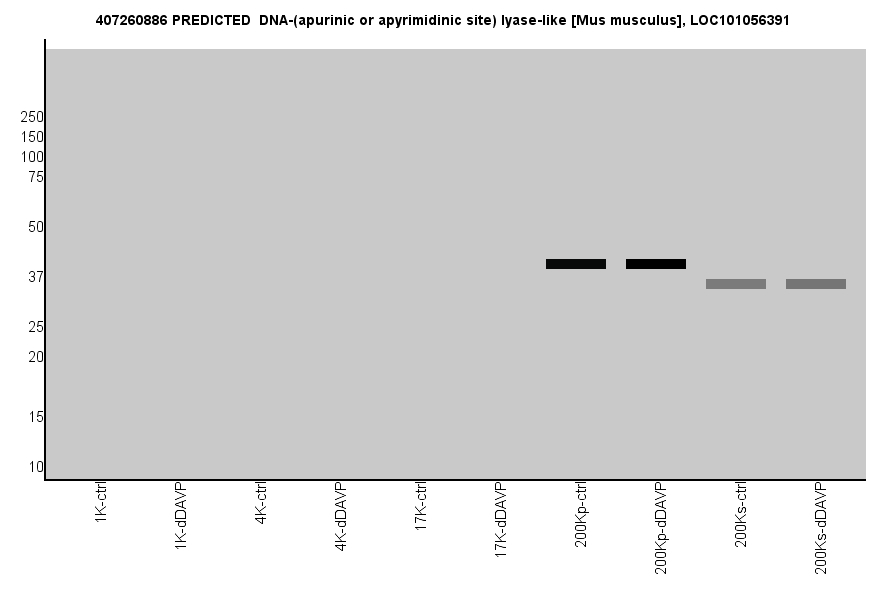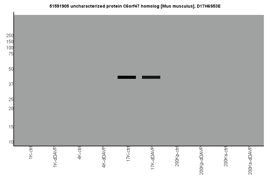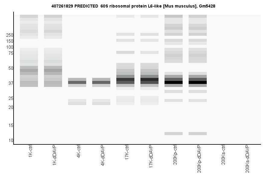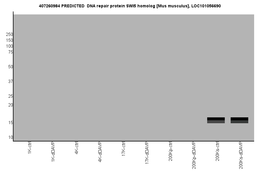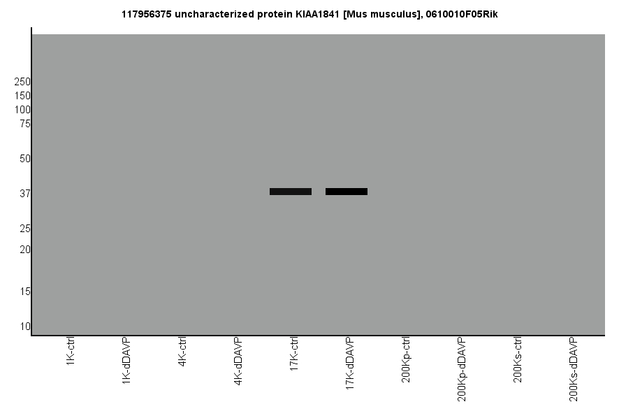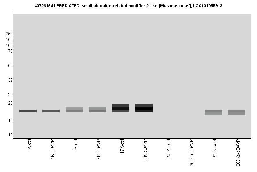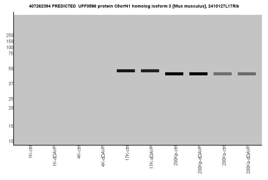 | 407262390 | 2410127L17Rik | 46208 | 0.88 | 0.88 | 0.96 | 0.96 | 0.88 | 0.88 | 0.88 | 0.88 | UPF0586 protein C9orf41 homolog isoform 1 | |||||||||