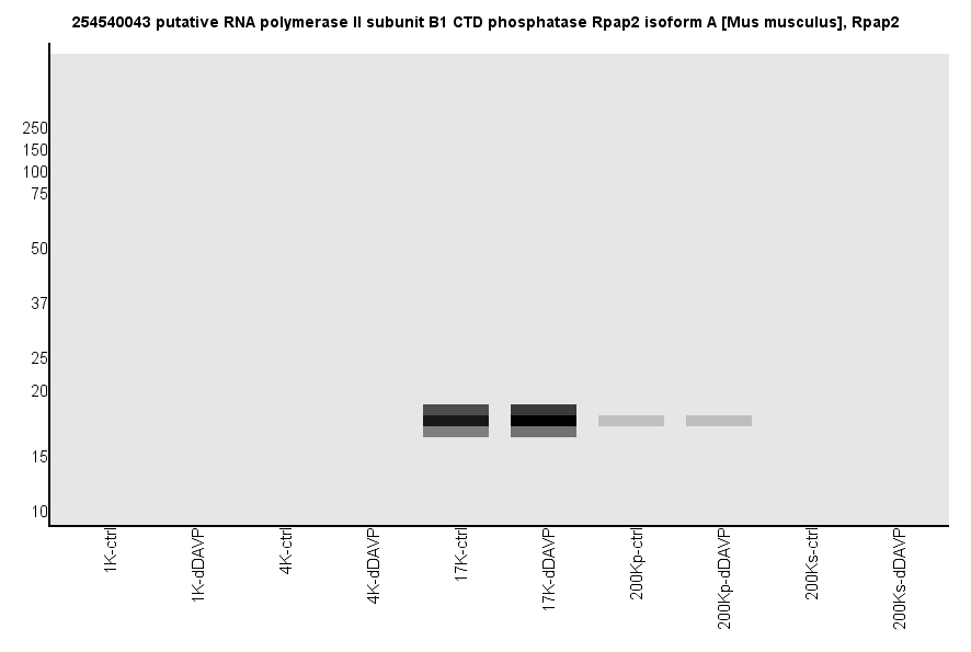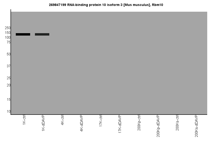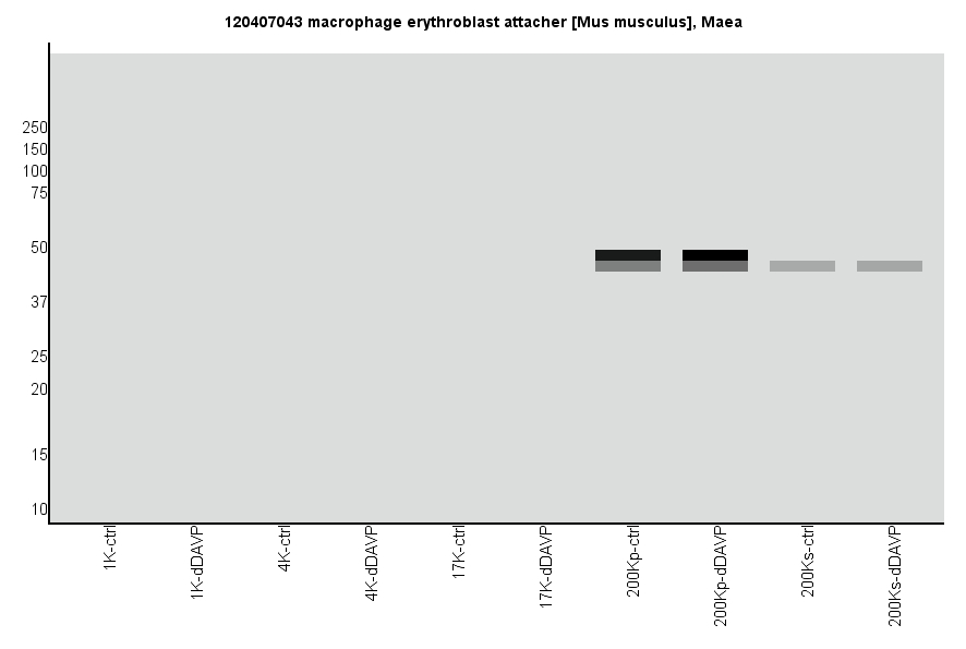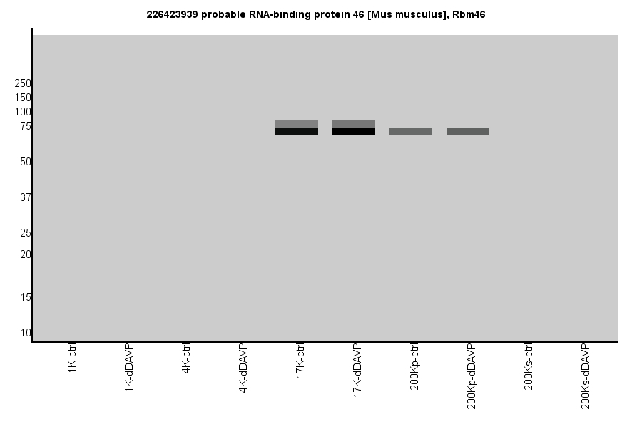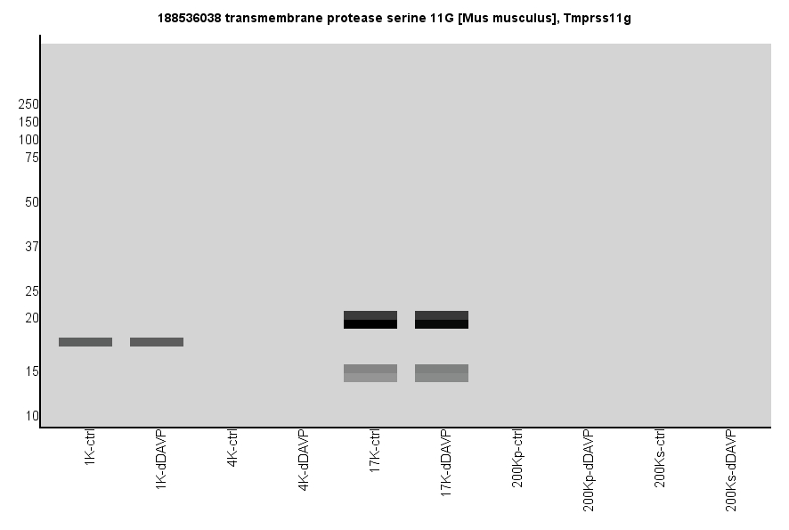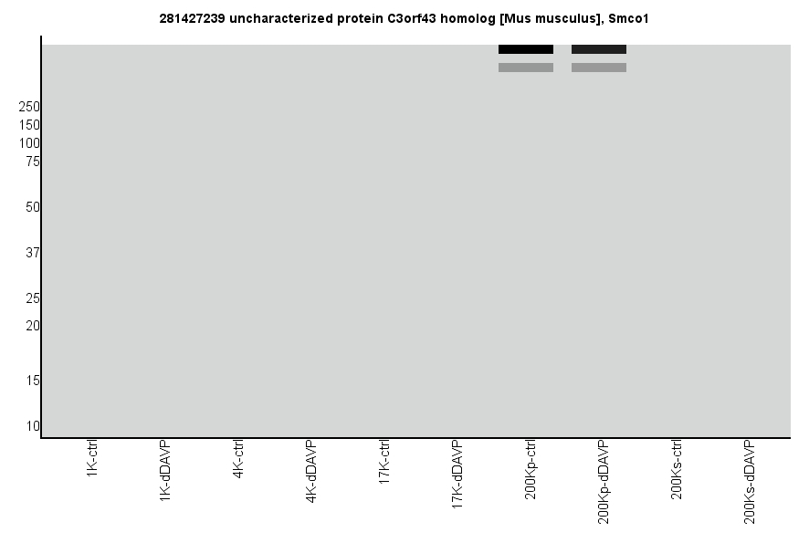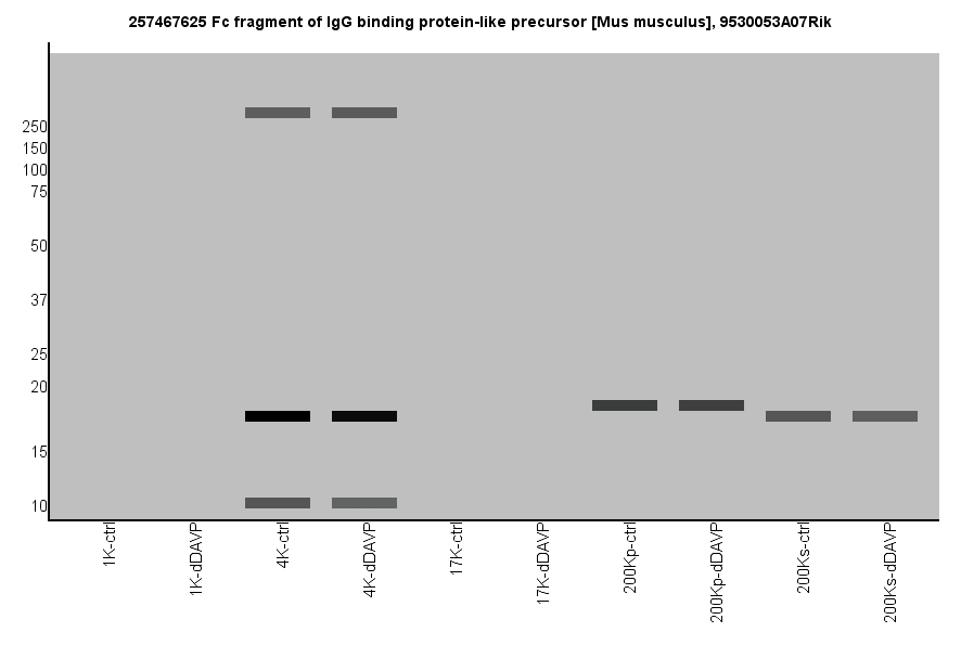 | 257467625 | 9530053A07Rik | 277432 | 0.06 | 0.06 | 0.06 | 0.06 | 0.06 | 0.06 | Fc fragment of IgG binding protein-like precursor | |||||||||||