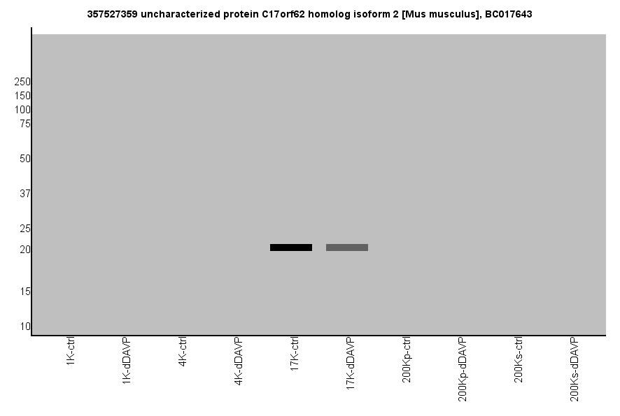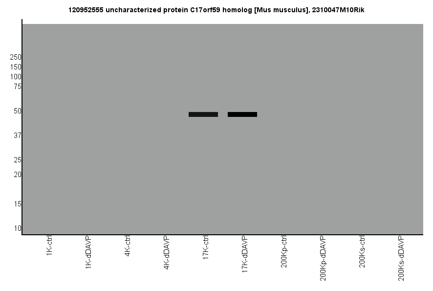 | 120952555 | 2310047M10Rik | 37880 | 1.16 | 1.16 | uncharacterized protein C17orf59 homolog | |||||||||||||||
