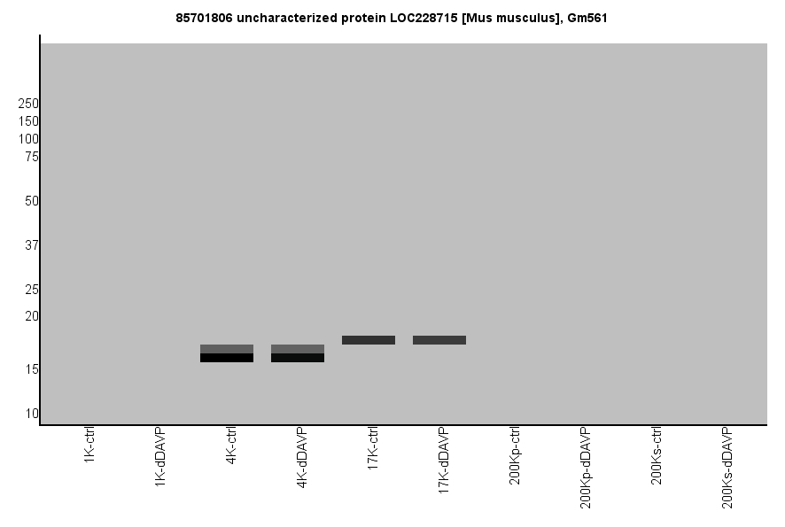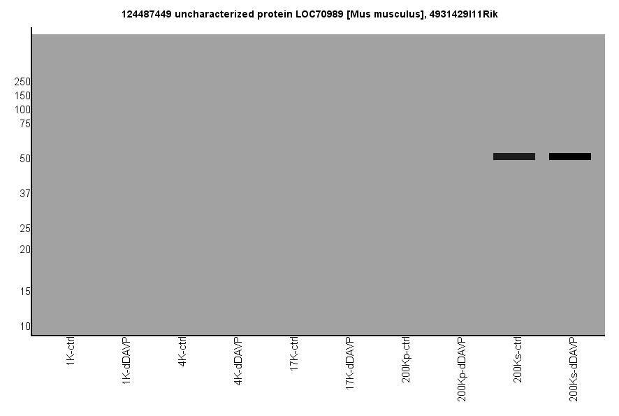 | 124487449 | 4931429I11Rik | 87286 | 0.56 | 0.56 | uncharacterized protein LOC70989 | |||||||||||||||