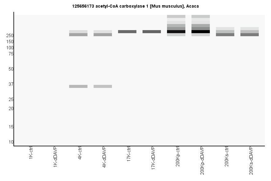 | 125656173 | Acaca | 265127 | 0.88 | 0.88 | 1.14 | 1.14 | 1.14 | 1.14 | 0.88 | 0.88 | acetyl-CoA carboxylase 1 | |||||||||