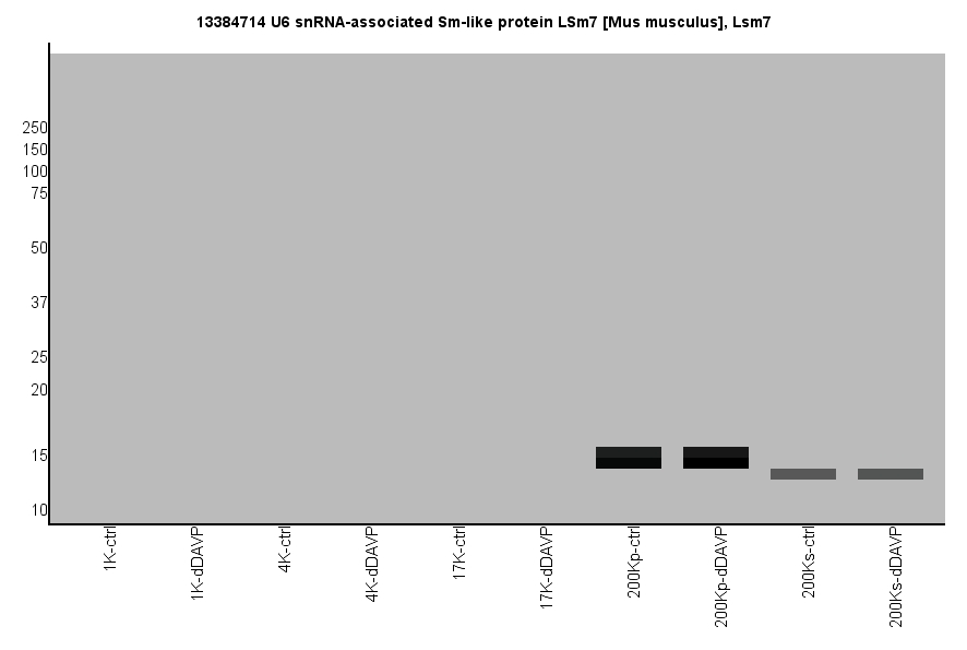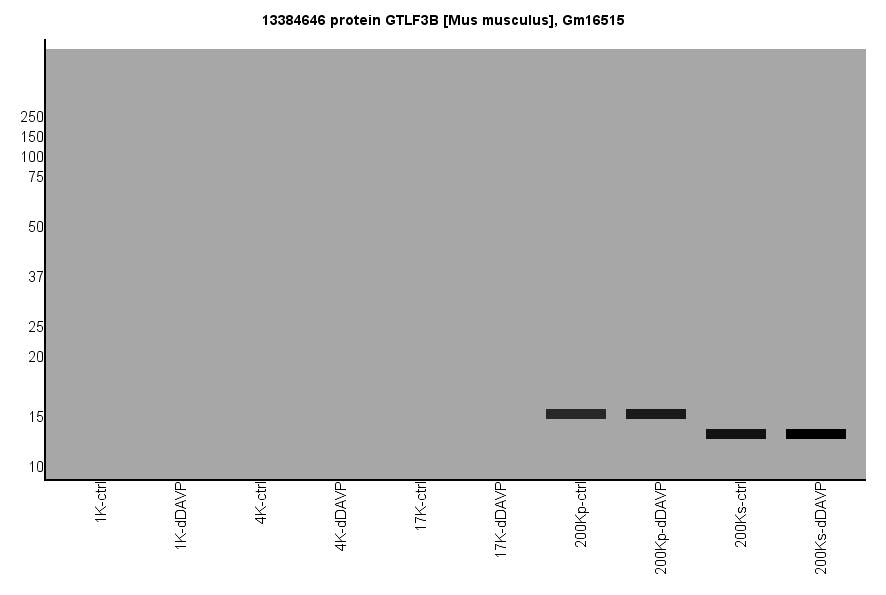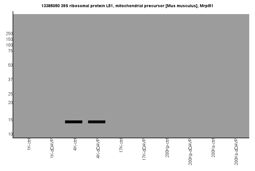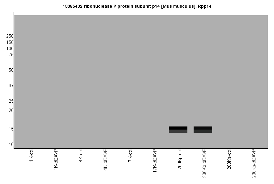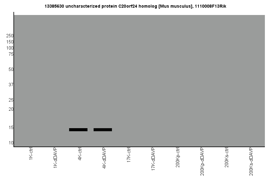 | 13385630 | 1110008F13Rik | 14694 | 0.93 | 0.93 | uncharacterized protein C20orf24 homolog | |||||||||||||||