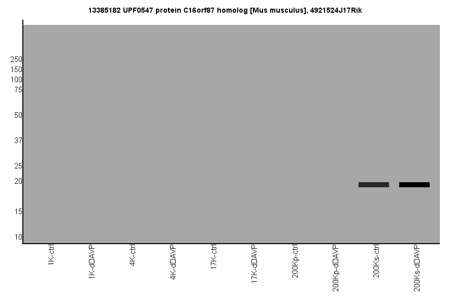 | 13385182 | 4921524J17Rik | 17698 | 1.03 | 1.03 | UPF0547 protein C16orf87 homolog | |||||||||||||||
