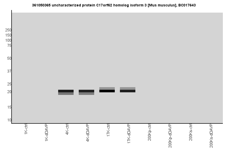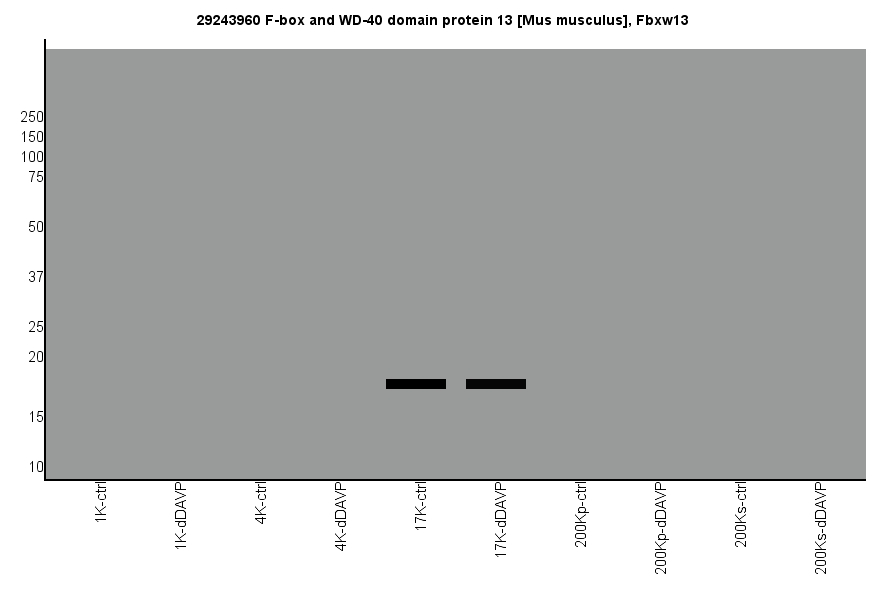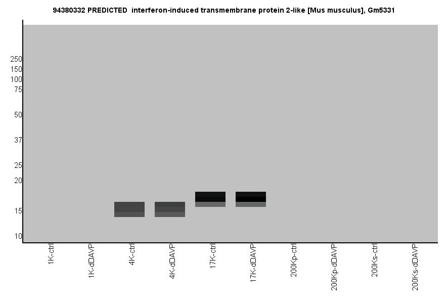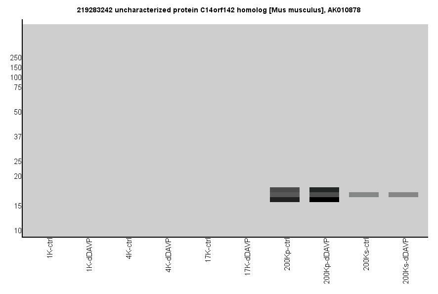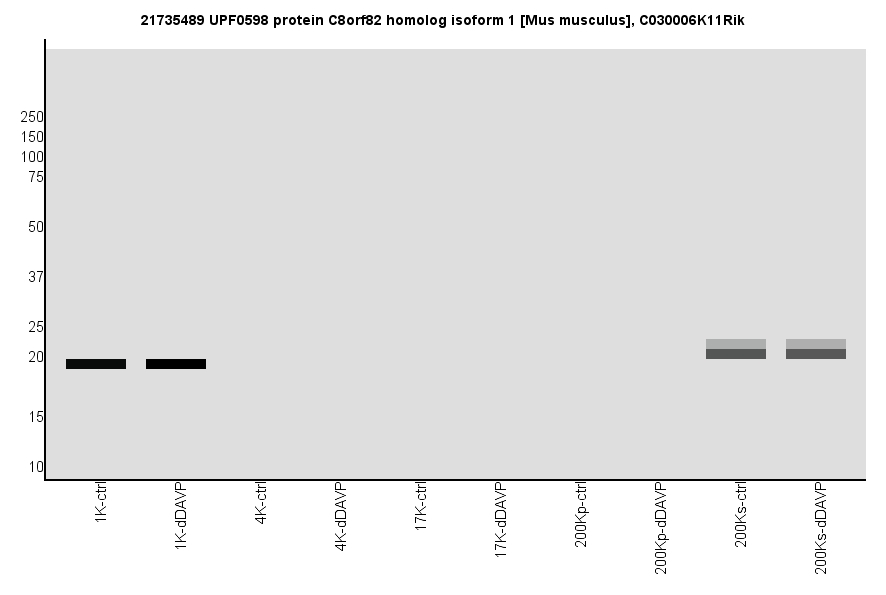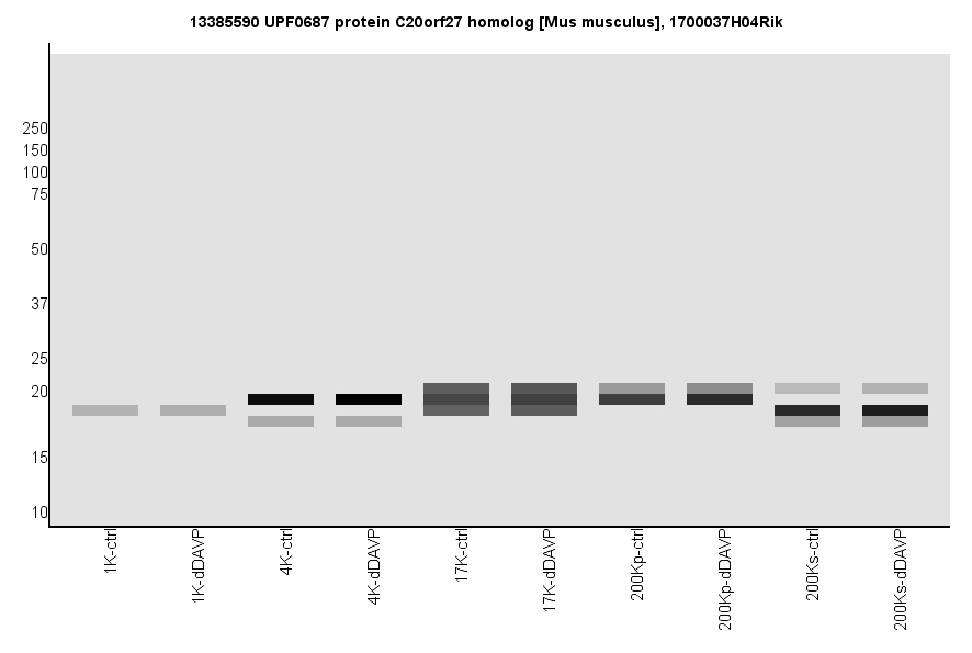| 13385590 | 1700037H04Rik | 19345 | 0.92 | 0.92 | 0.97 | 0.97 | 0.97 | 0.97 | 0.97 | 0.97 | 0.92 | 0.92 | UPF0687 protein C20orf27 homolog | |||||||
