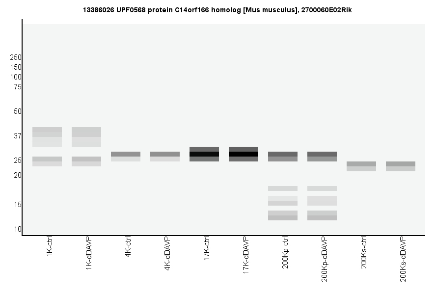 | 13386026 | 2700060E02Rik | 28021 | 0.83 | 0.83 | 0.88 | 0.88 | 0.88 | 0.88 | 0.88 | 0.88 | 0.78 | 0.78 | UPF0568 protein C14orf166 homolog | |||||||