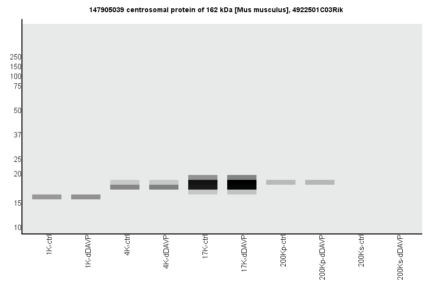| 147905039 | 4922501C03Rik | 160725 | 0.09 | 0.09 | 0.10 | 0.10 | 0.11 | 0.11 | 0.11 | 0.11 | centrosomal protein of 162 kDa | |||||||||
