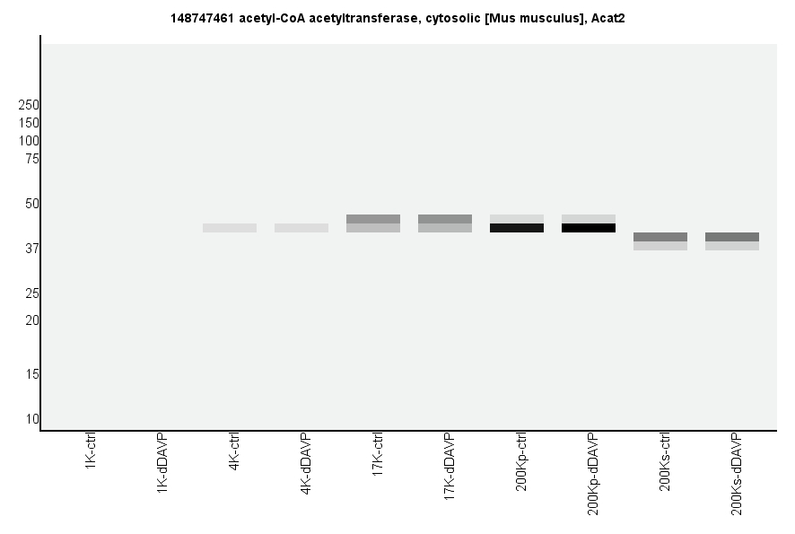| 148747461 | Acat2 | 41167 | 0.91 | 0.91 | 0.99 | 0.99 | 0.91 | 0.91 | 0.84 | 0.84 | acetyl-CoA acetyltransferase, cytosolic | |||||||||